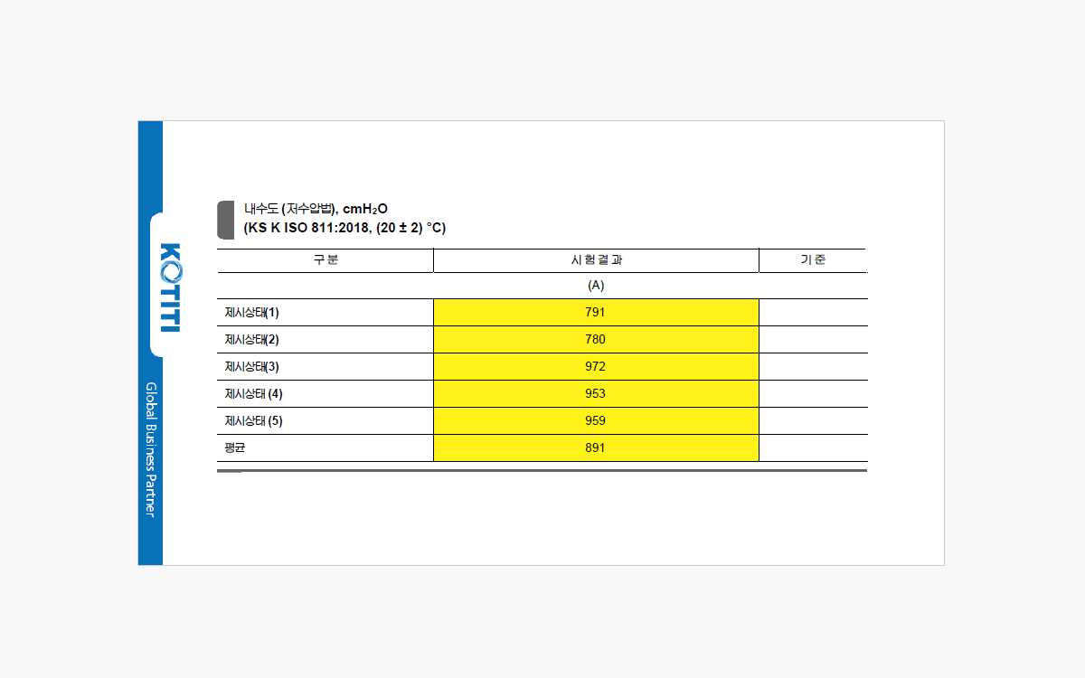 *KOTITI 시험연구원의 내수도 테스트 완료 2 COLORS