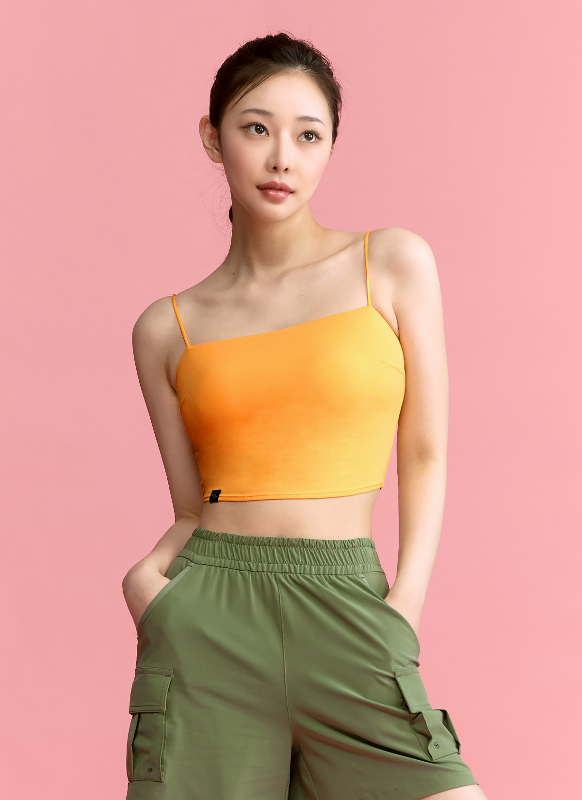 02 하나만 입으면 운동 준비 끝! 브라 패드 탈착이 가능한 디자인으로, 따로 이너웨어를 챙겨 입을 필요가 없어 간편해요.