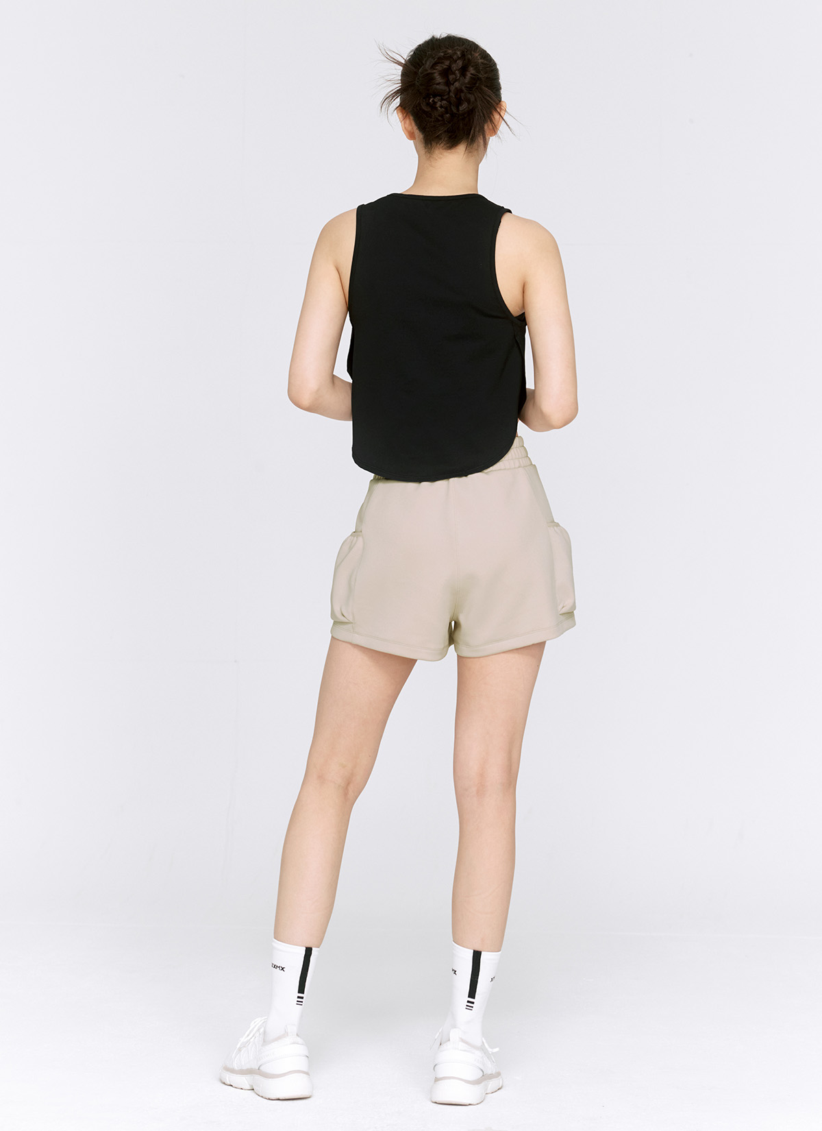 03 "기장이 짧아도 노출 걱정 없죠." 밑단이 넓은 쇼츠 안에 이너 쇼츠를 내장하여 활동적인 퍼포먼스도 노출 부담 없이 편안하게 즐길 수 있어요.