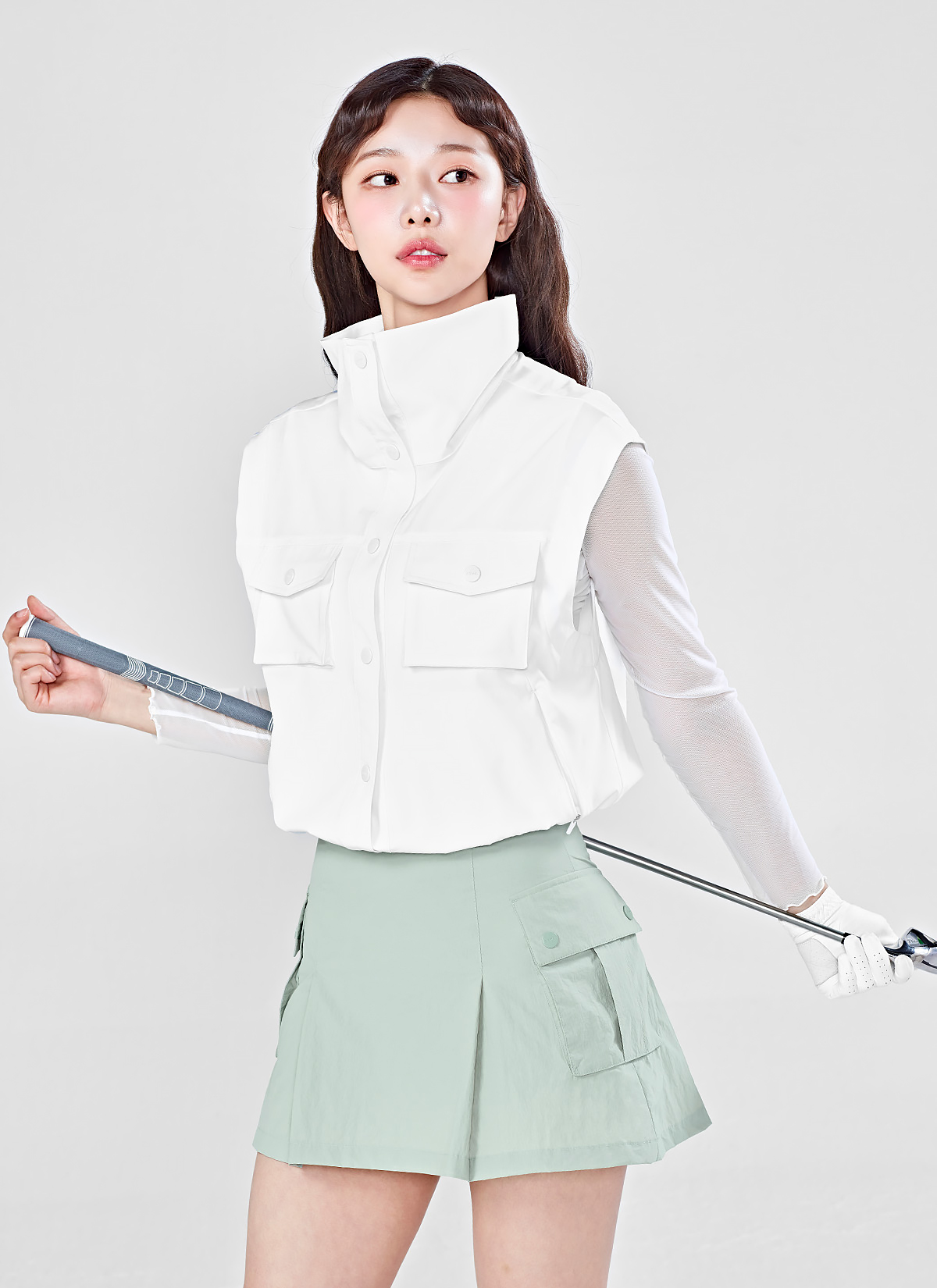04 "이너 쇼츠가 있어 안심이죠!" 스커트 안쪽에 이너 쇼츠가 결합된 투인원 스타일로, 스윙 동작이나 카트 착석 시 노출 부담을 줄여줘요.