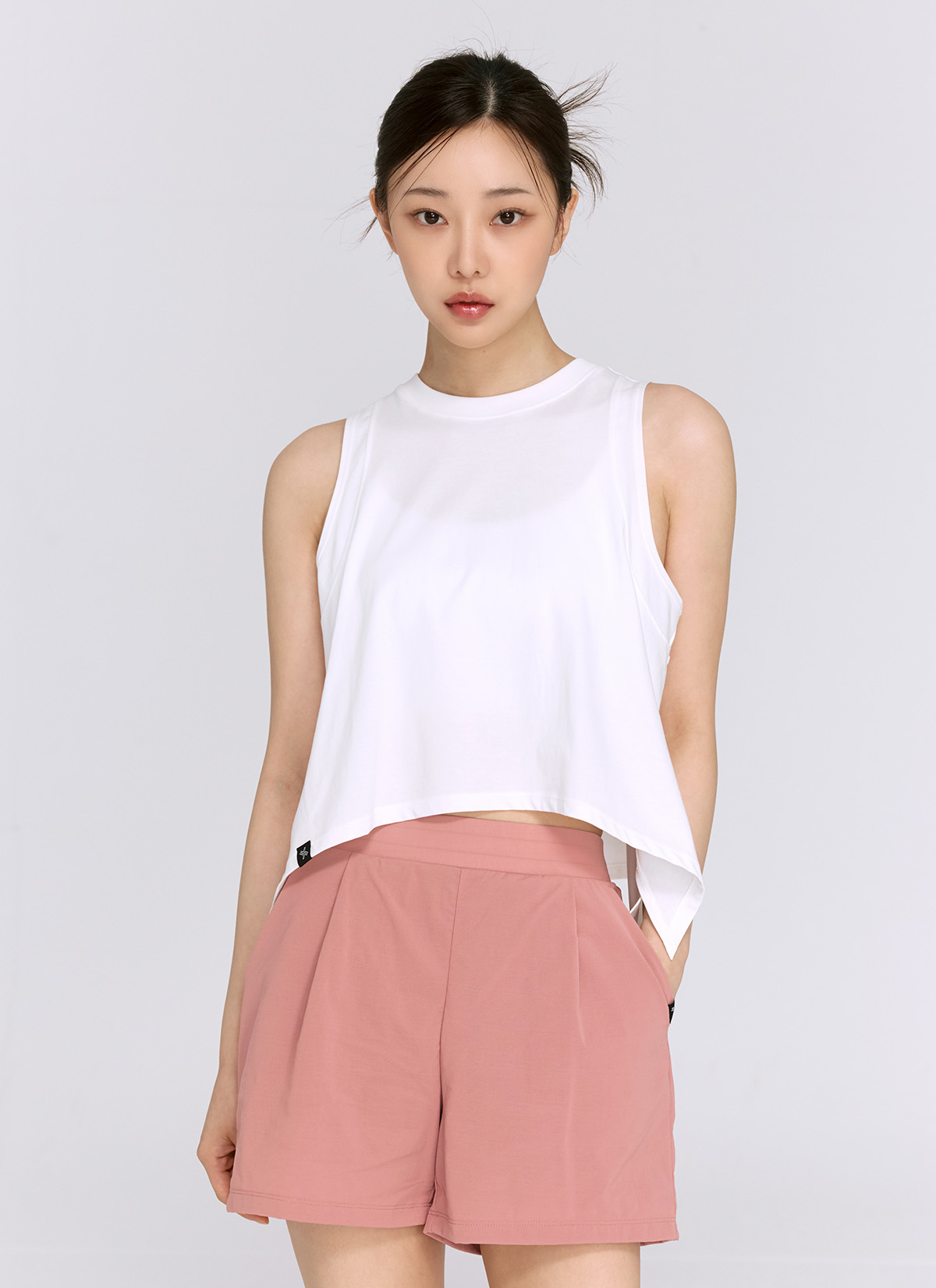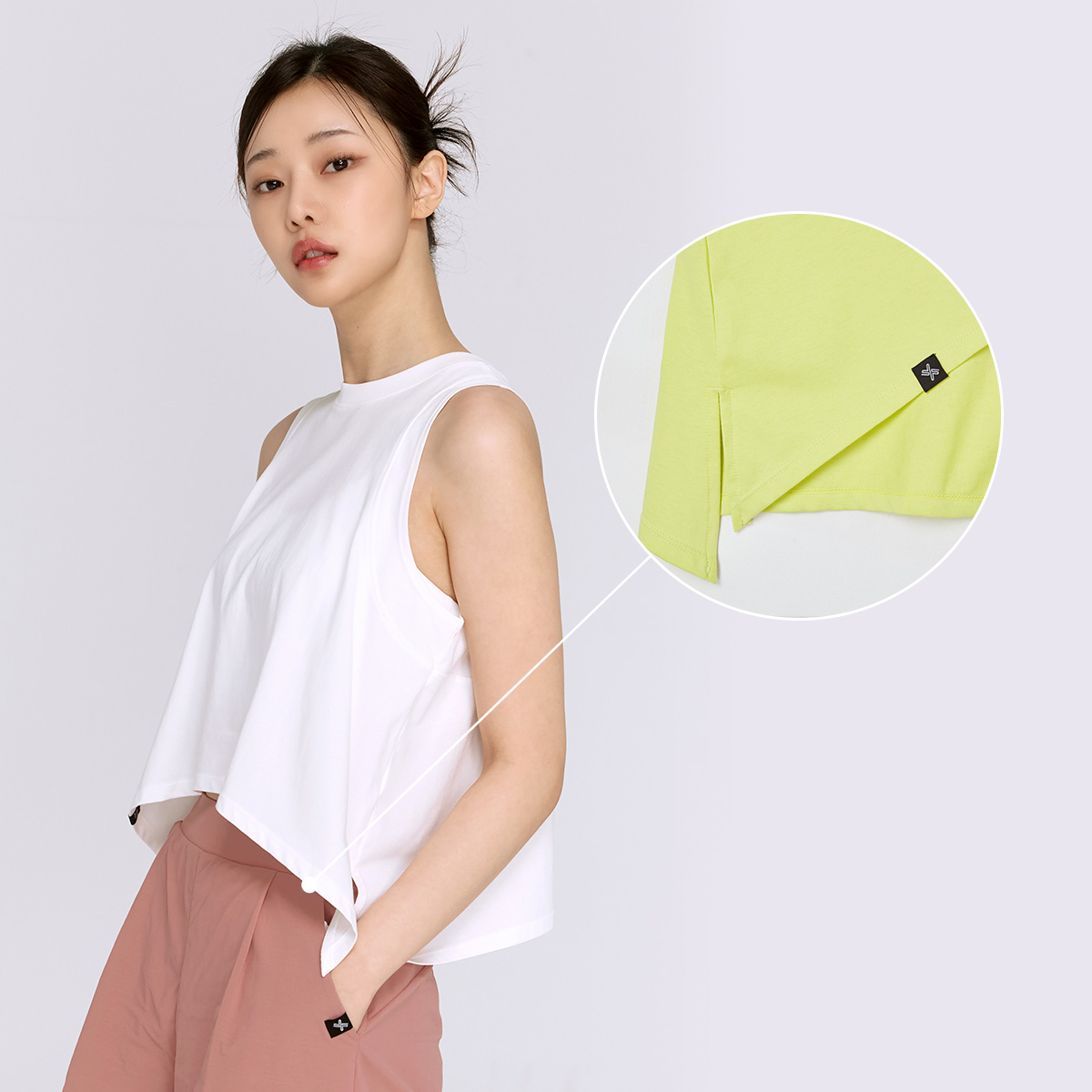 부드러운 천연섬유의 감성, 코튼블렌드 슬릿 슬리브리스 ![]() 자연스러운 플레어 실루엣이 ![]() 브라 탑만 입기엔 부담스러울 때, ![]() 부드러운 코튼 터치와