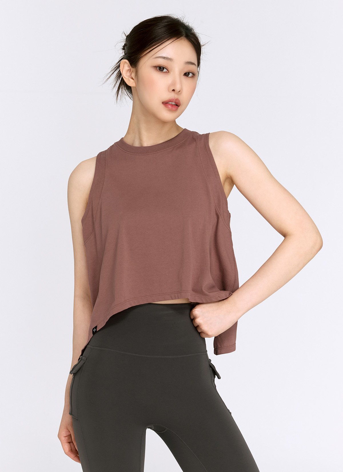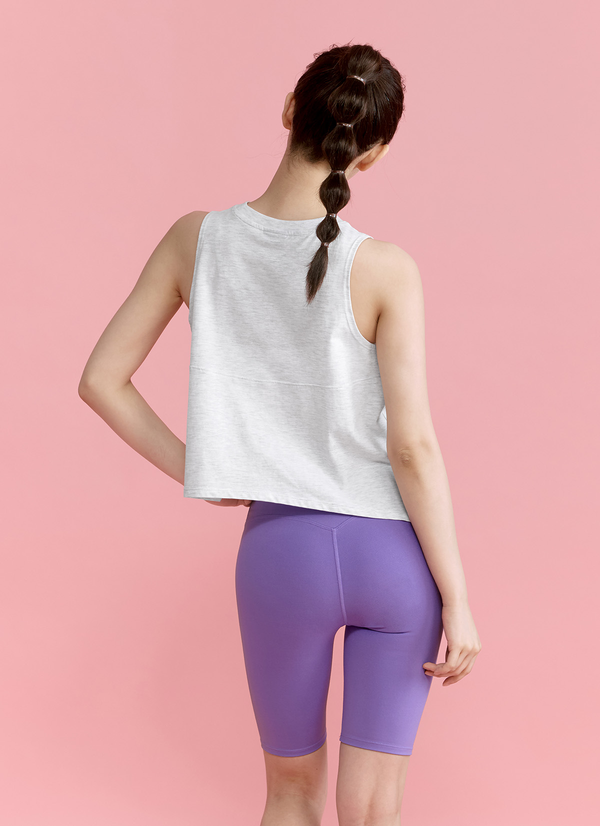 05 "몸에 딱 붙지 않아 편안해요!" 바디 라인을 따라 여유롭게 떨어지는 레귤러 핏으로, 체형에 상관 없이 브라 탑 위에 가볍게 레이어링하여 편안하게 입을 수 있어요.