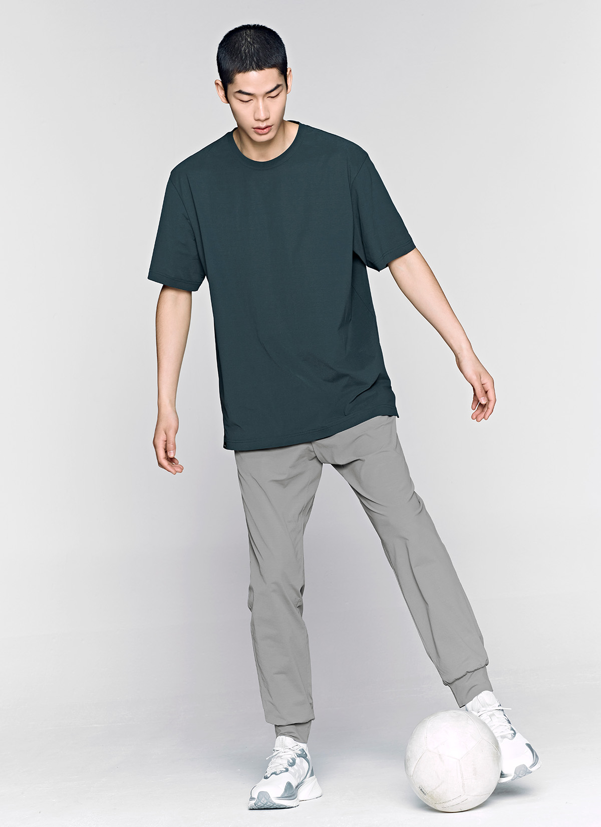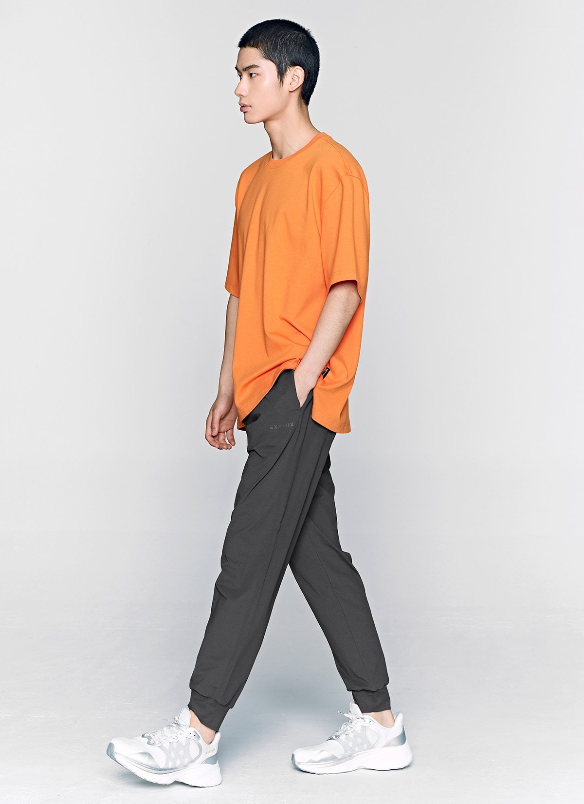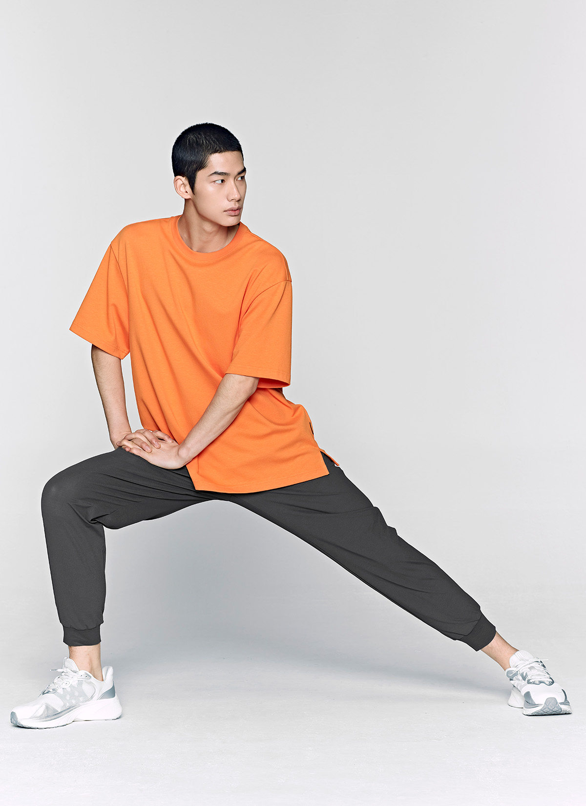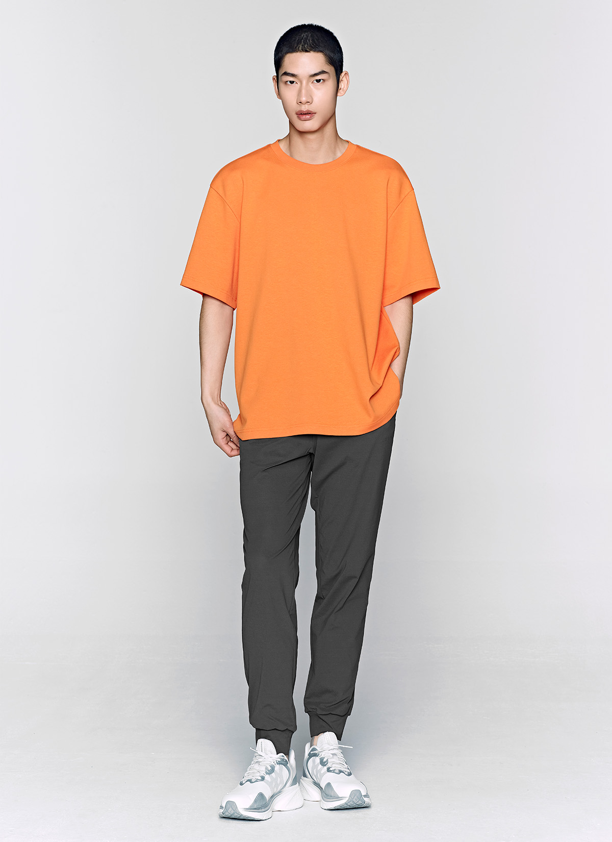 03 내추럴한 조거 핏을 완성해 주는 바지 밑단을 제원단으로 깔끔하게 마감해 안정적이면서도 편안한 조거 핏을 연출해 줘요.