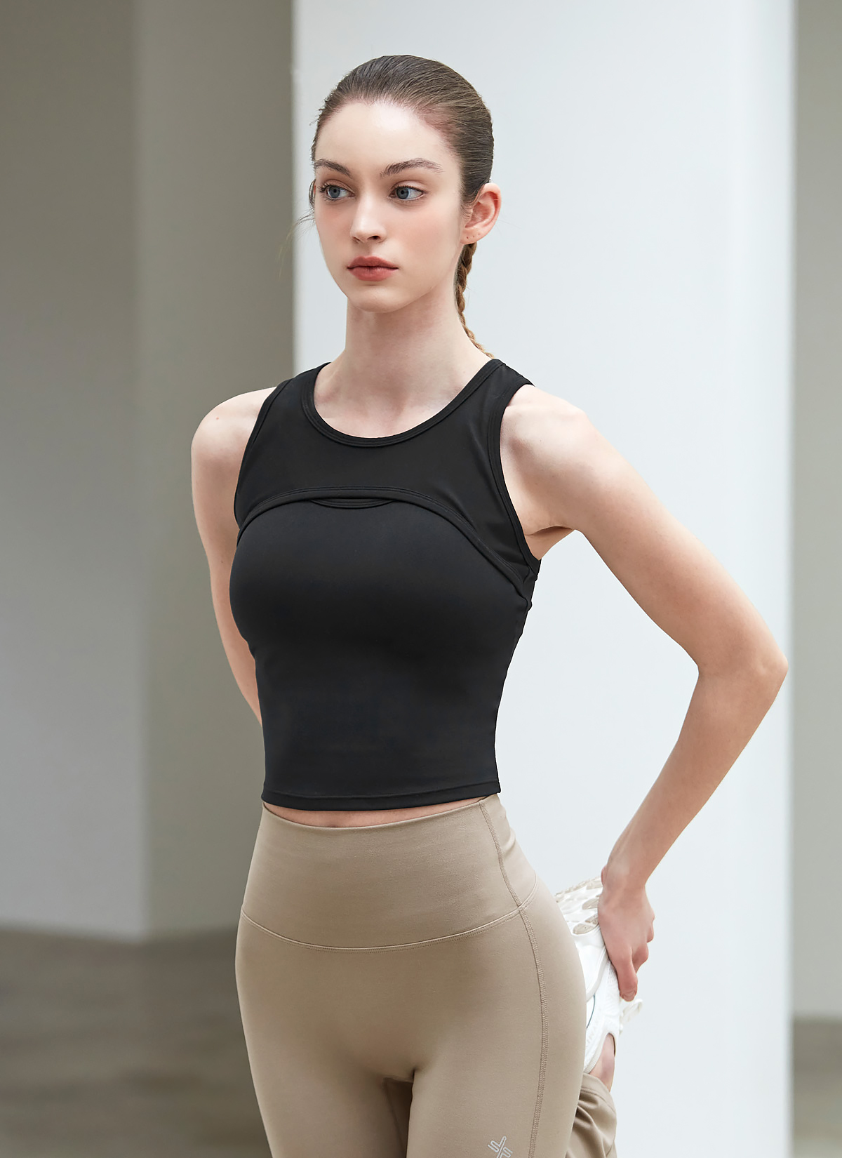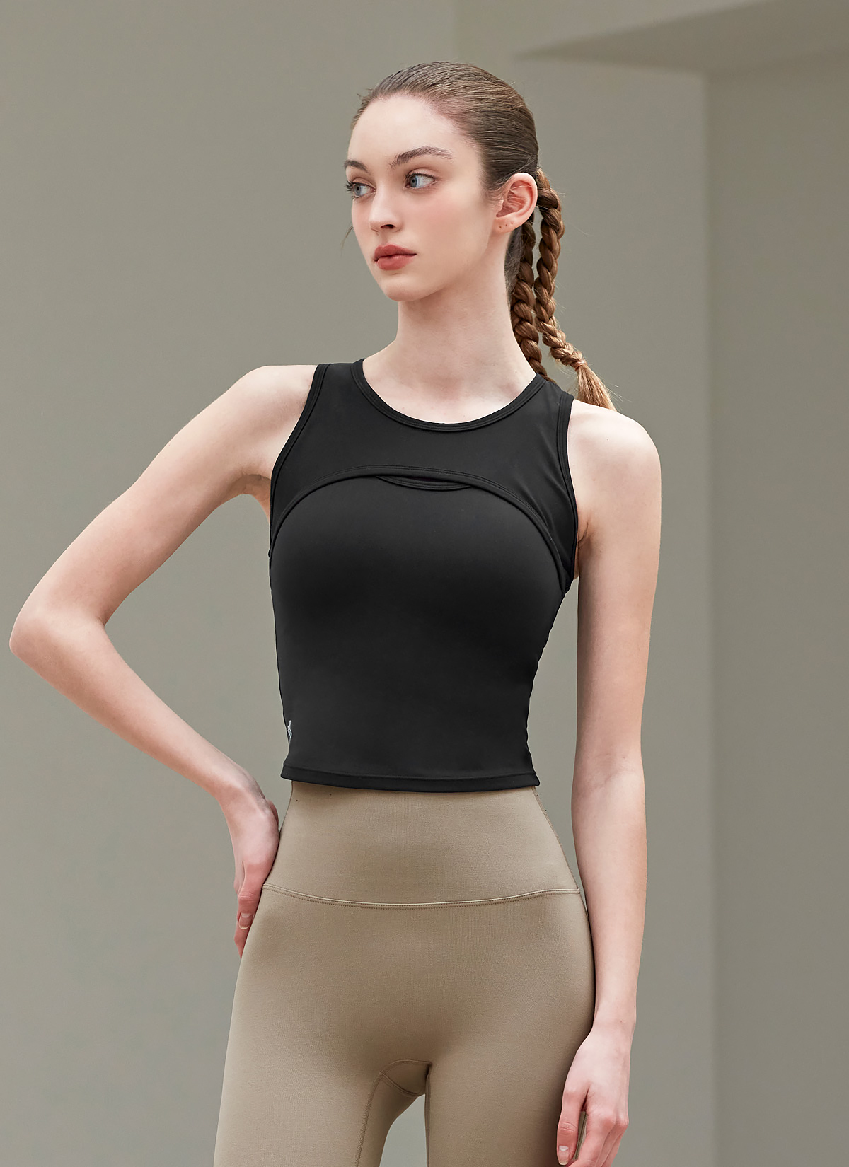 03 하나만 입으면 운동 준비 끝! 브라 패드 탈착이 가능한 디자인으로, 따로 이너웨어를 챙겨 입을 필요가 없어 간편해요.