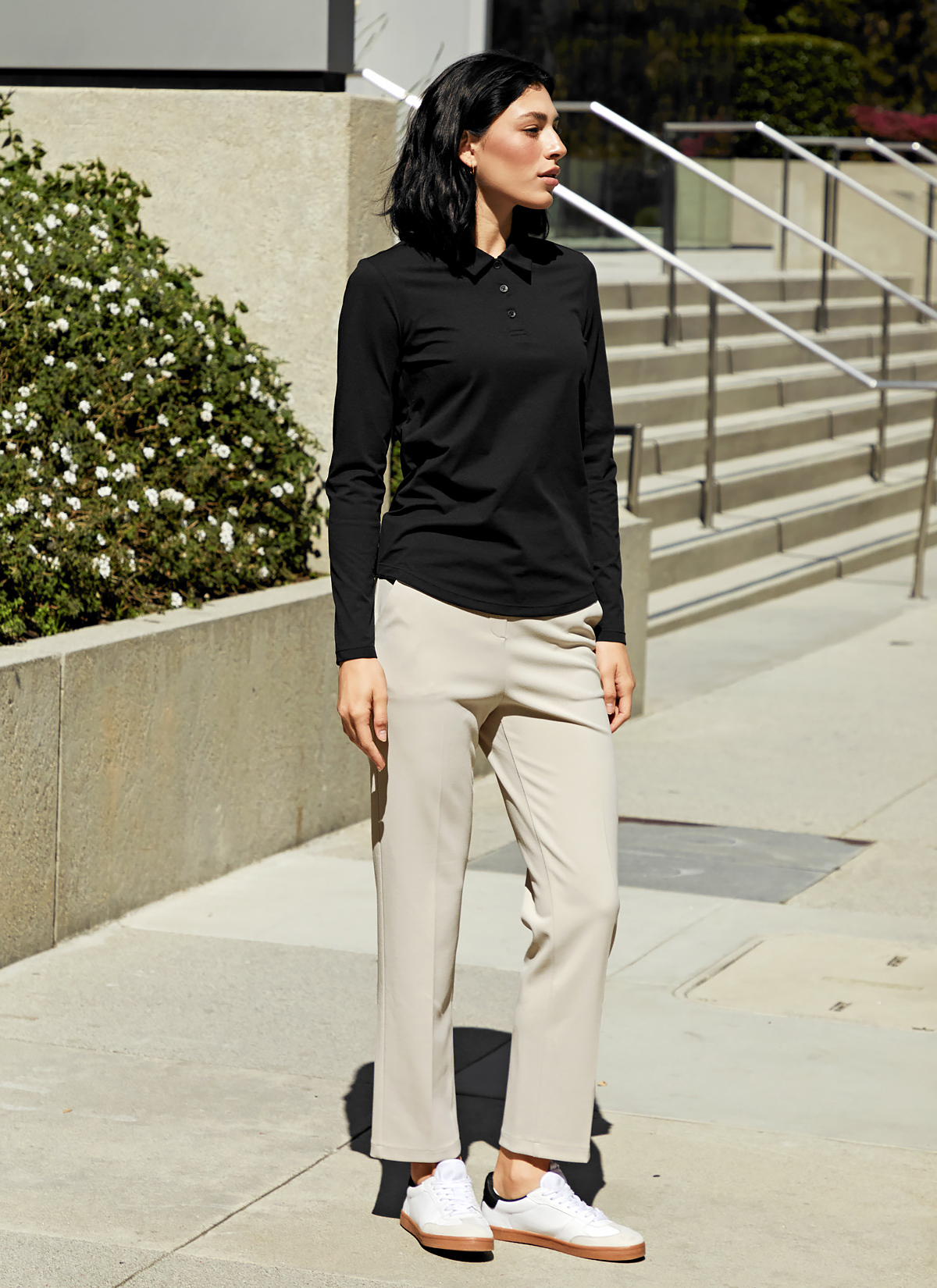 03 "출근도, 친구와의 약속도 하나로 해결!" 허벅지 라인은 여유롭고 무릎부터 발목까지 자연스럽게 떨어지는 스트레이트 핏으로, 날씬해 보이면서 세련된 실루엣을 연출해 줘요.