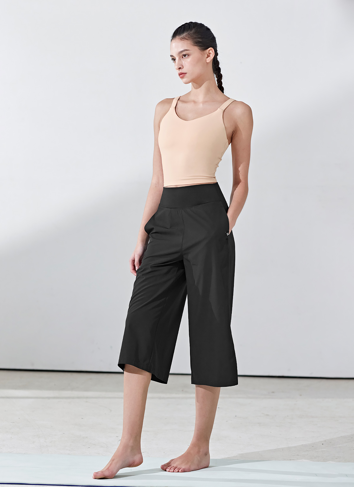 05 스타일과 활동성을 모두 갖춘, 라인이 드러나지 않는 넉넉한 와이드 핏과 무릎 아래로 떨어지는 7부 기장으로, 다양한 움직임에 제약 없이 여유로운 아웃핏을 연출해 줘요.