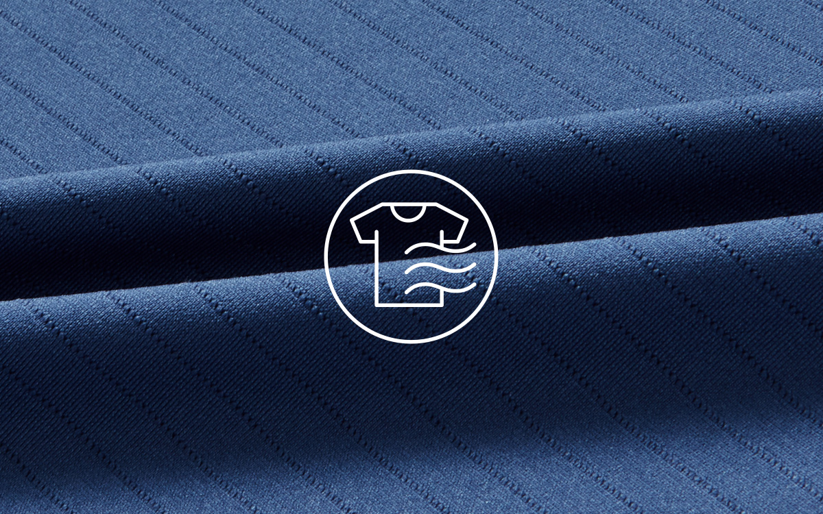 뛰어난 신축성 01 "지금까지 느껴본 적 없던 쾌적함" 클로버 모양의 특수한 단면을 가진 에어로쿨(Aerocool) 원사를 혼방한 소재로, 일반 섬유 대비 피부와의 접촉면이 넓어 땀을 빠르게 흡수·건조시켜 액티브 활동 시 쾌적함을 선사해요.