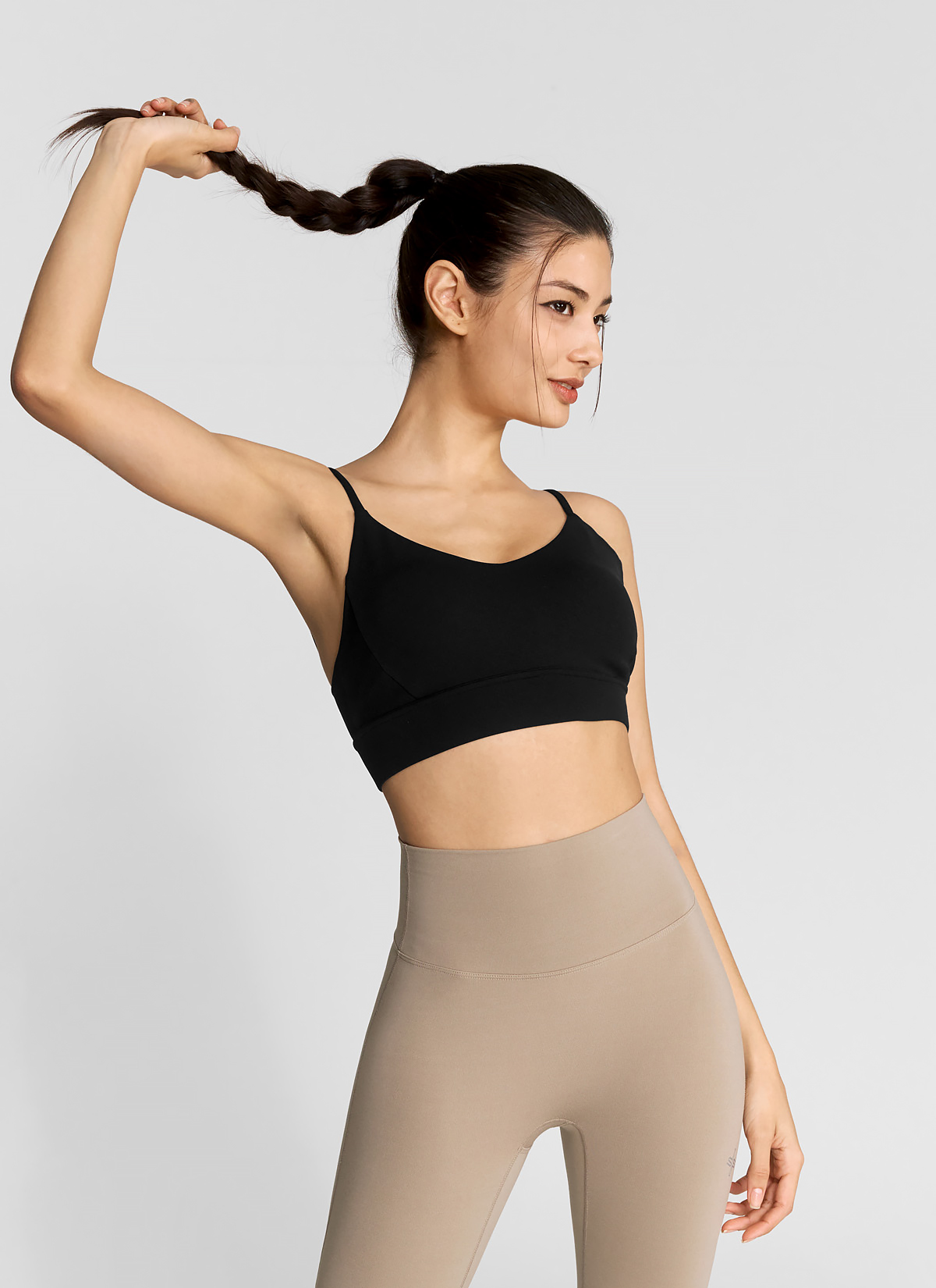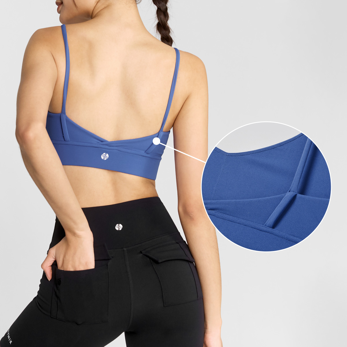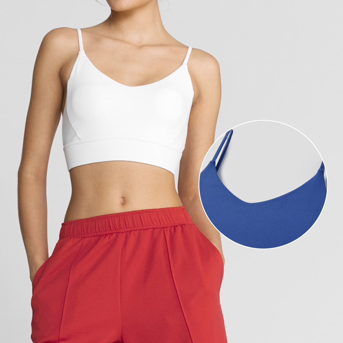 03 하나만 입으면 운동 준비 끝! 브라 패드 탈착이 가능한 디자인으로, 따로 이너웨어를 챙길 필요가 없어 간편해요.
