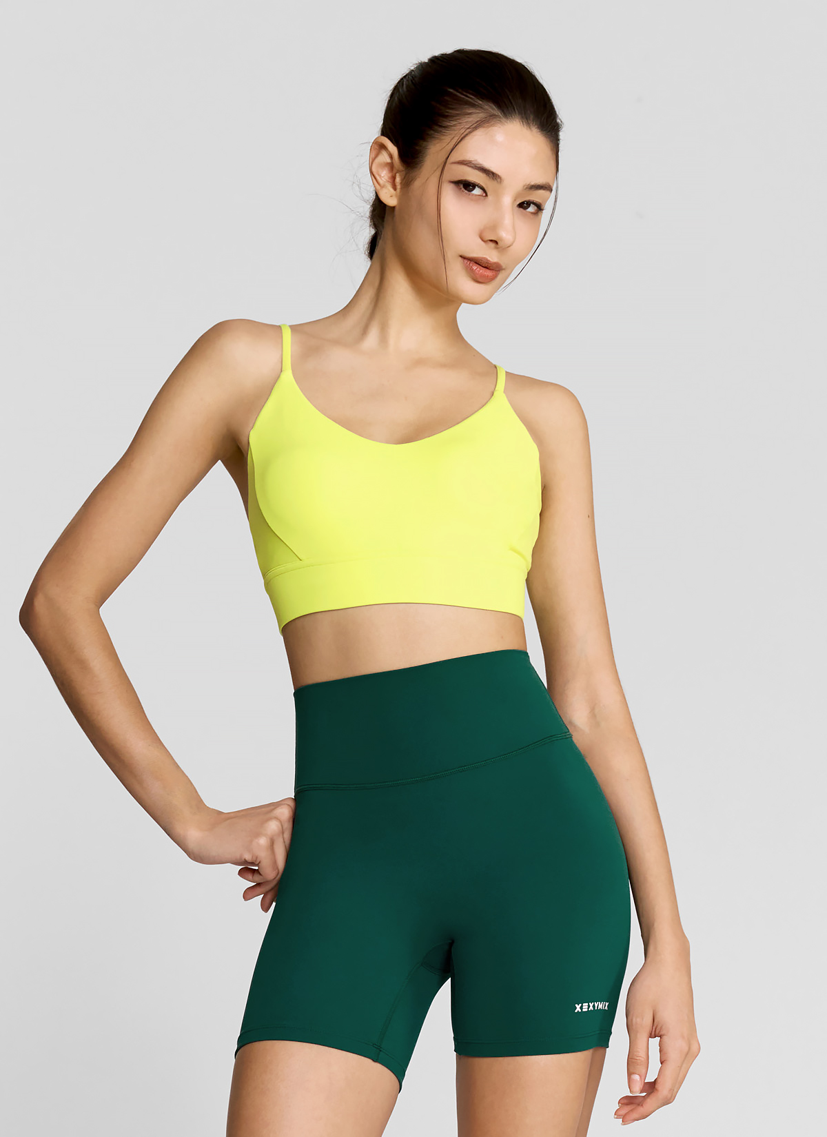 03 하나만 입으면 운동 준비 끝! 브라 패드 탈착이 가능한 디자인으로, 따로 이너웨어를 챙길 필요가 없어 간편해요.