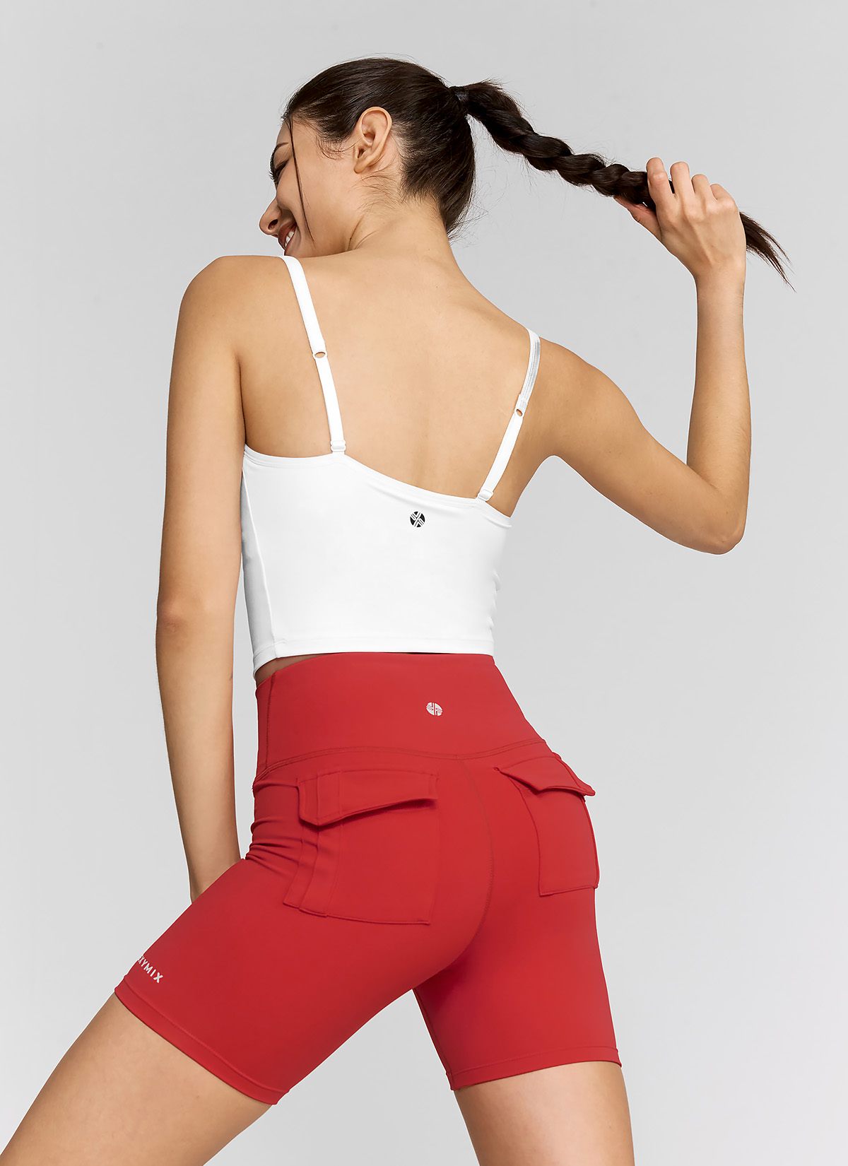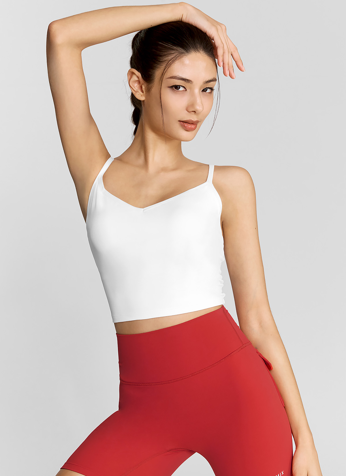 04 "하나만 입으면 운동 준비 끝!" 간편한 브라 패드 일체형 디자인 안감에 브라 패드가 부착되어 있는 일체형 디자인으로, 따로 이너웨어나 별도의 패드를 챙길 필요가 없어 간편해요. * 기계 세탁 시 패드 모양이 변형될 수 있으니 손세탁을 권장하며, 패드가 구겨졌을 시 안쪽 면을 다림질하면, 구김 현상이 복원됩니다.