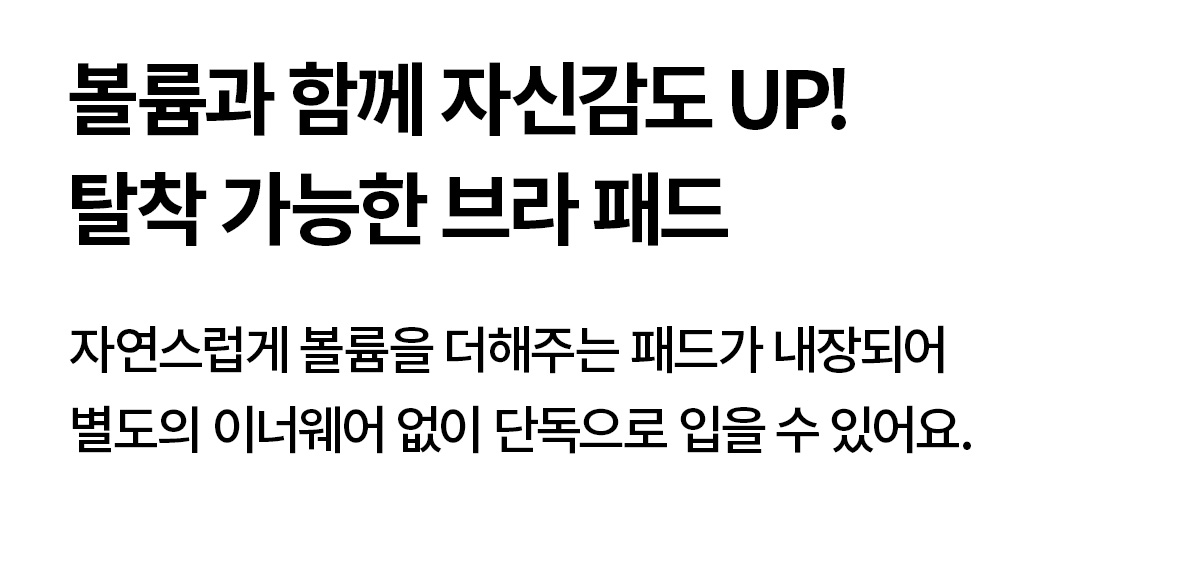 INNER AIR BRA PAD 본 상품은 타공 스펀지로 통기성이 업그레이드된 에어 브라패드(1cm)가 포함되어 있습니다. S, M 사이즈 패드탑 : S / M 사이즈 패드 L, XL, XXL, XXXL 사이즈 패드탑 : L / XL 사이즈 패드