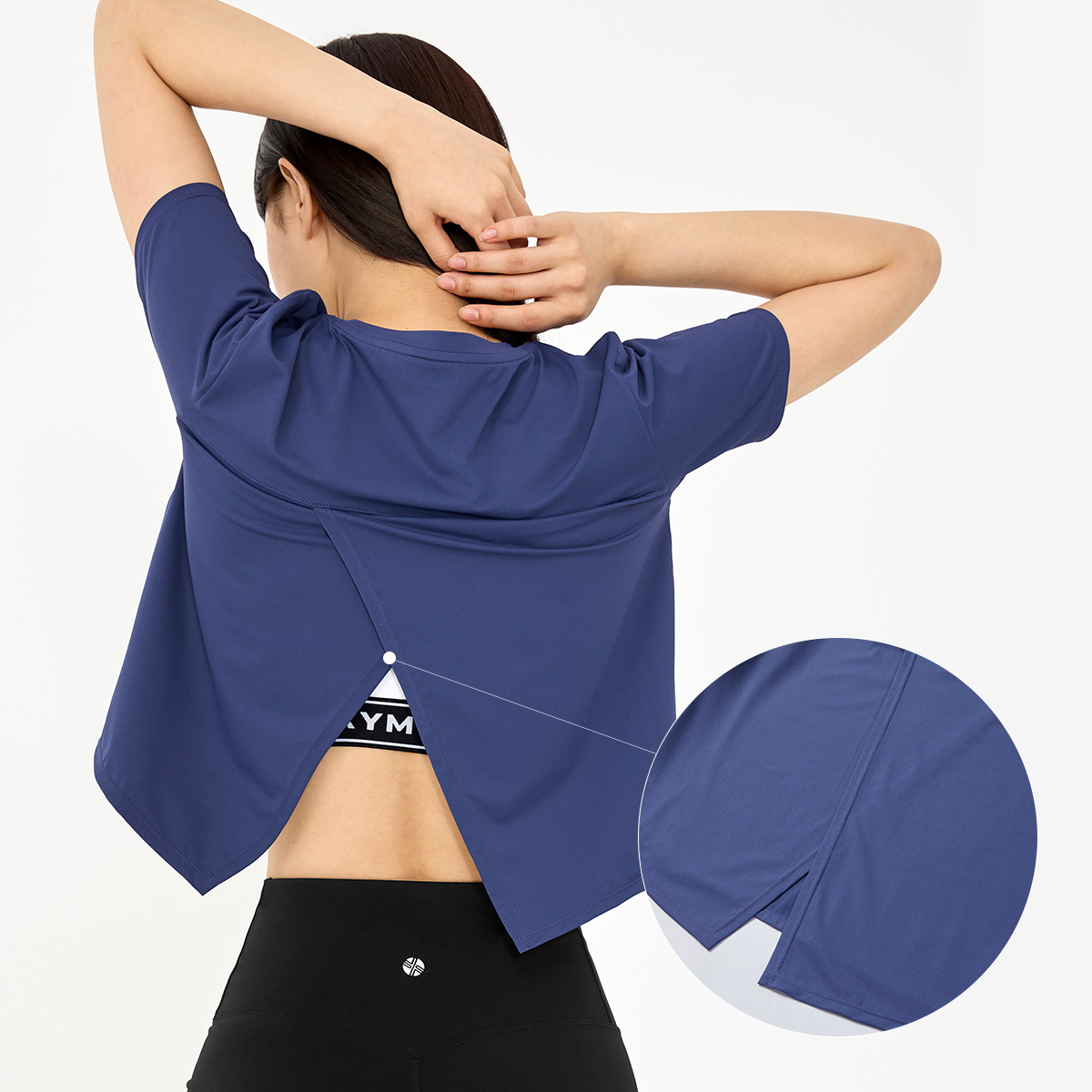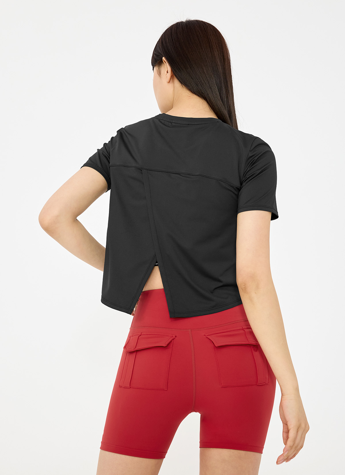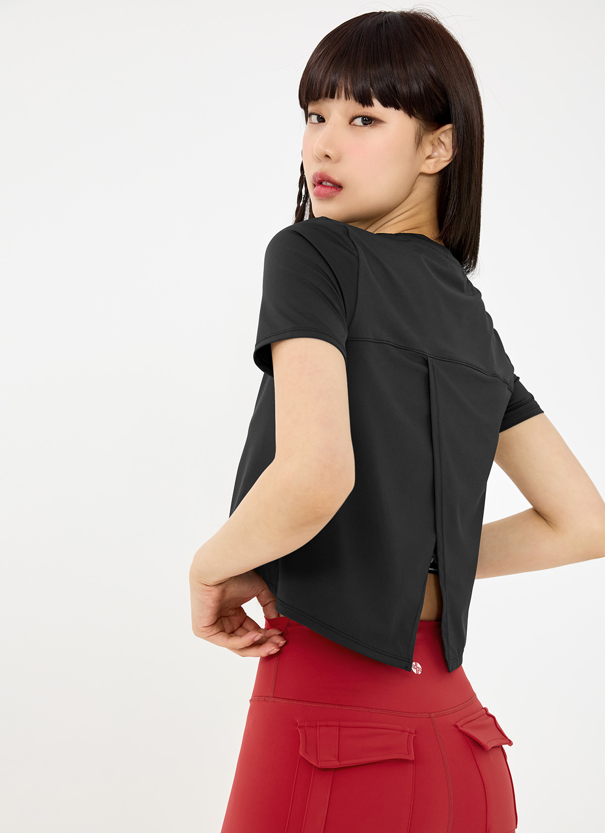 XWFST02J2 Ice Feather Backslit Crop Short Sleeve 2.0 Black Top