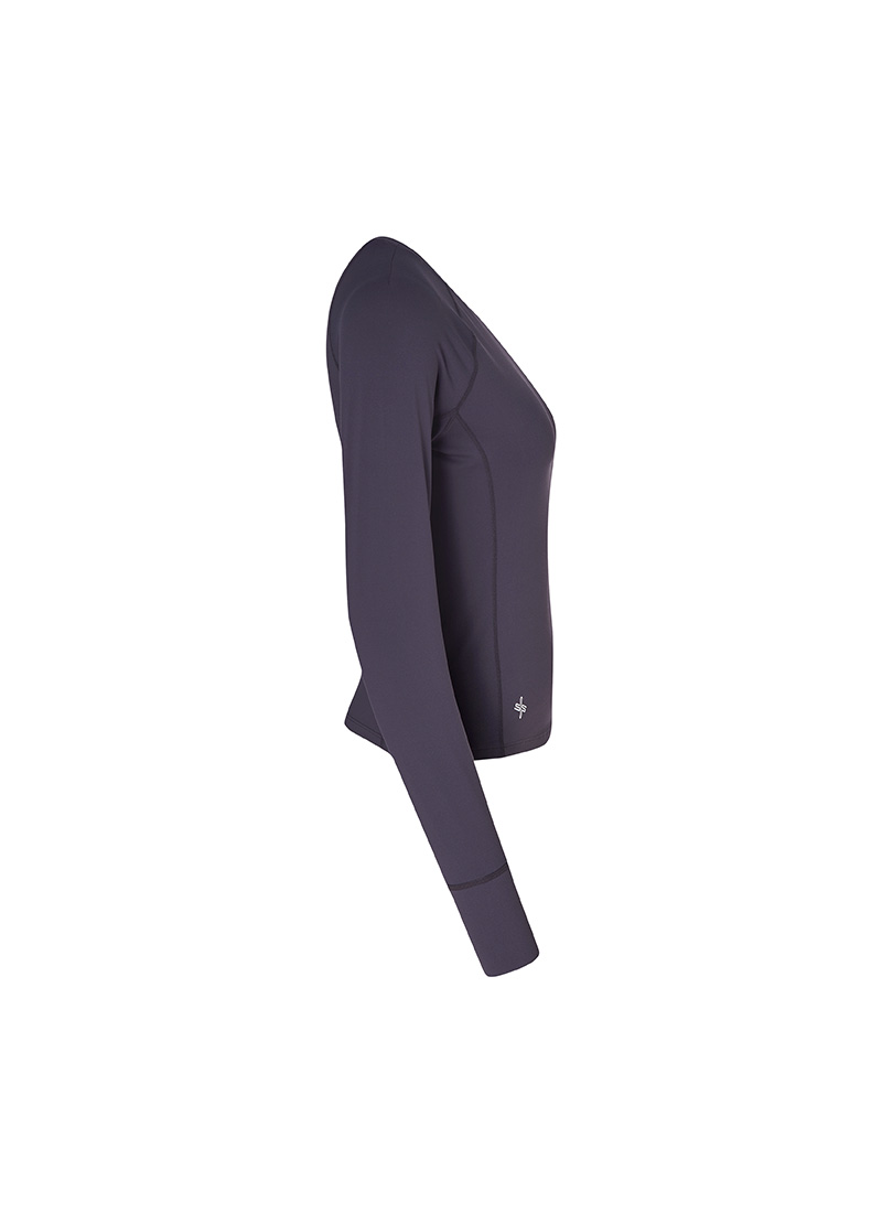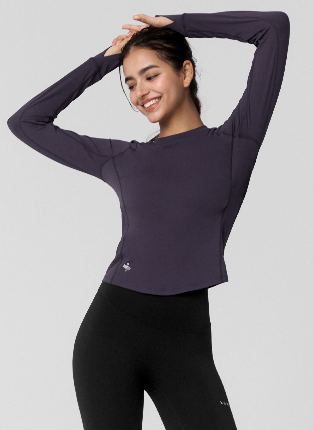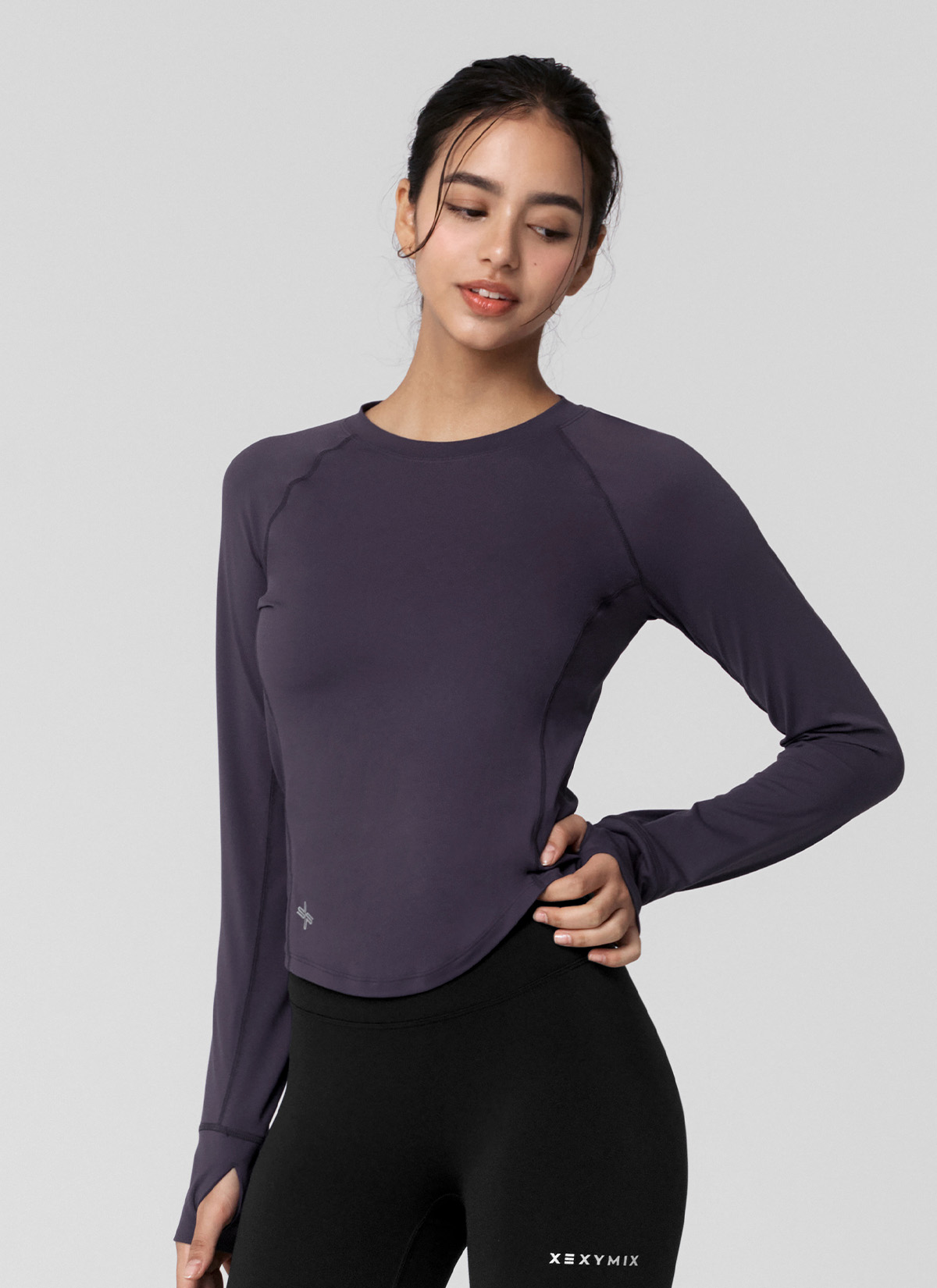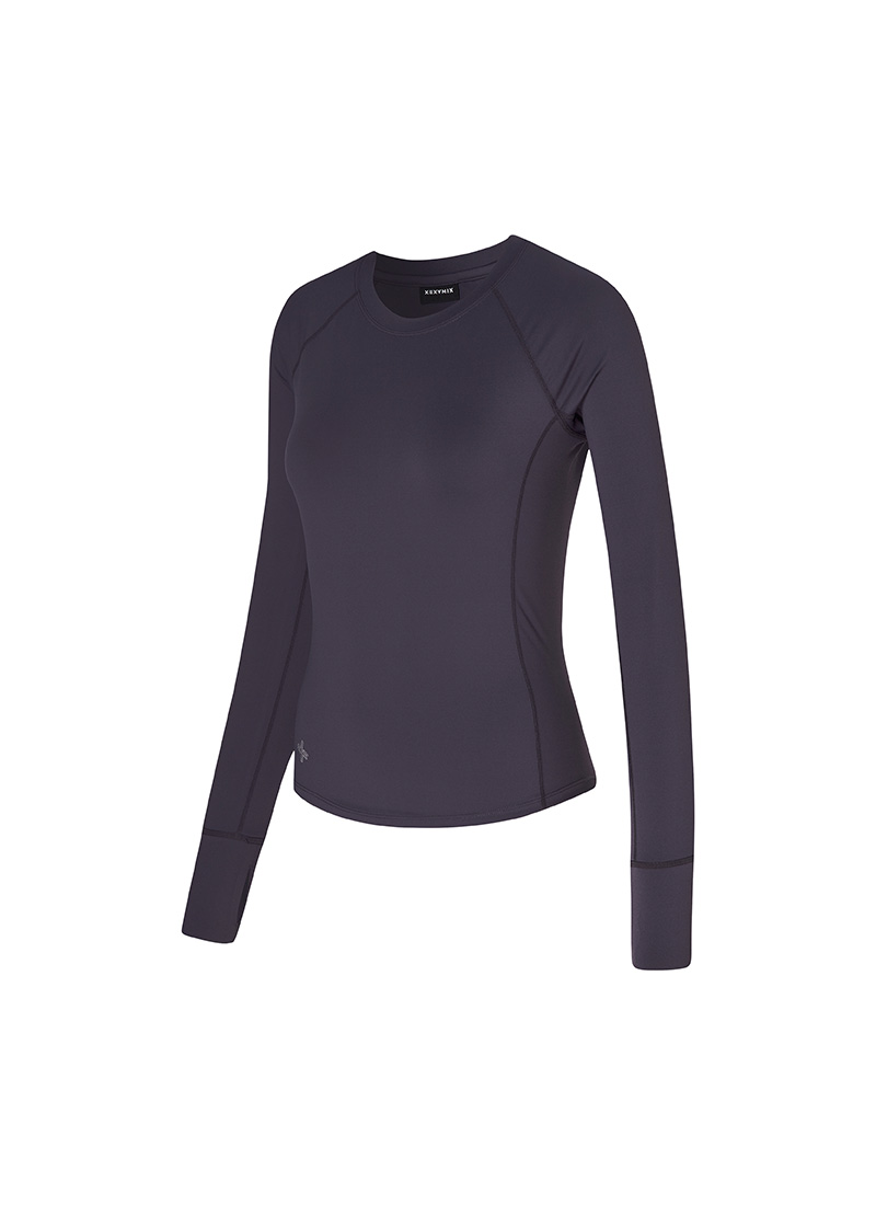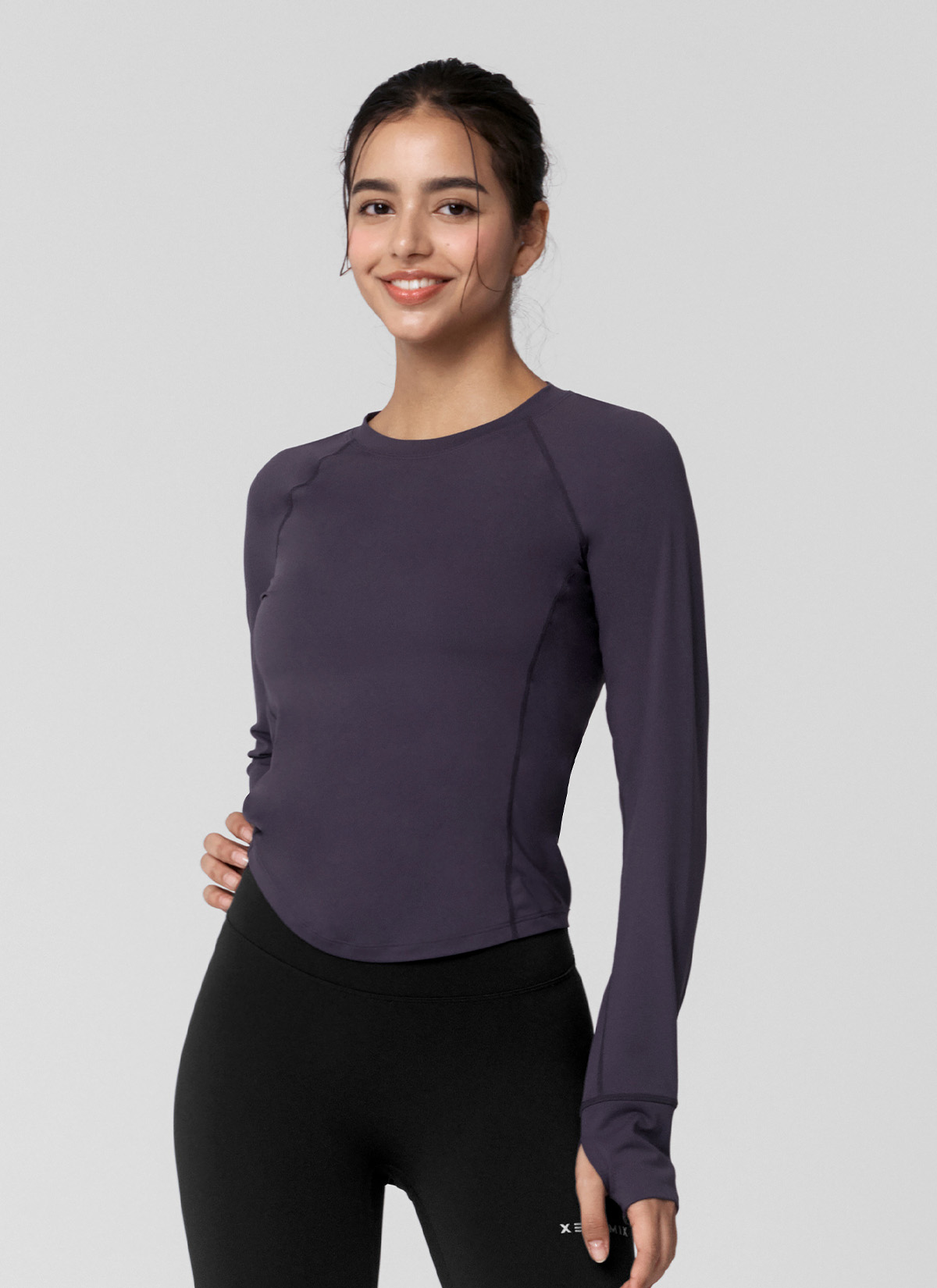 XWFLT02J3 High-Intensity Finger Hole Long Sleeve Blackberry Top