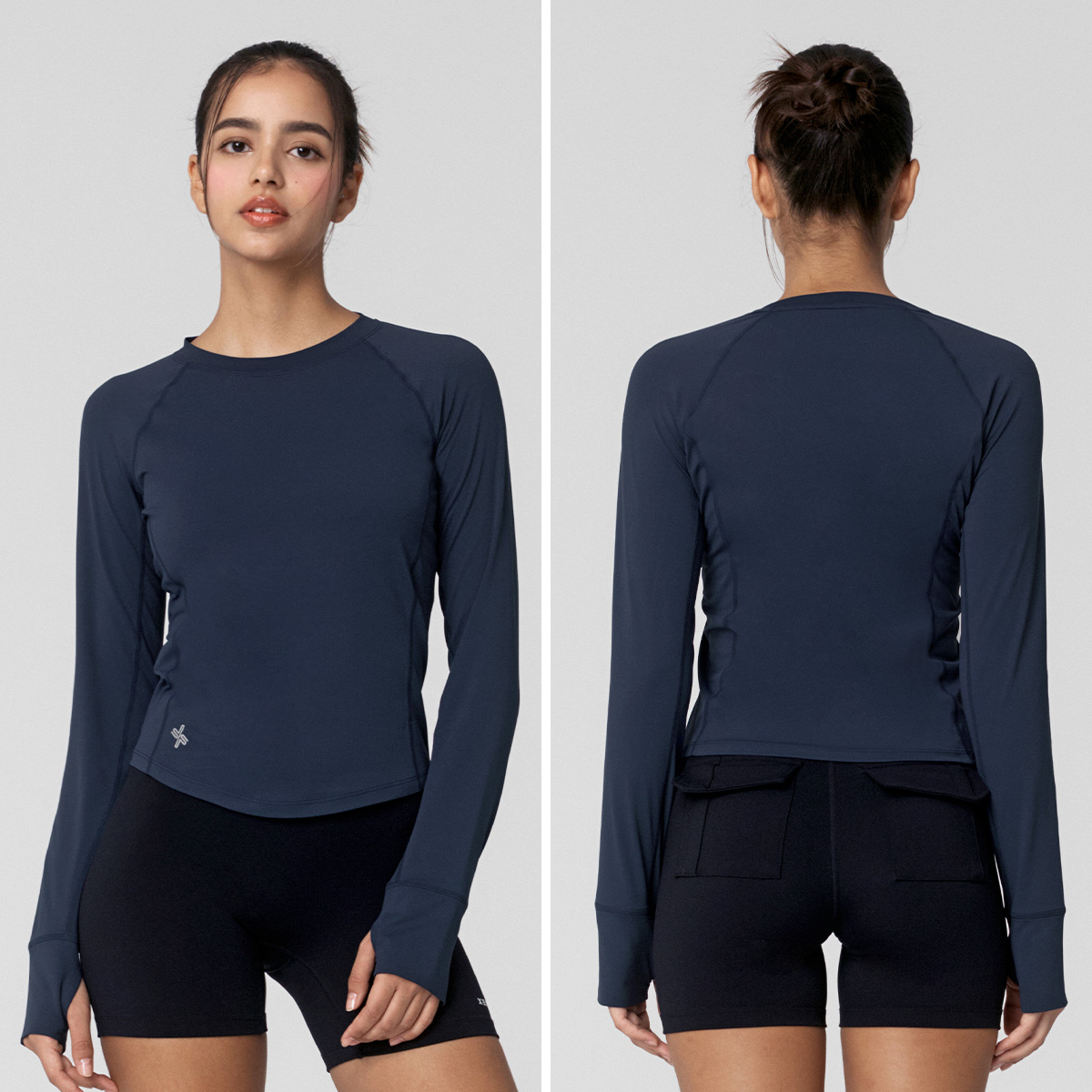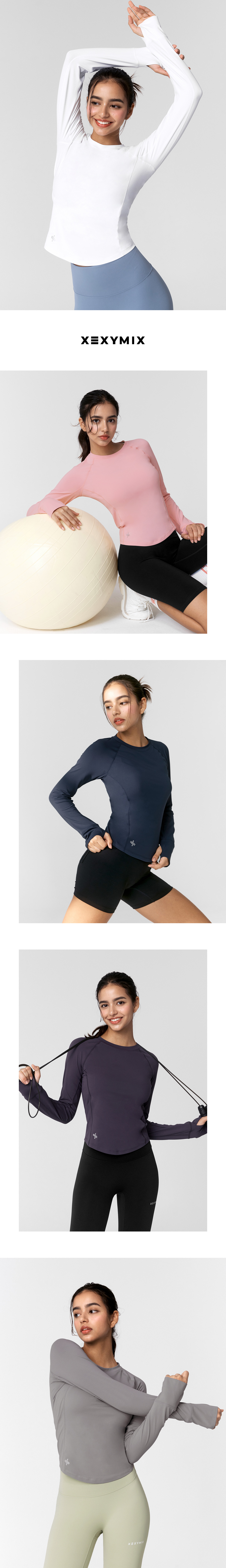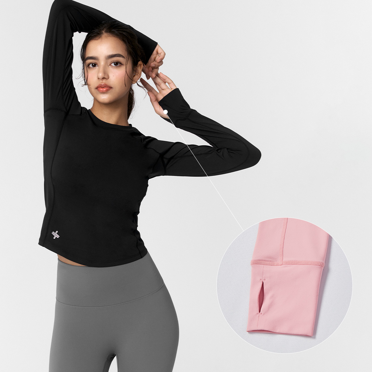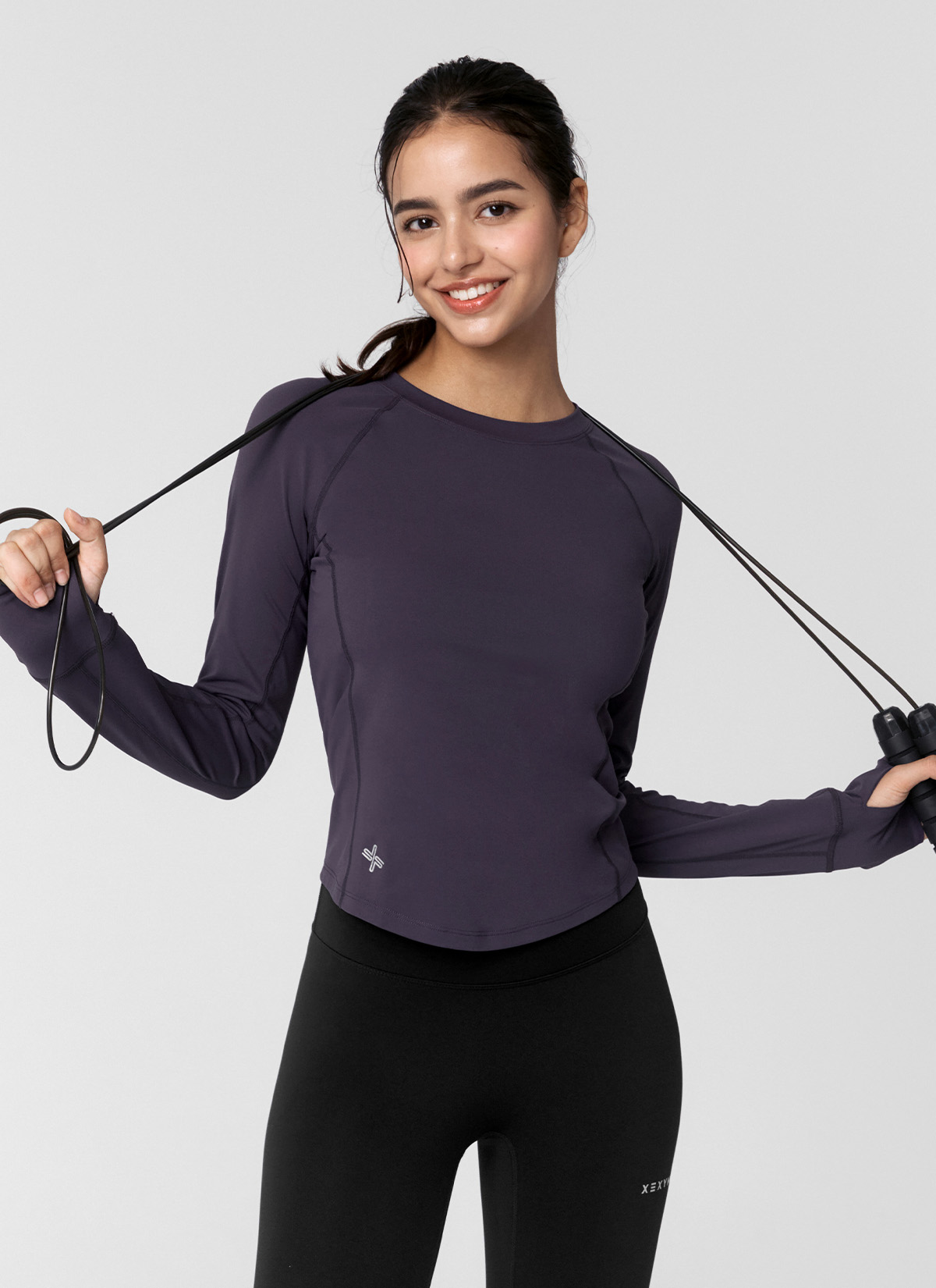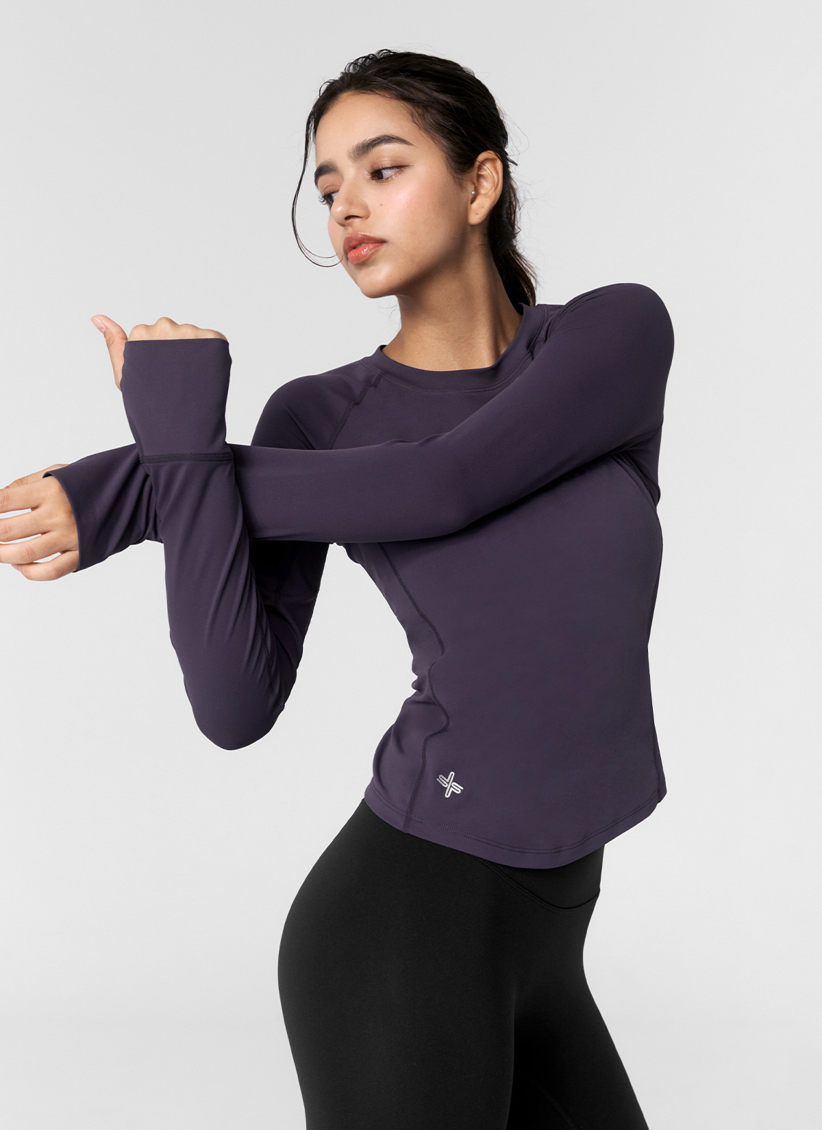 XWFLT02J3 High-Intensity Finger Hole Long Sleeve Blackberry Top