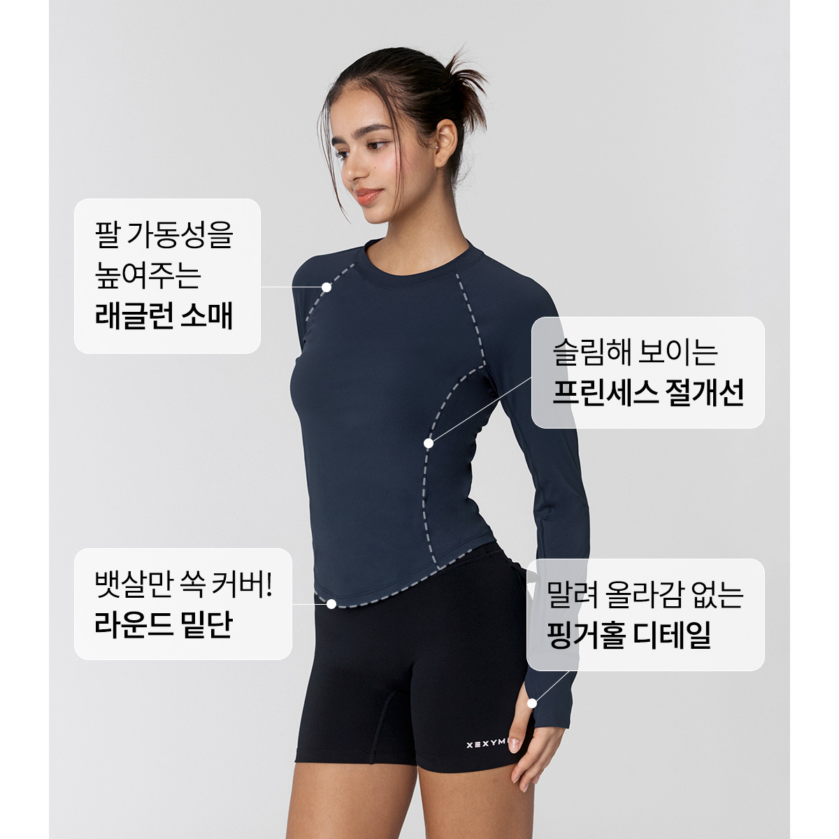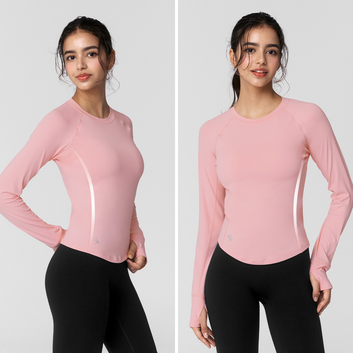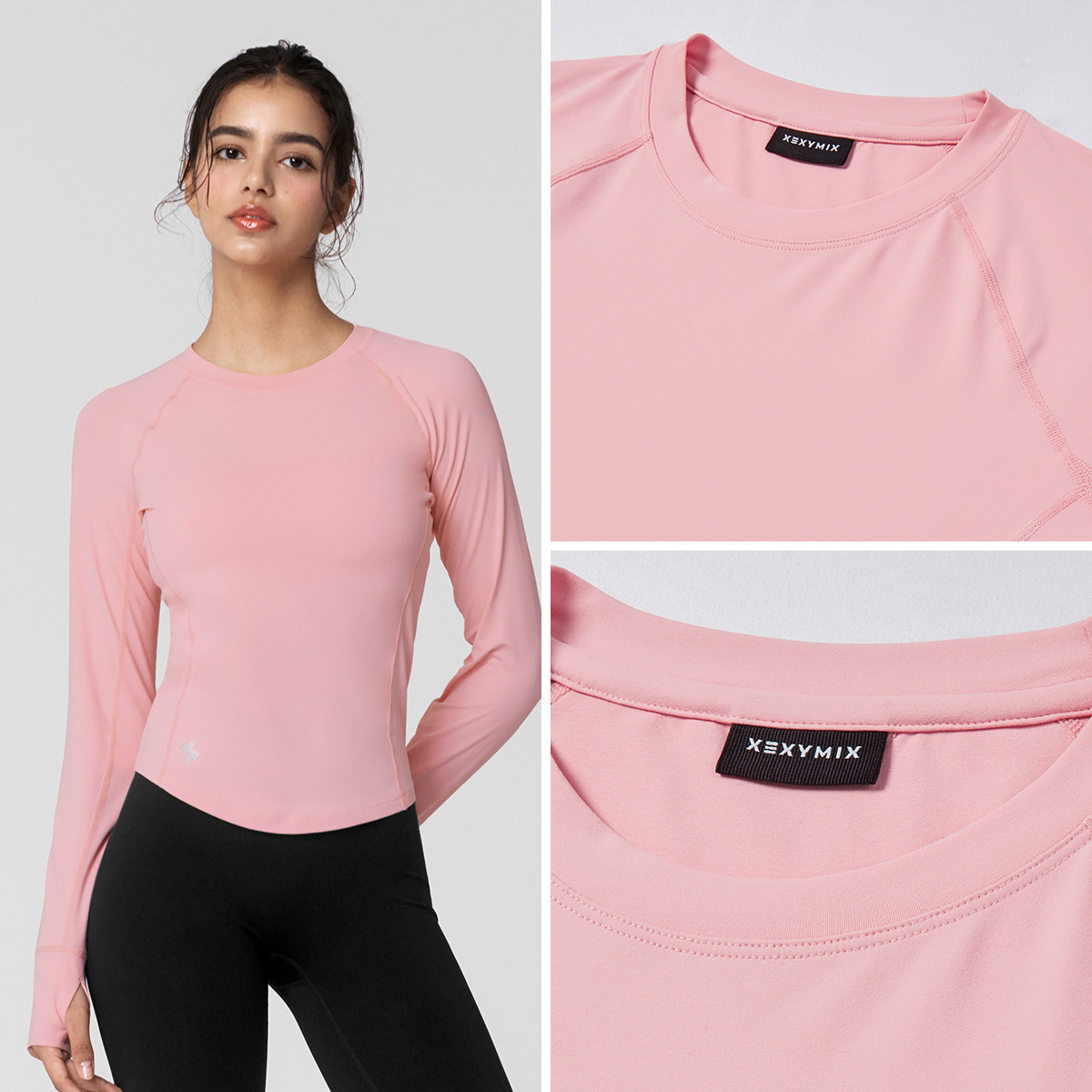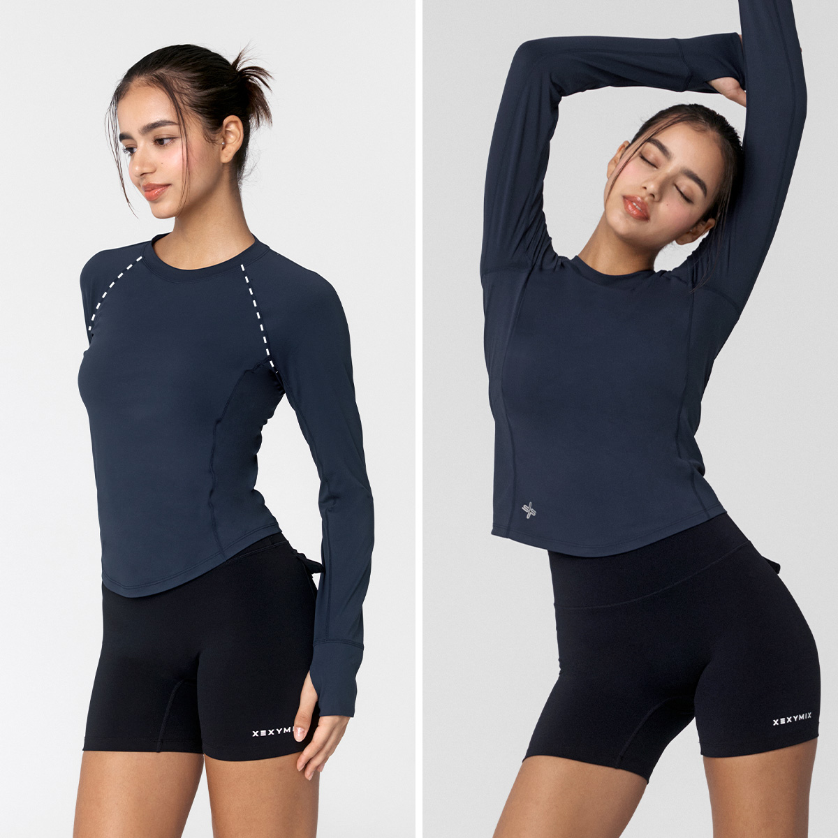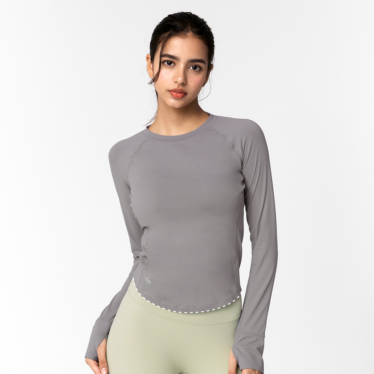 XWFLT02J3 High-Intensity Finger Hole Long Sleeve Blackberry Top