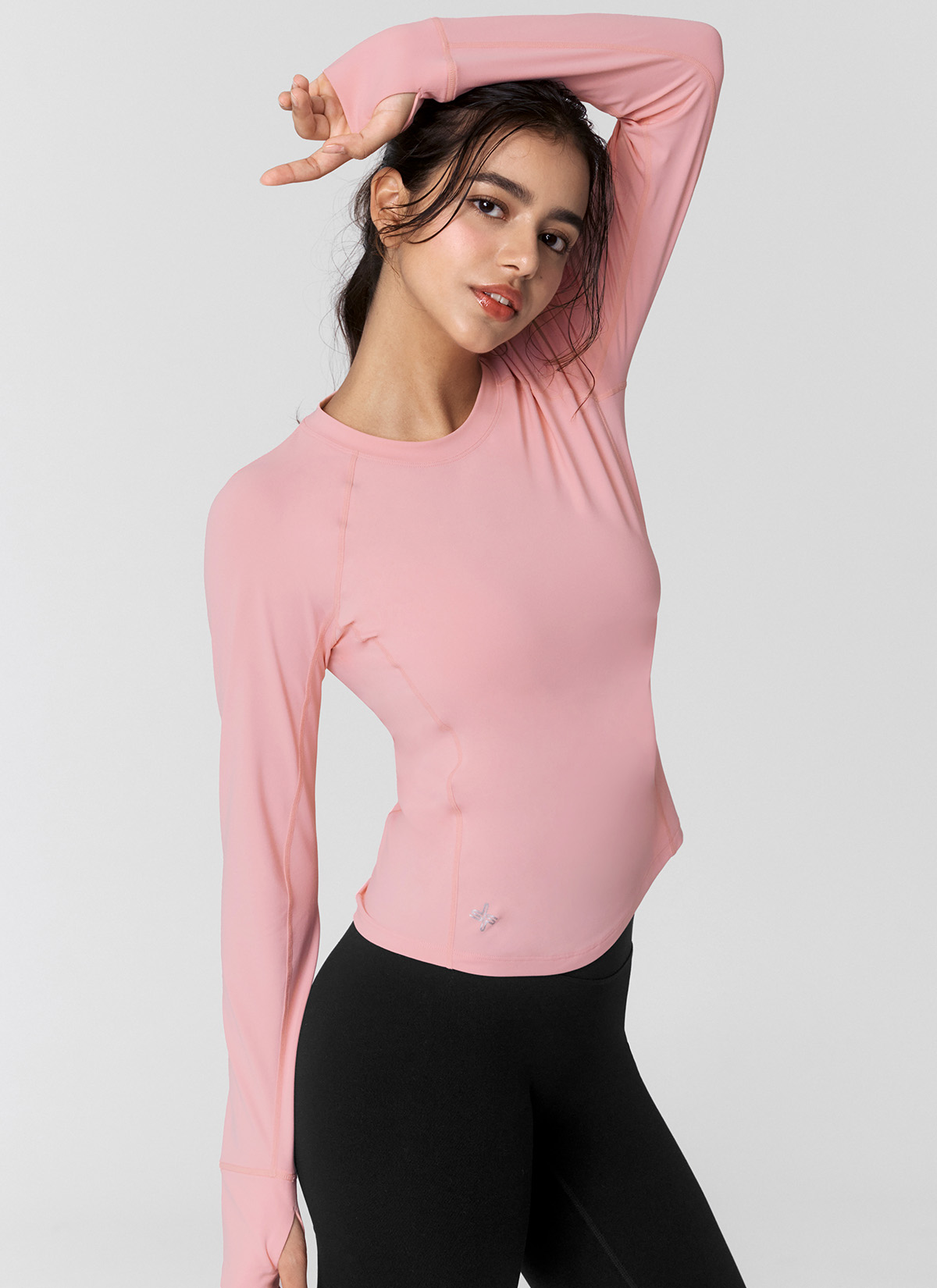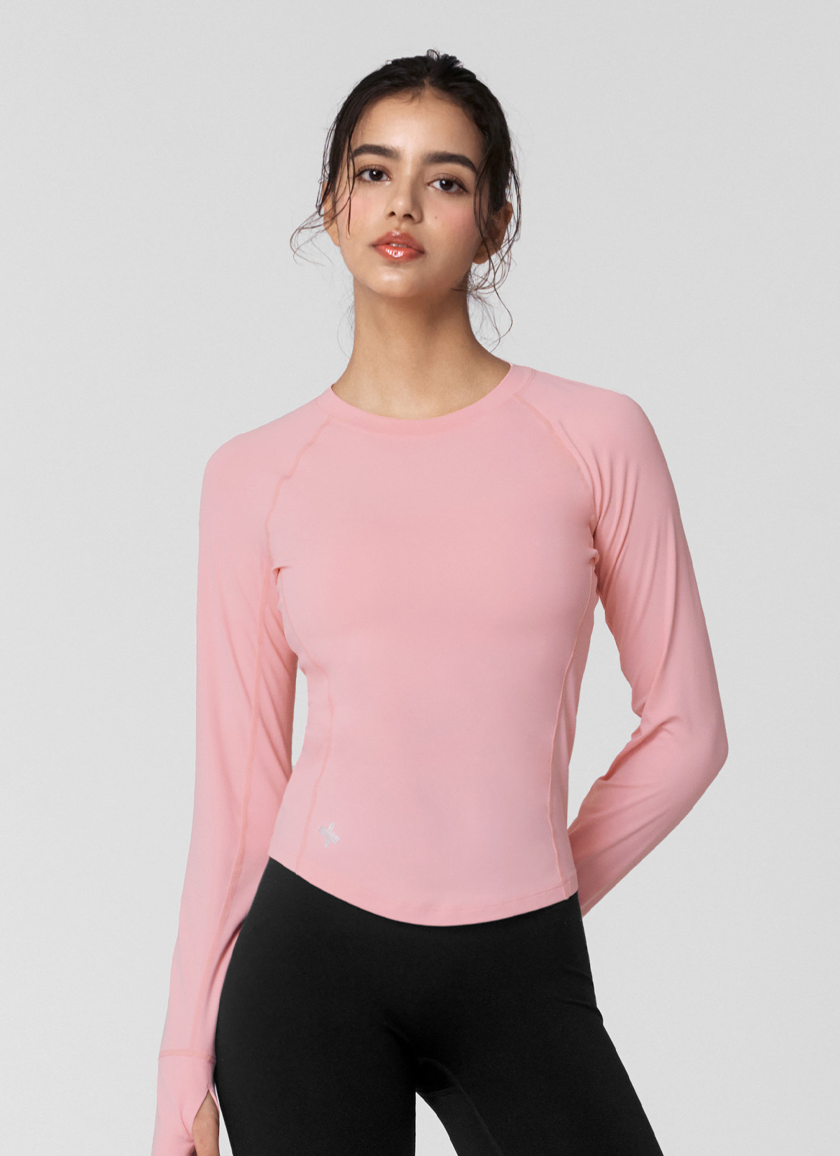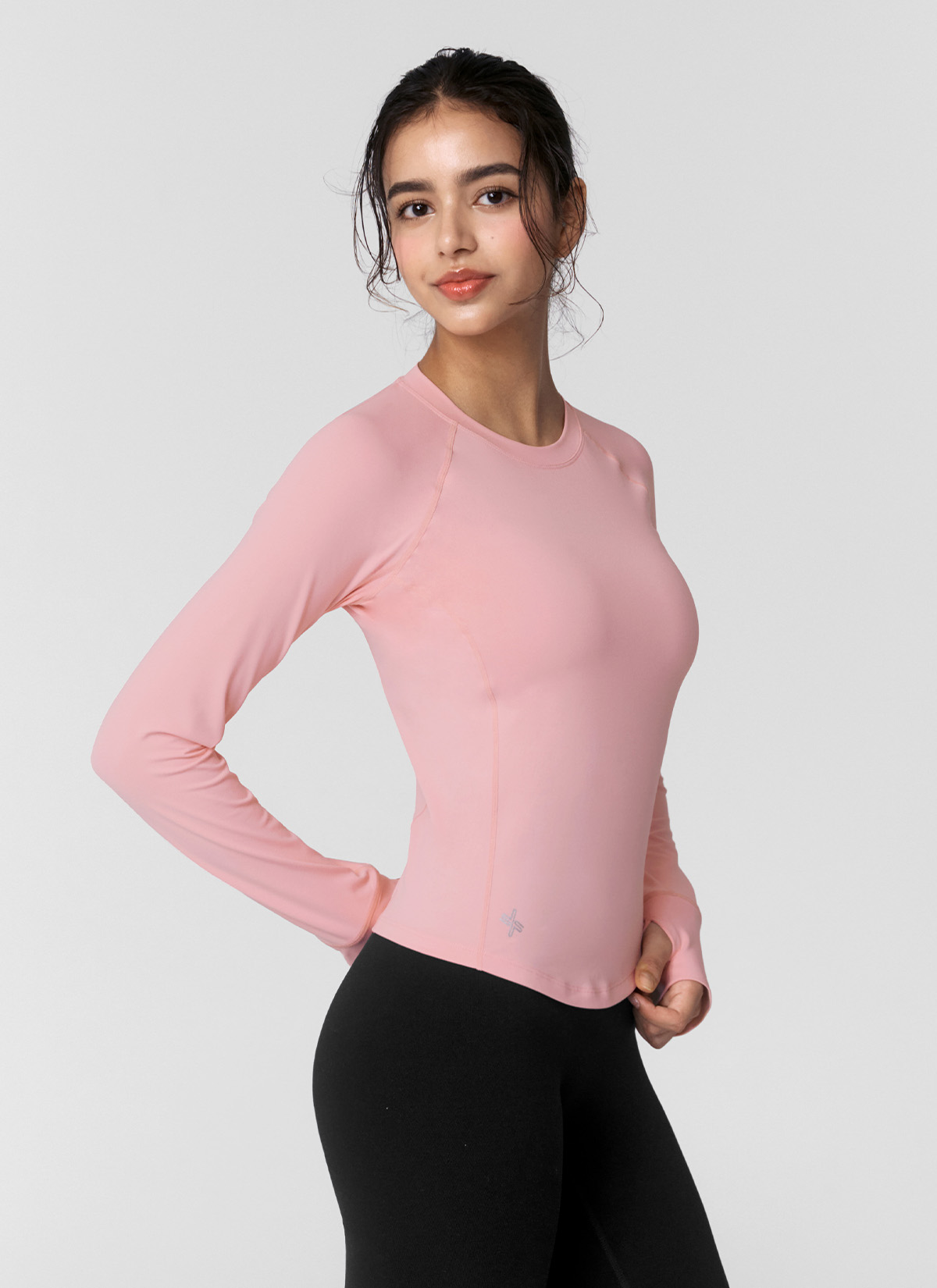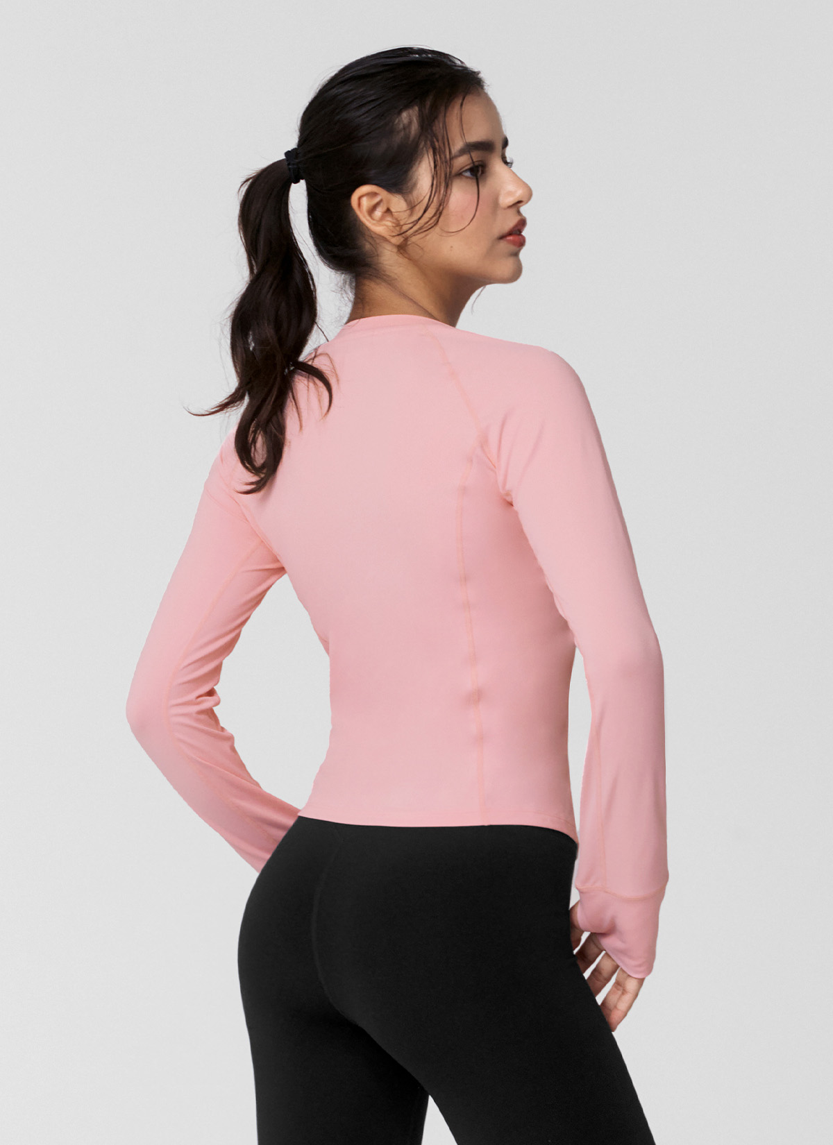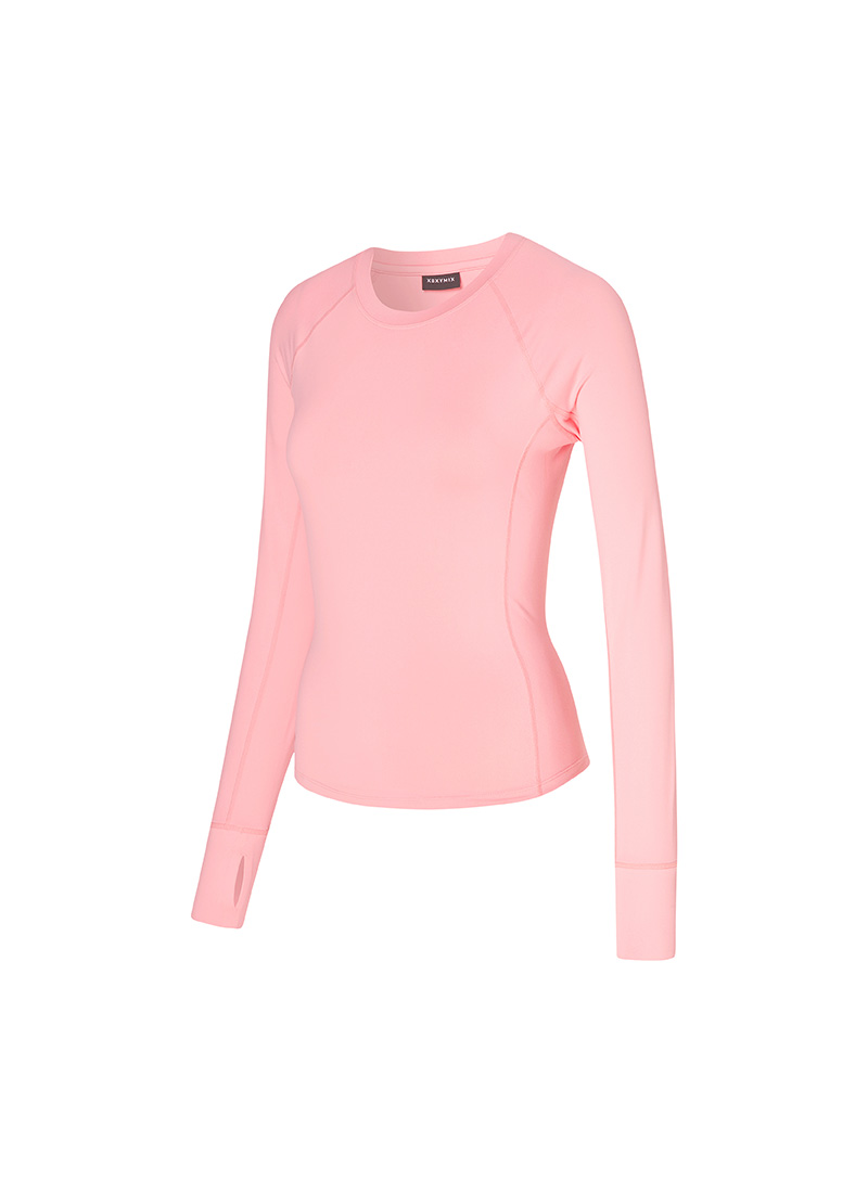 XWFLT02J3 High-Intensity Finger Hole Long Sleeve Marshmallow Pink Top