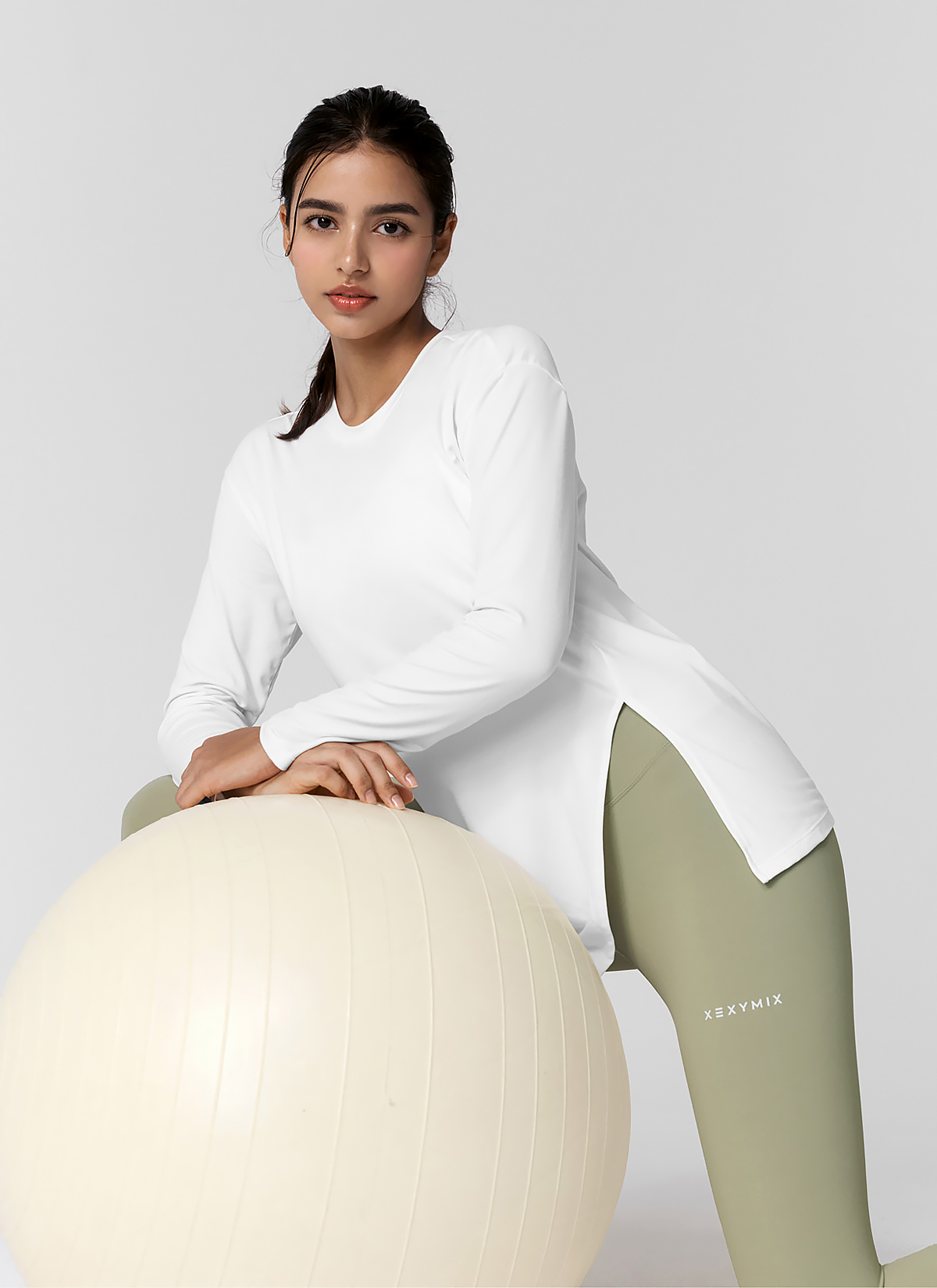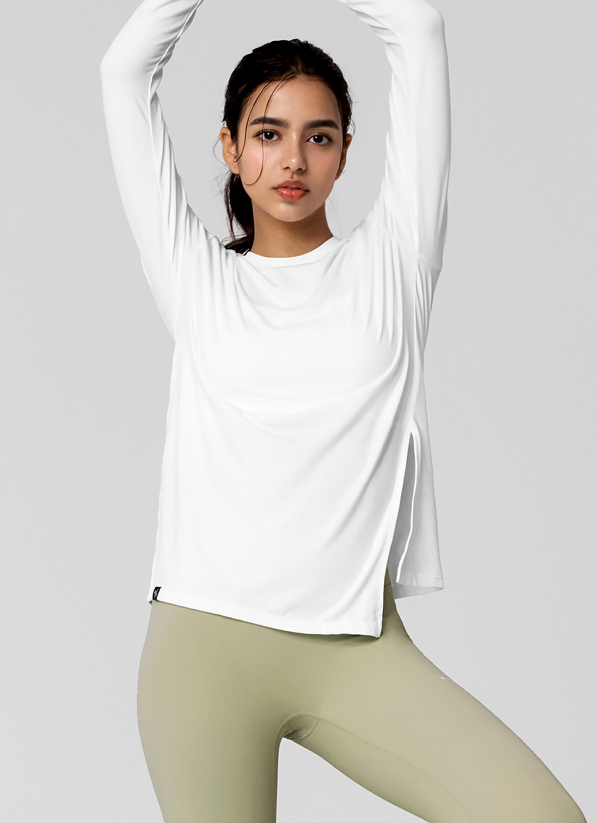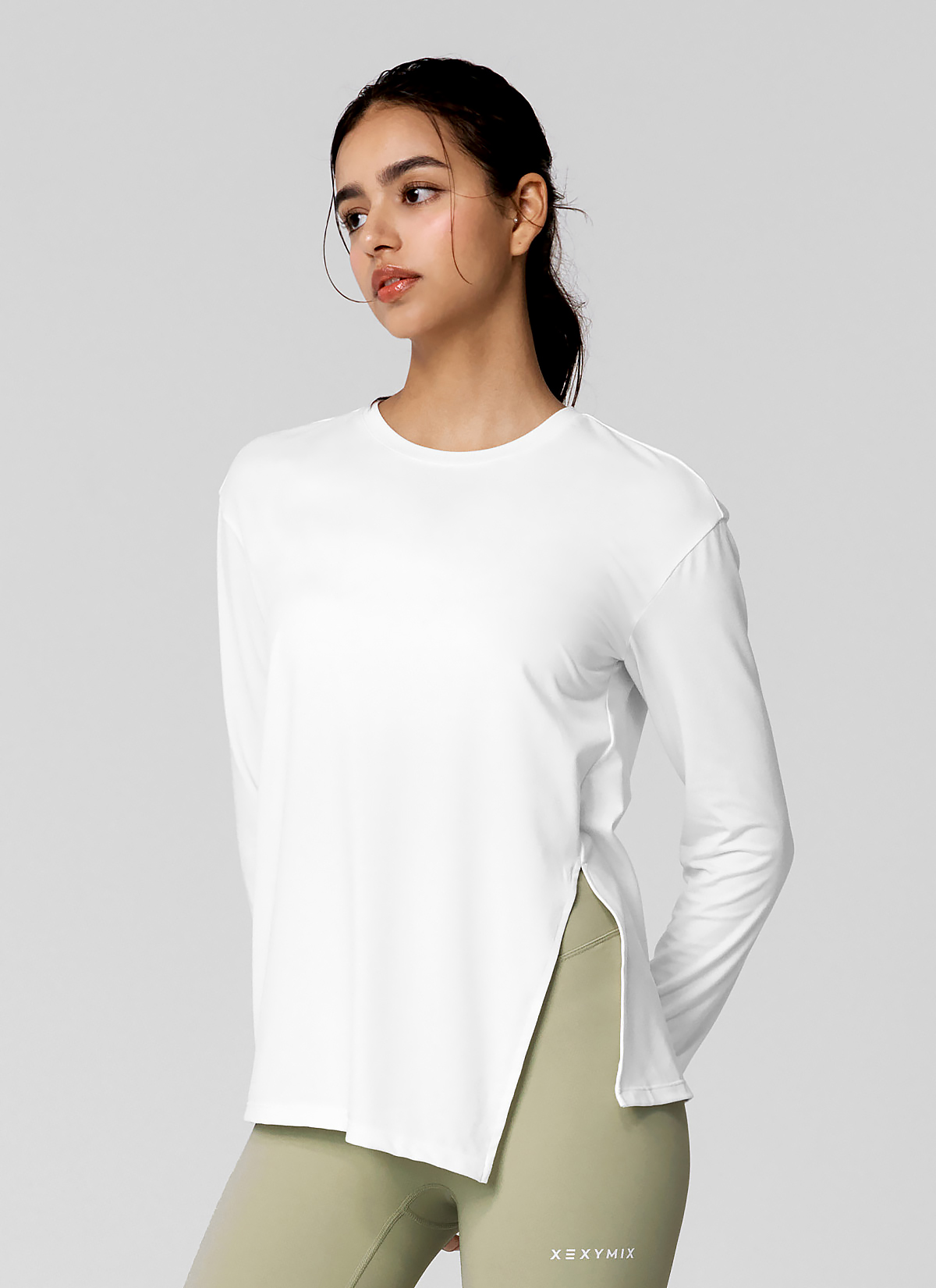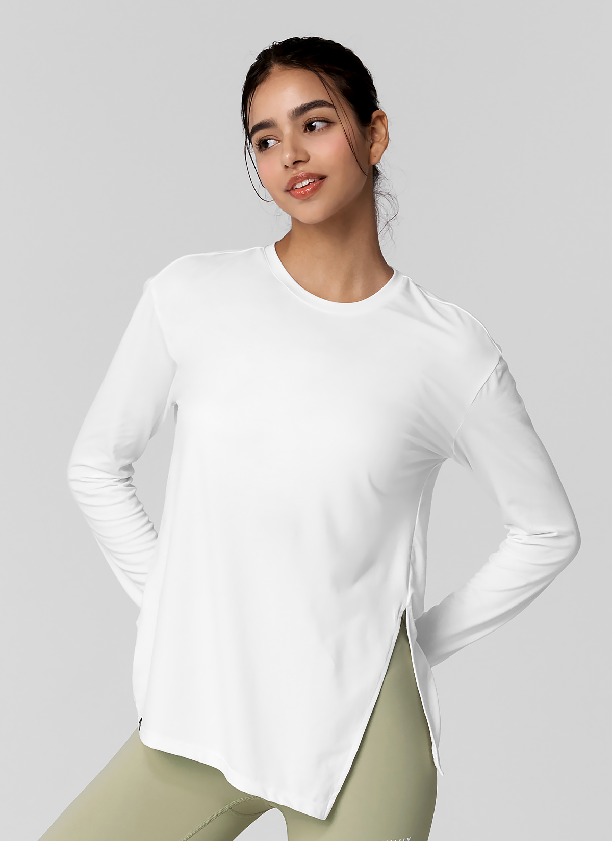 XWFLT01J3 Soft One-Slit Long Sleeve Back Ivory Top