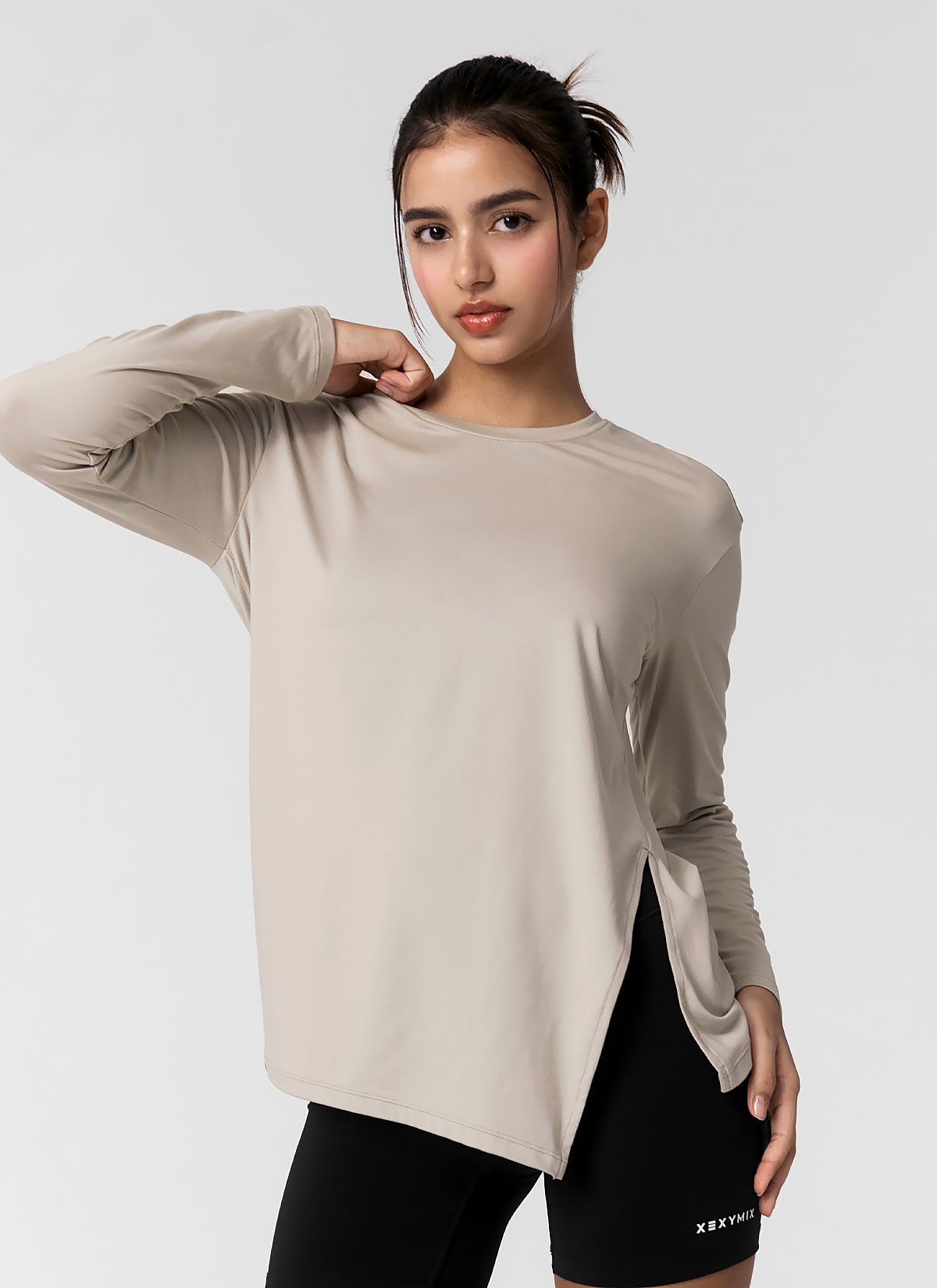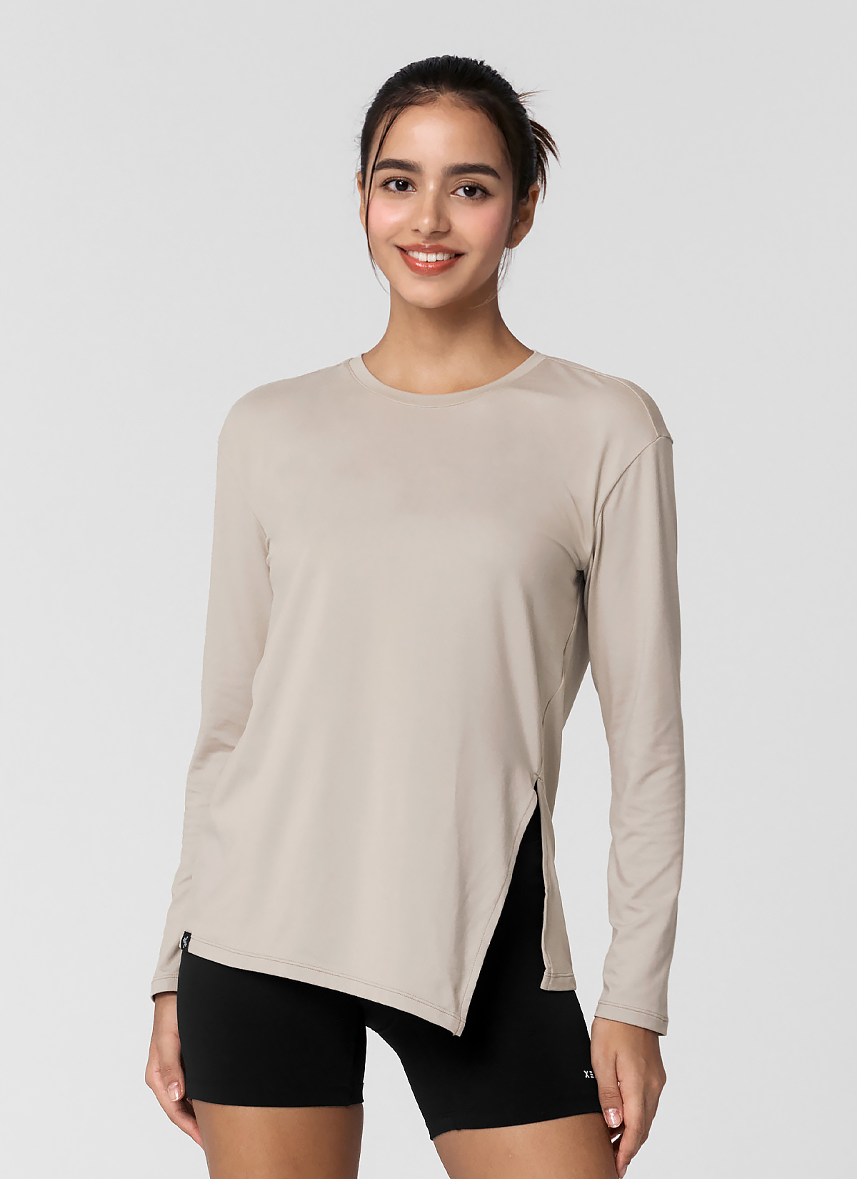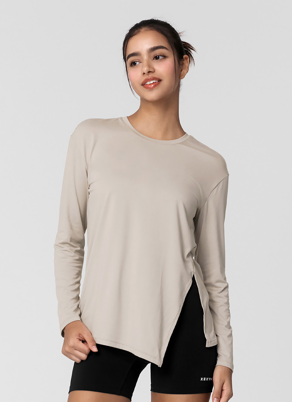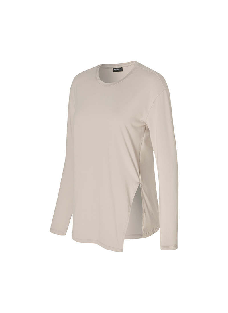 XWFLT01J3 Soft One-Slit Long Sleeve Back Woody Beige Top