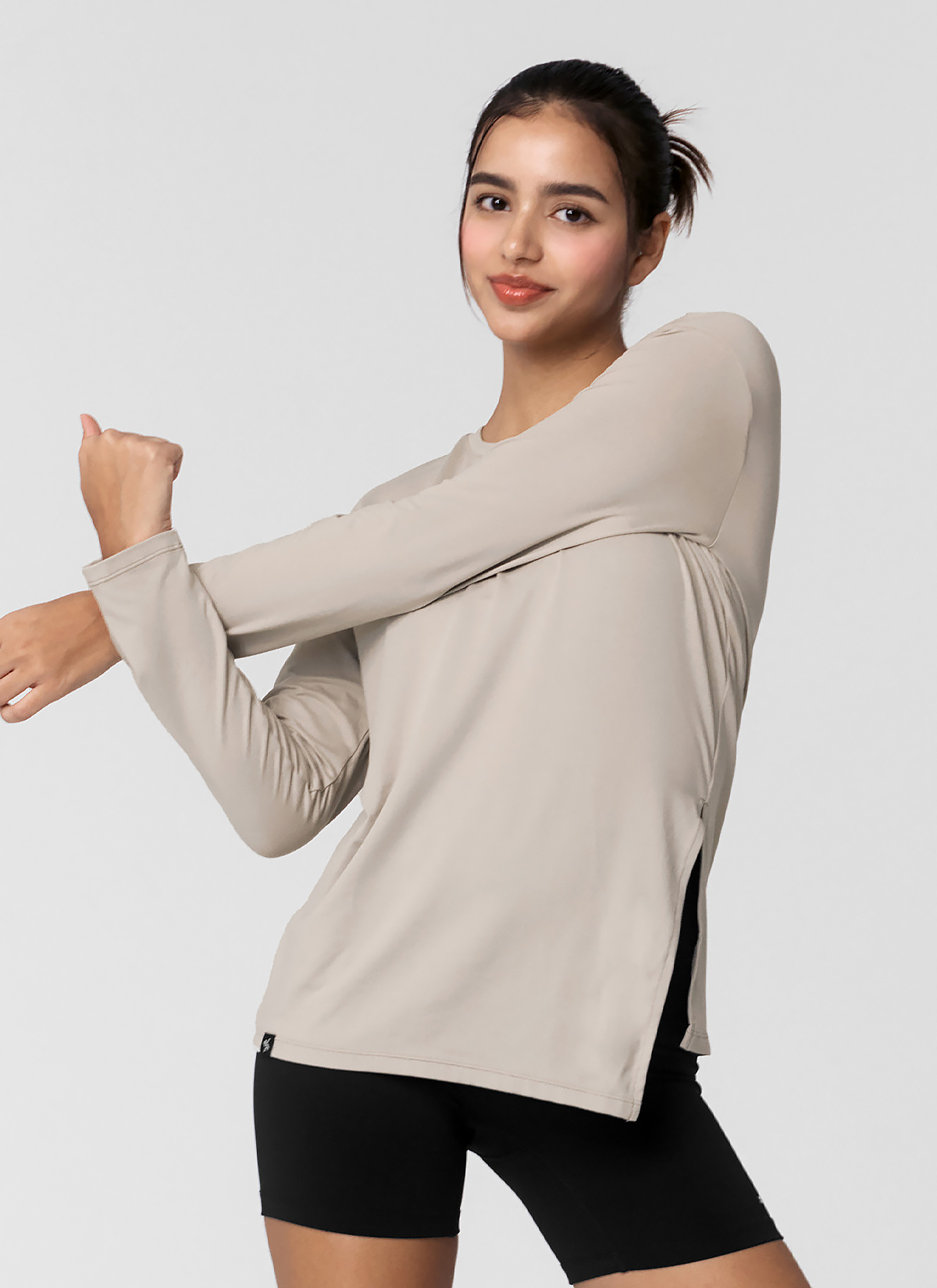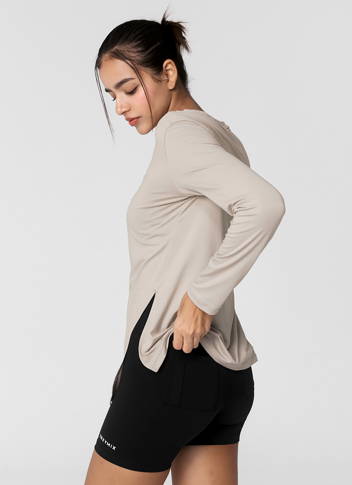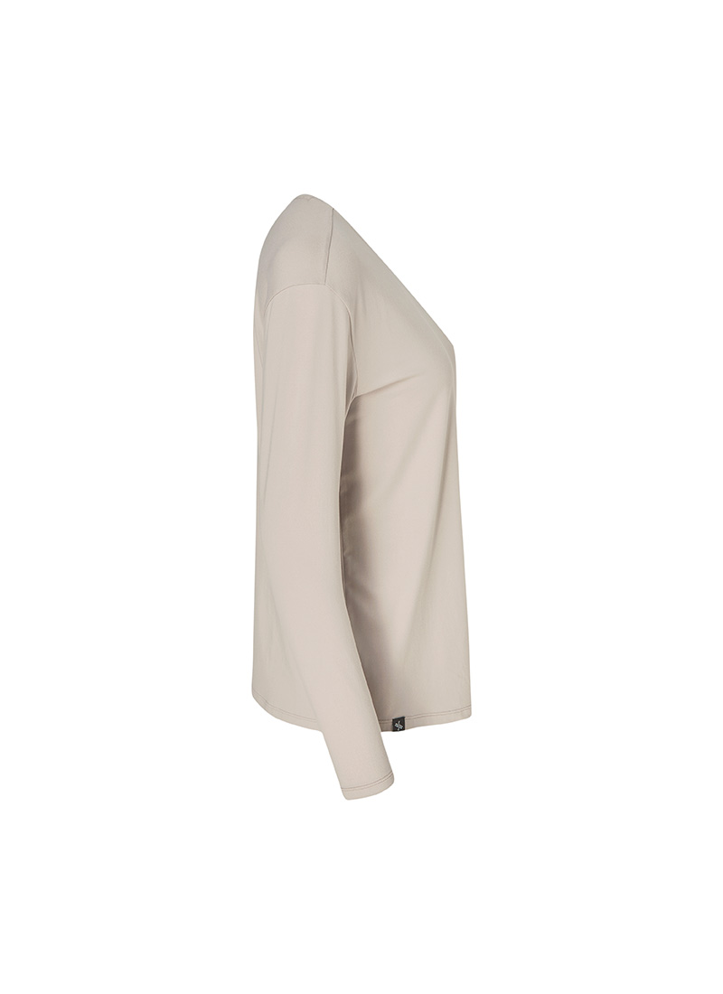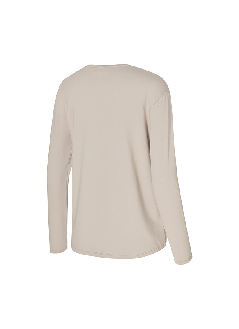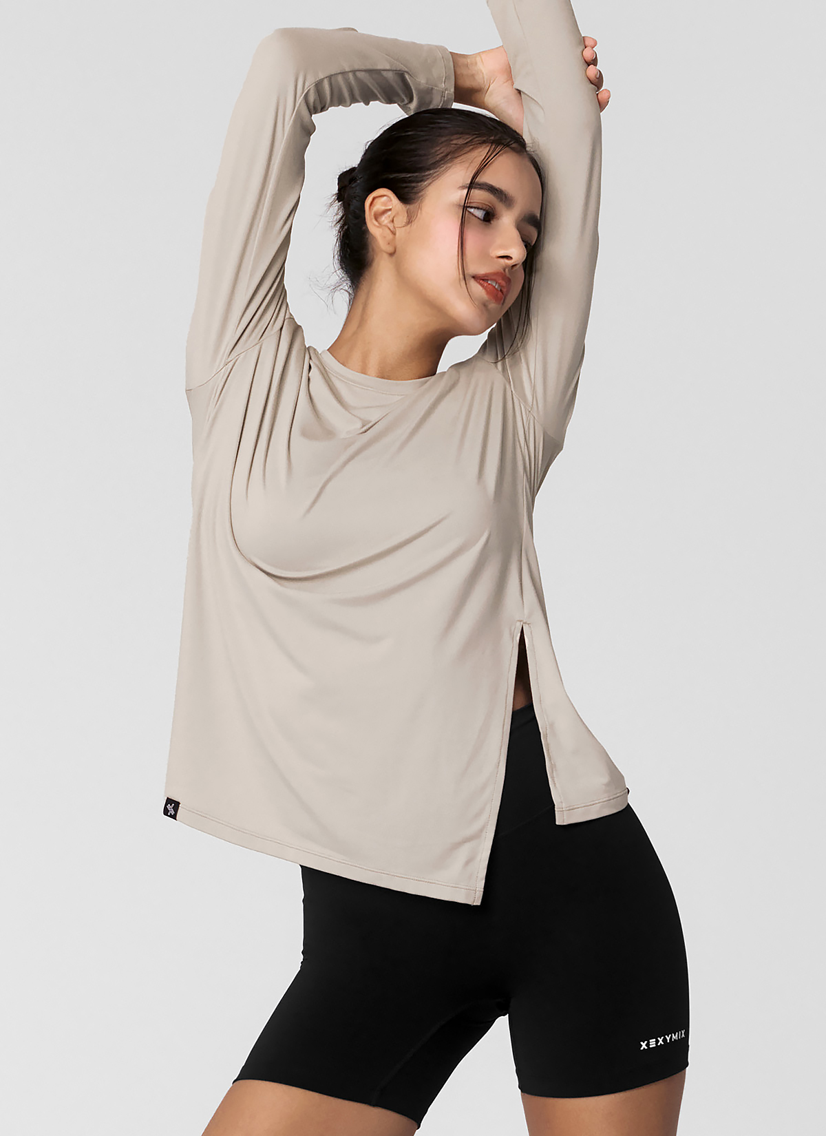 XWFLT01J3 Soft One-Slit Long Sleeve Back Woody Beige Top