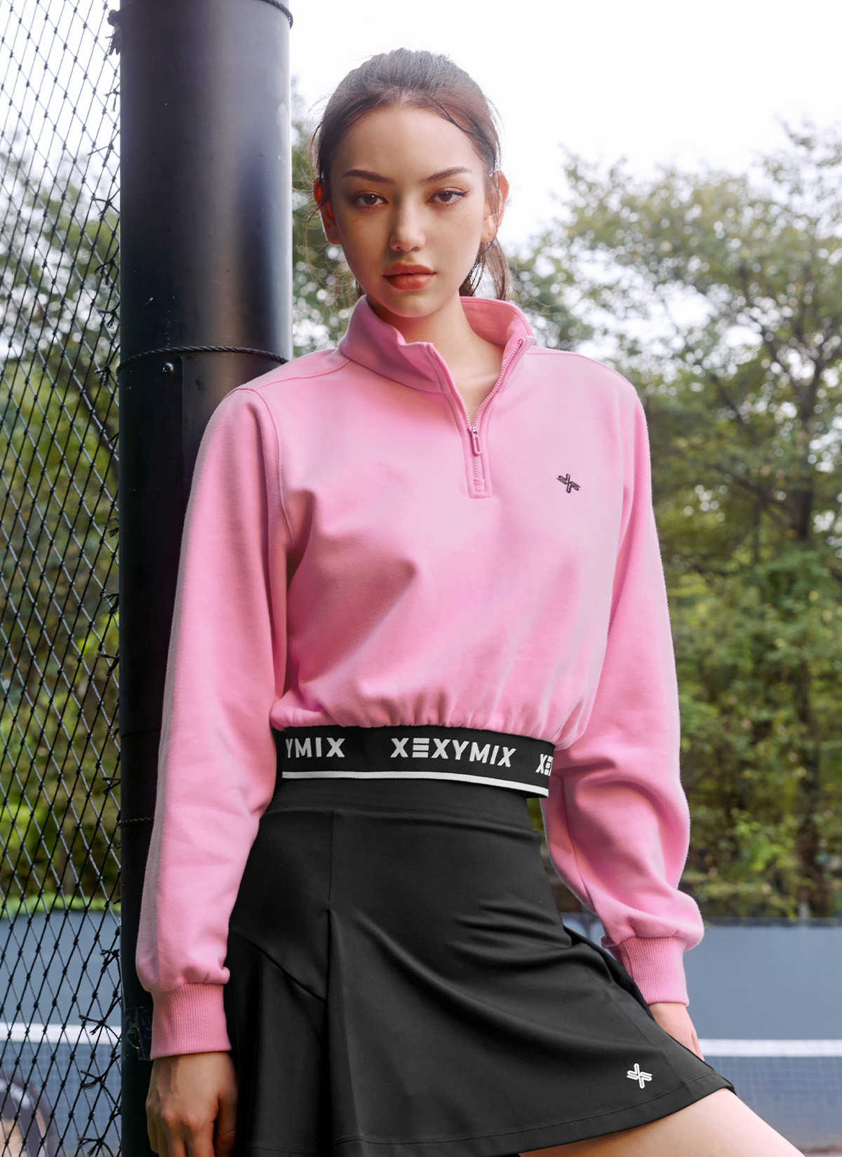 XTFHZ02J3 Logo point warm cropped sweatshirt in Heaven Pink Top