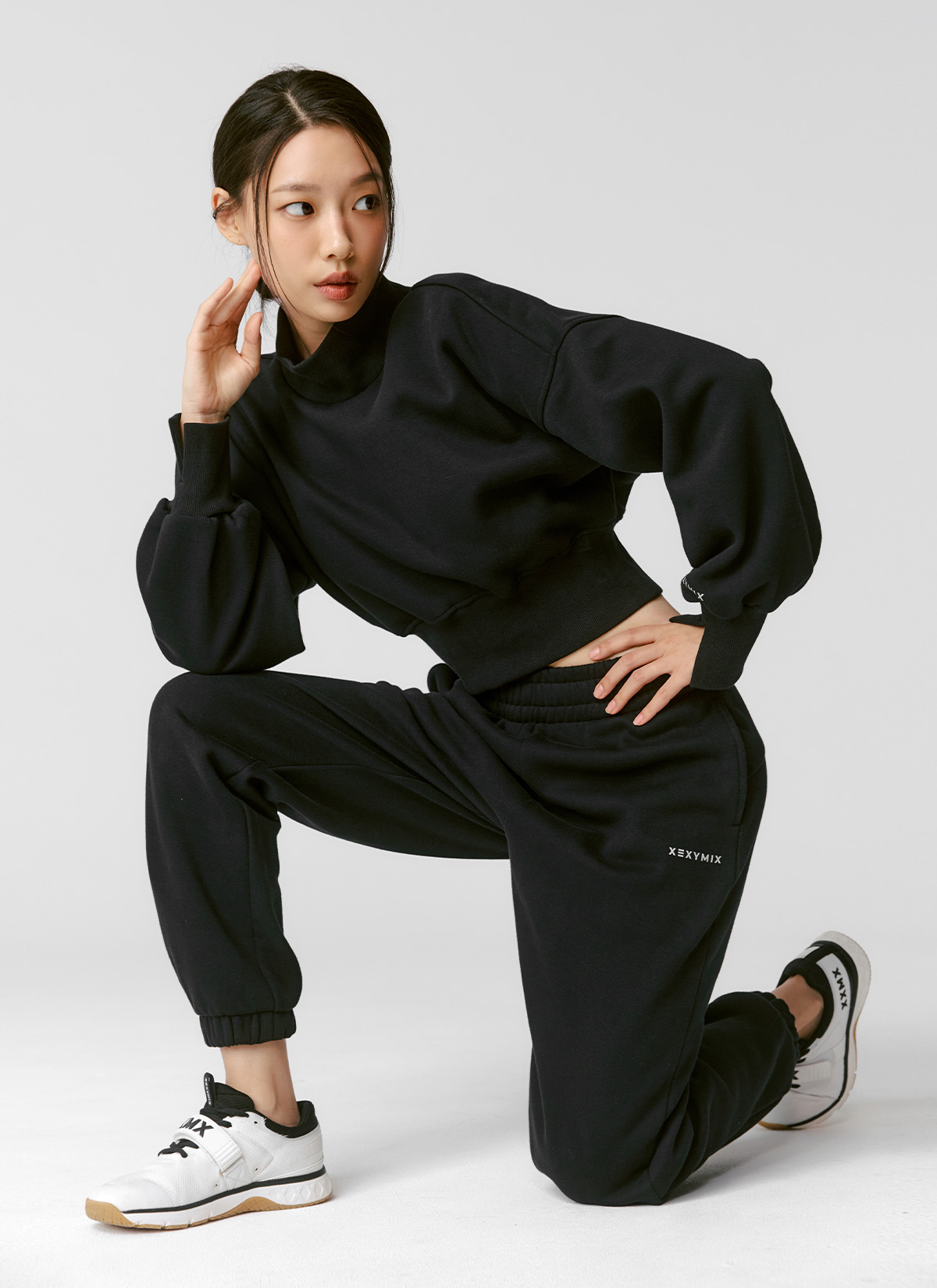 웜 소프트 하이넥 크롭 맨투맨