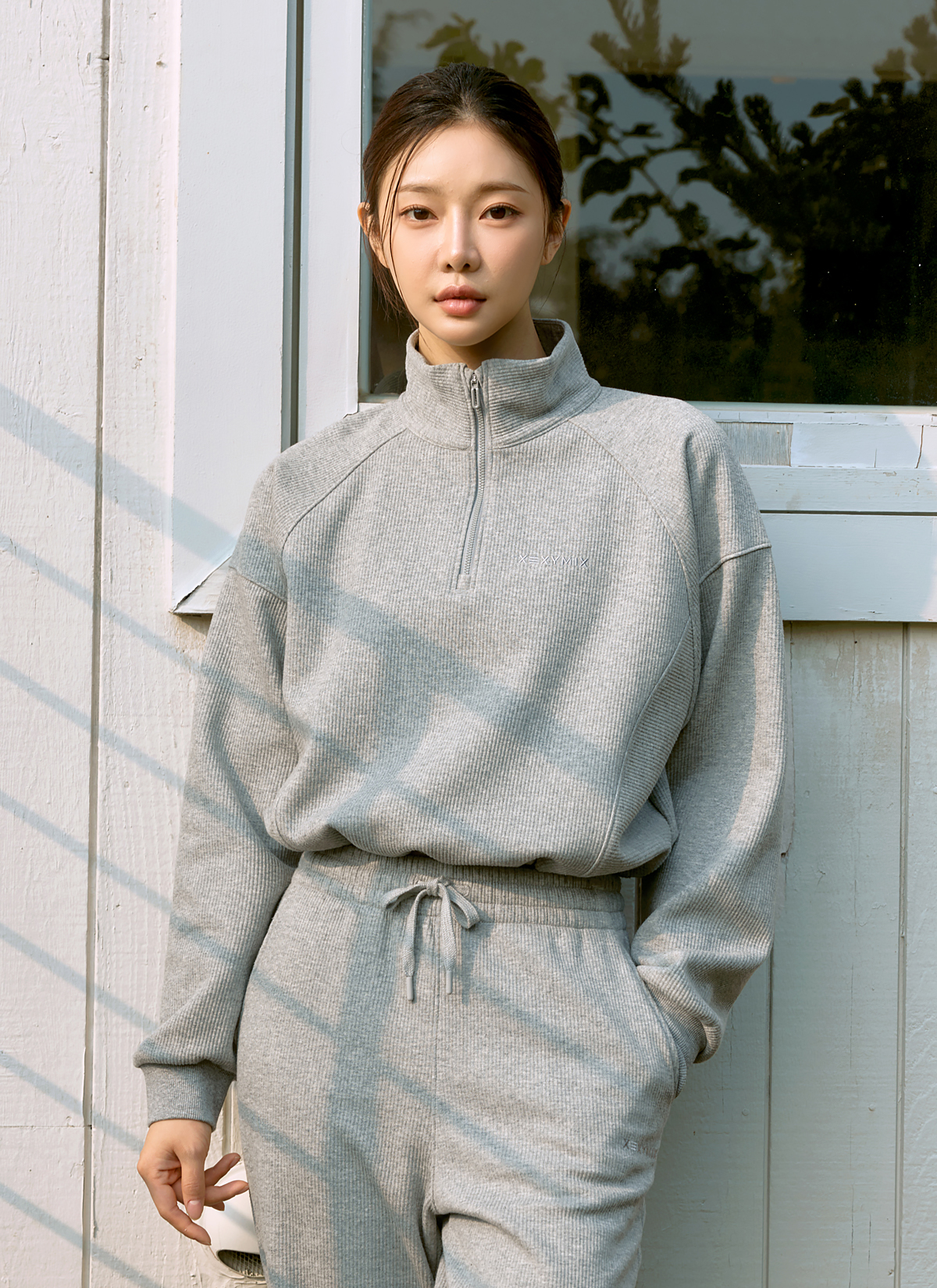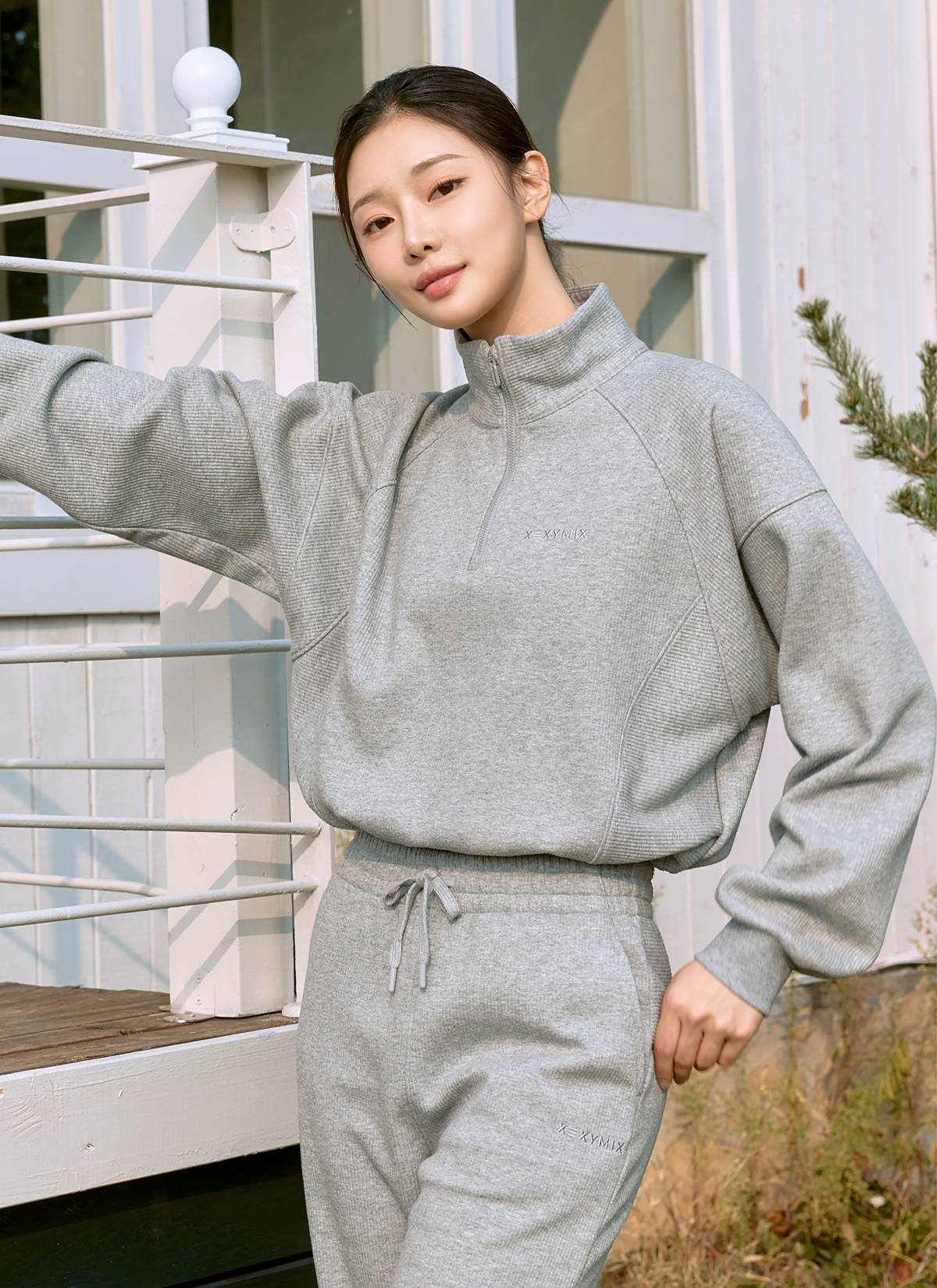 XTFHZ15J3 Peach Lip Highneck Half Zip-up Anorak Melange Gray top