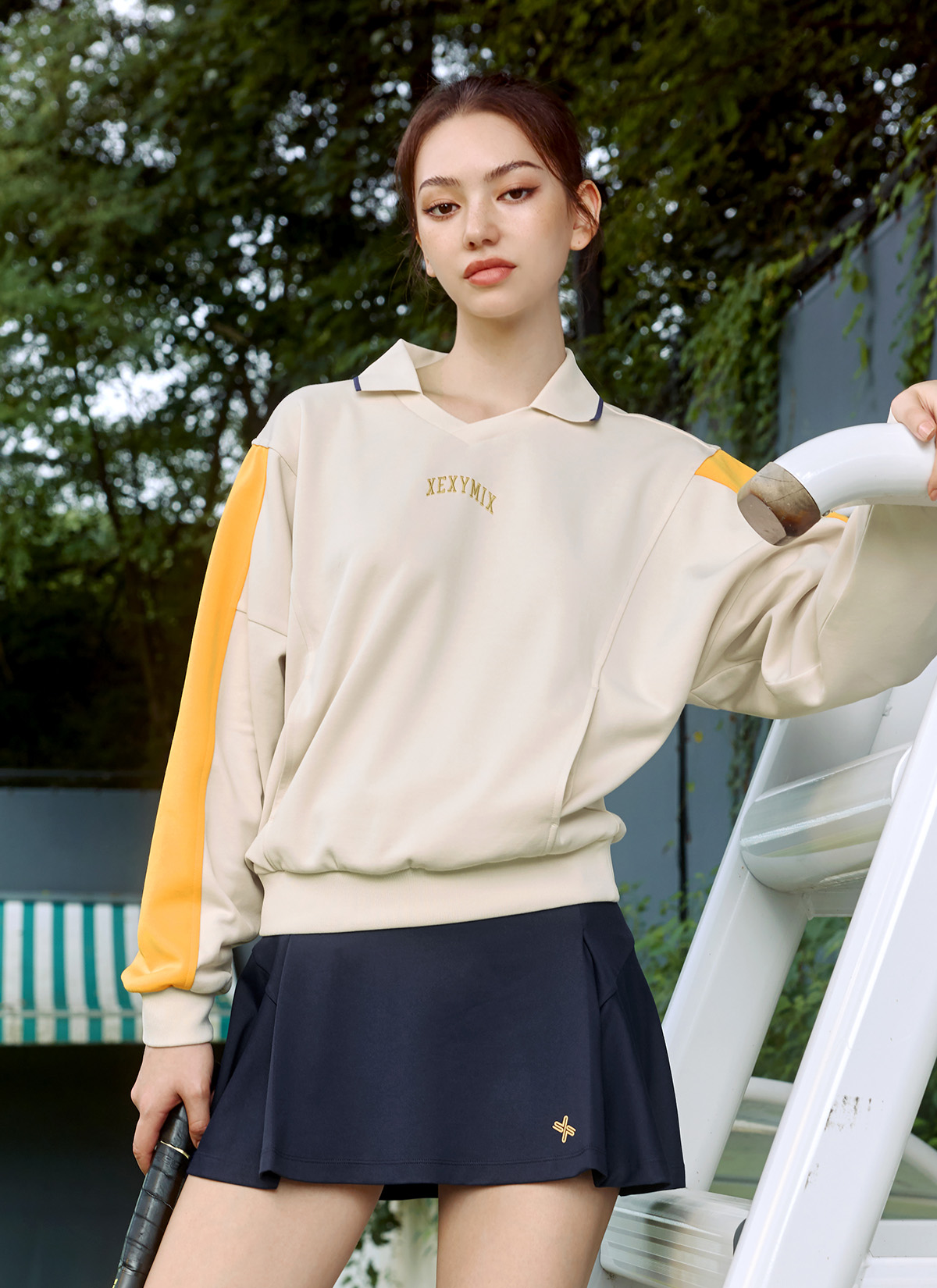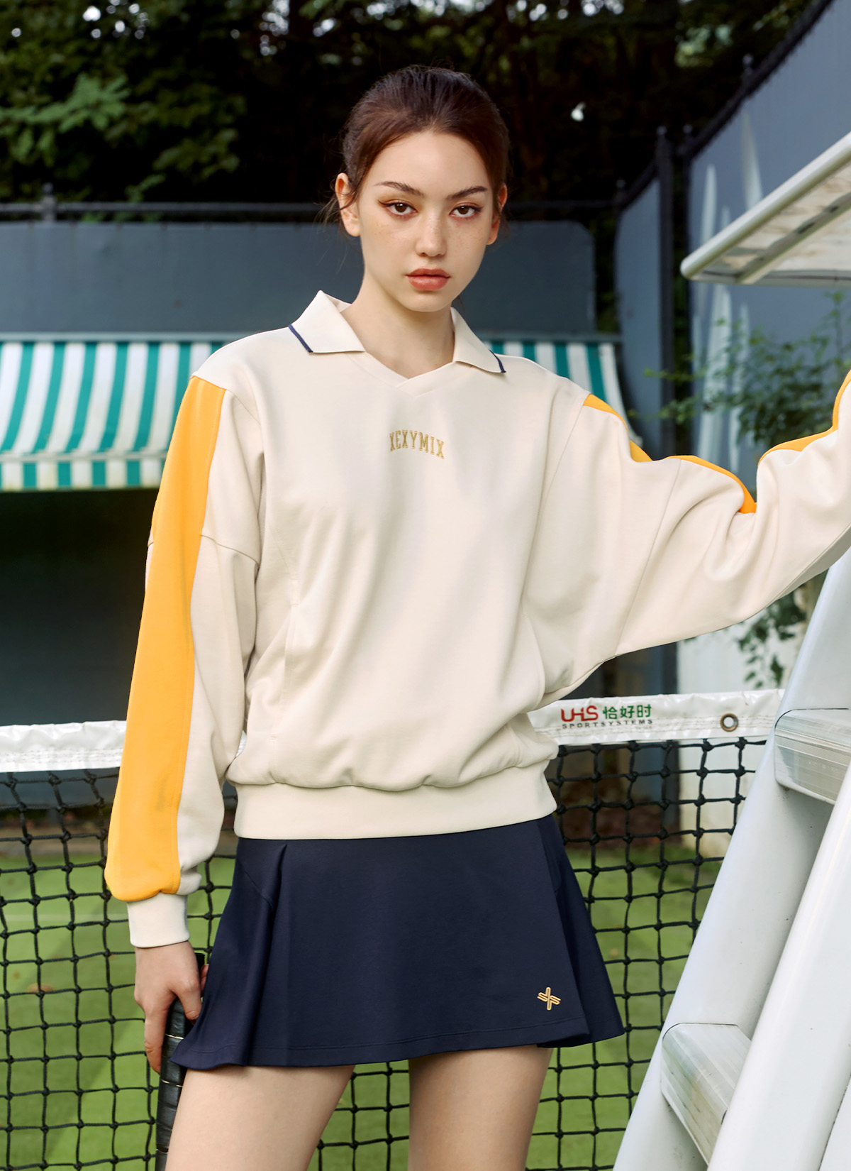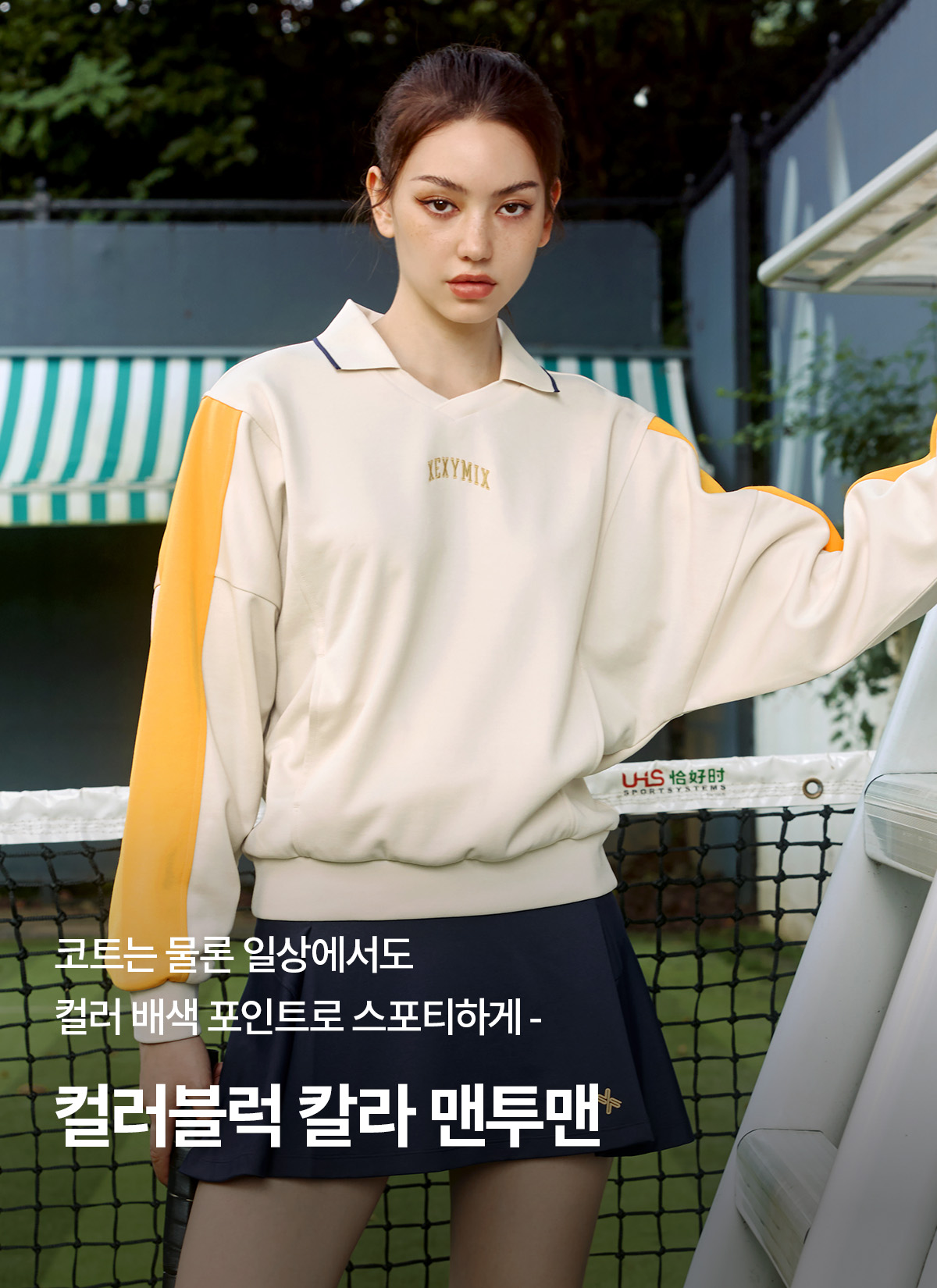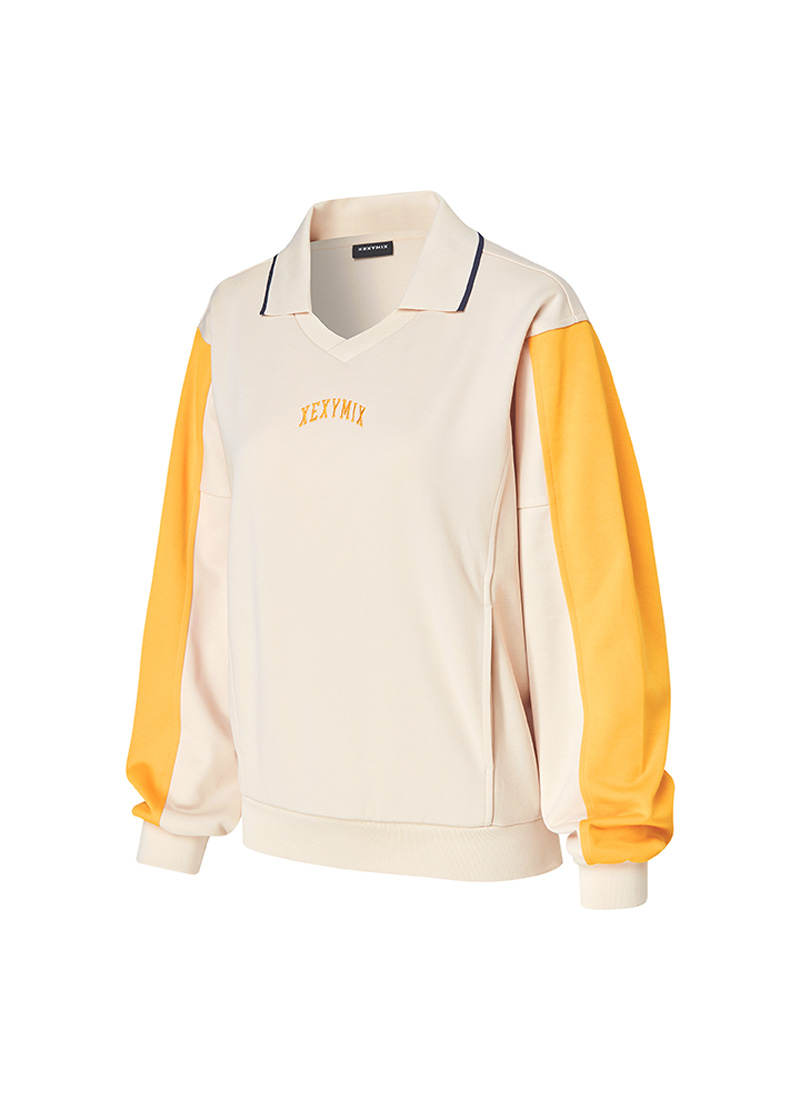 XTFMT04J3 Colorblock Color Man to Man Milk Tea Beige top