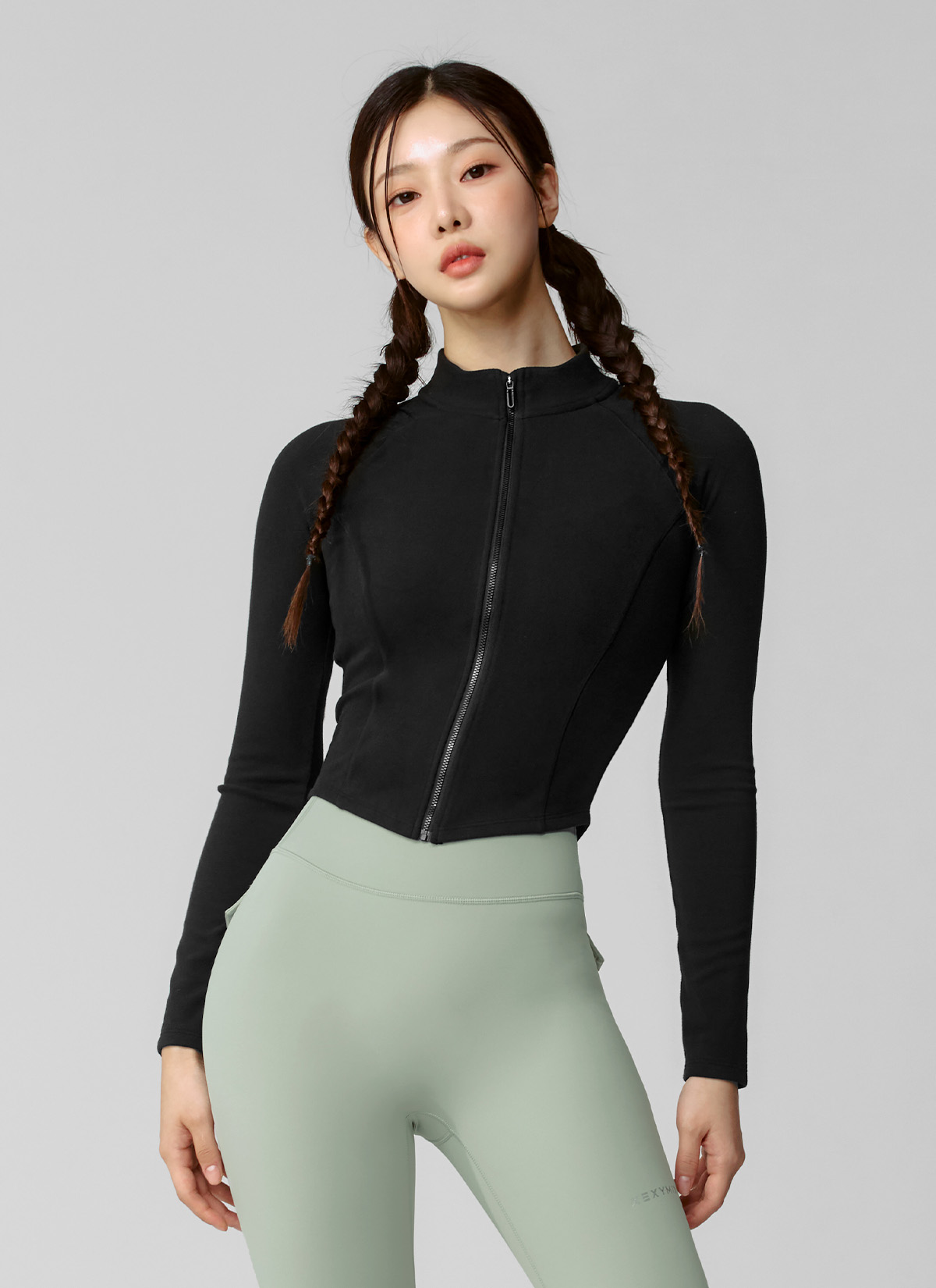 XTFGJ05J3 Active Crop Slim Fit Zip-Up Jacket Black Top