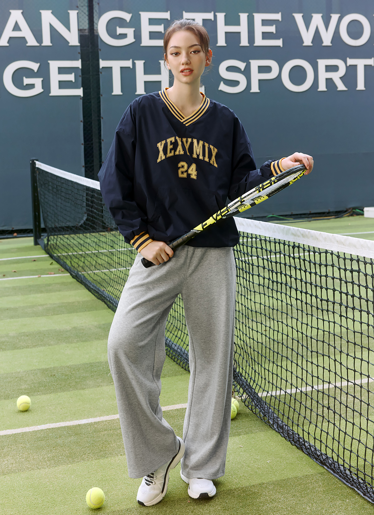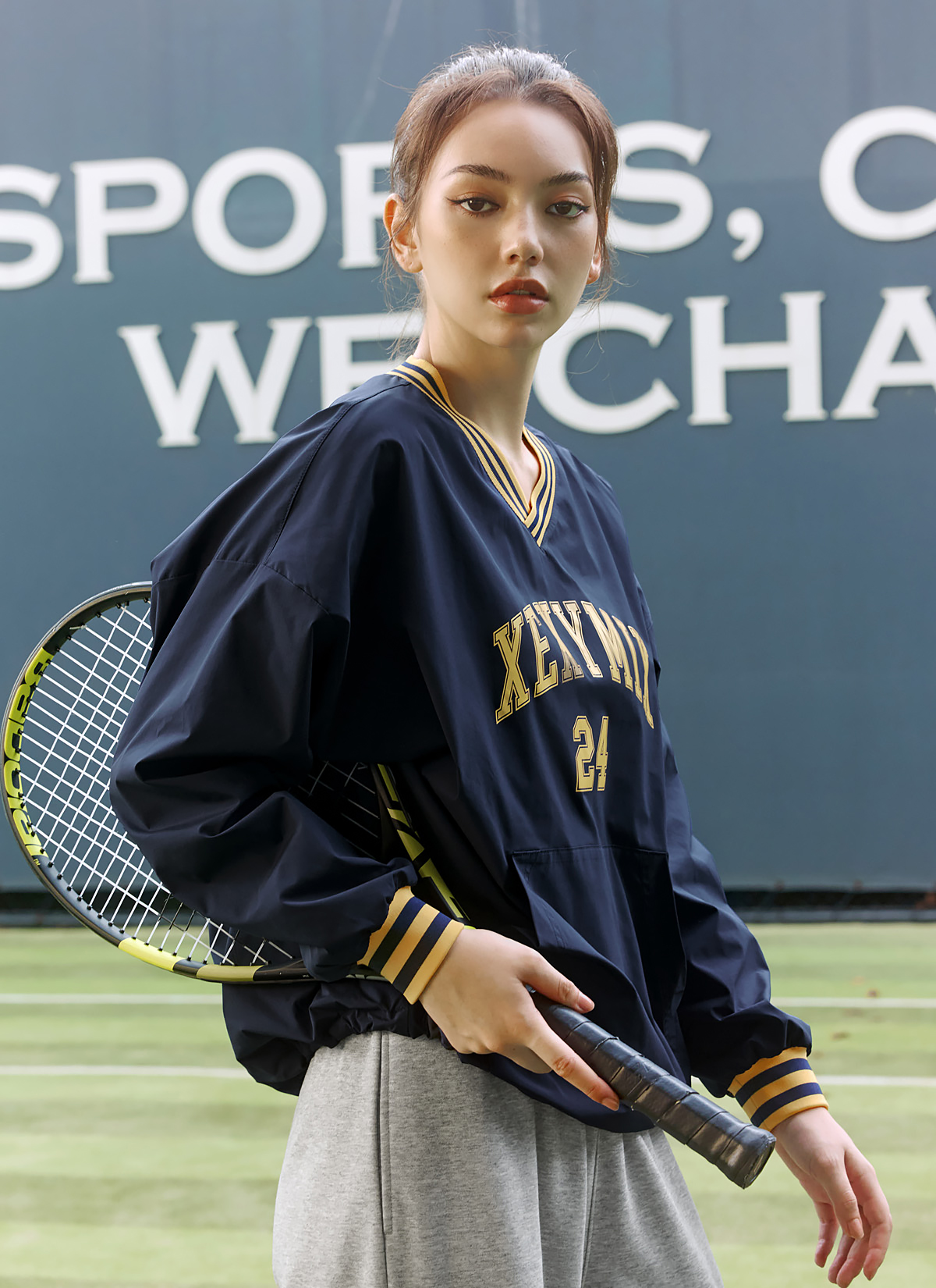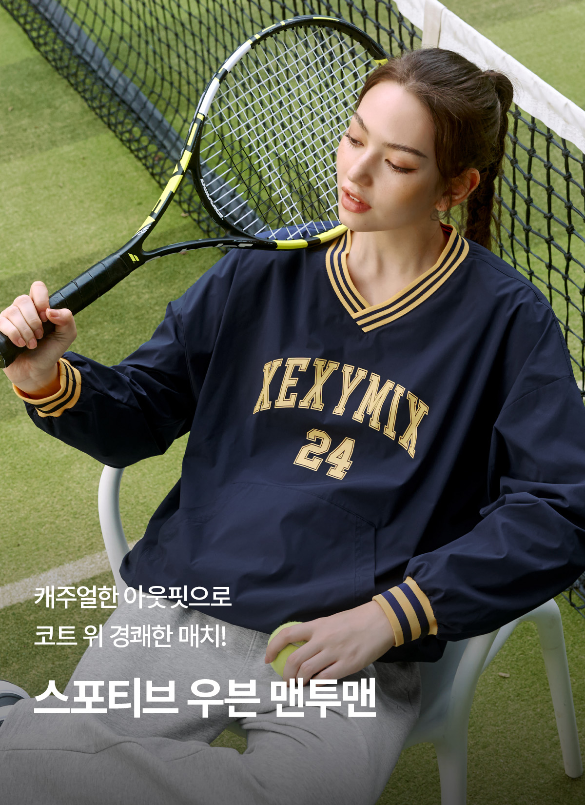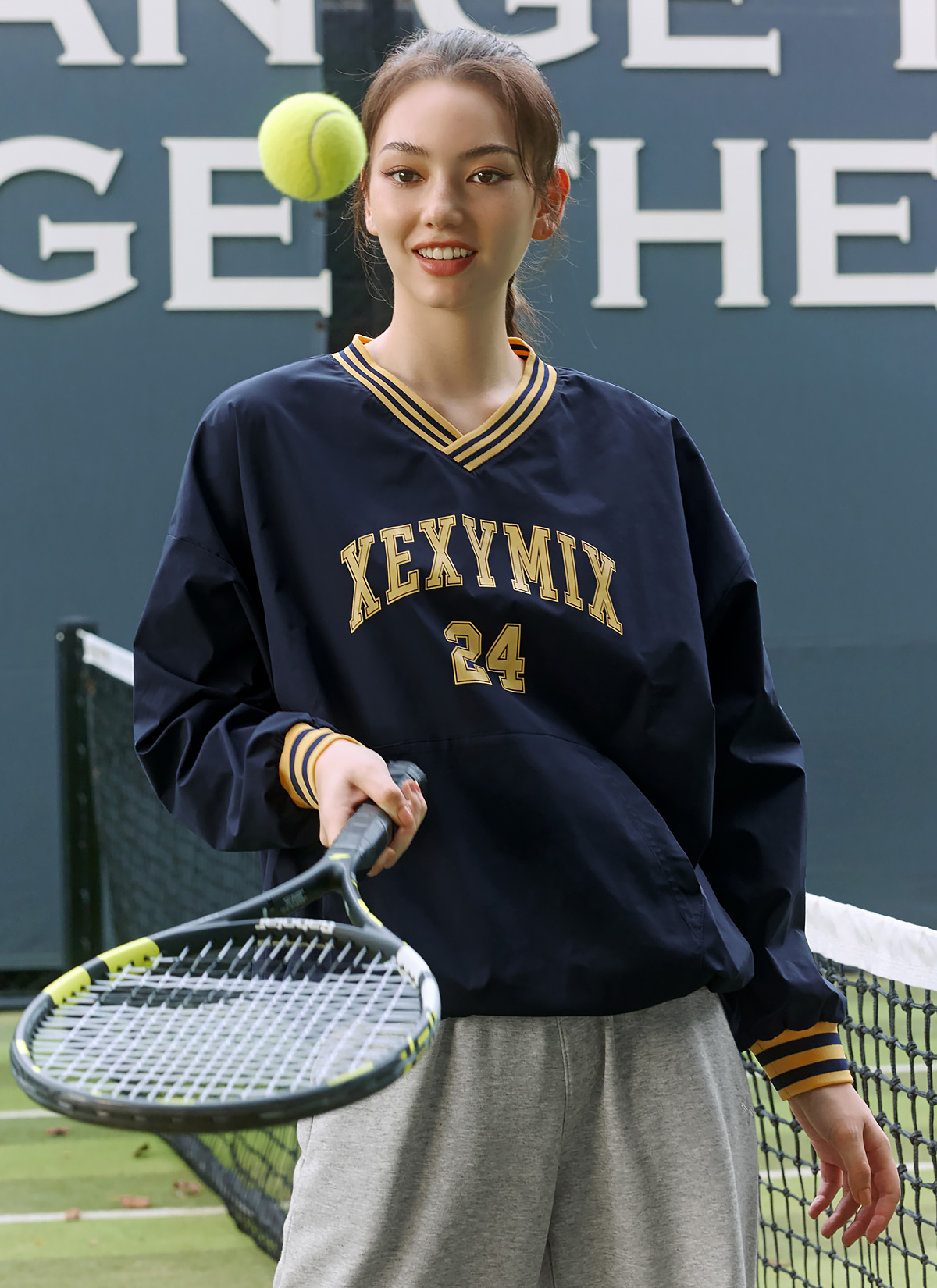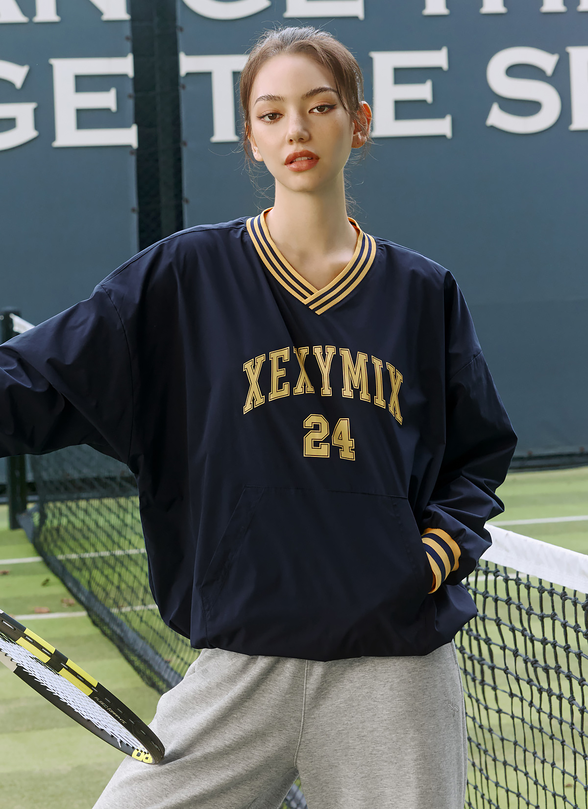 XTFMT03J3 Sportive Woven Man to Man Stay Navy top