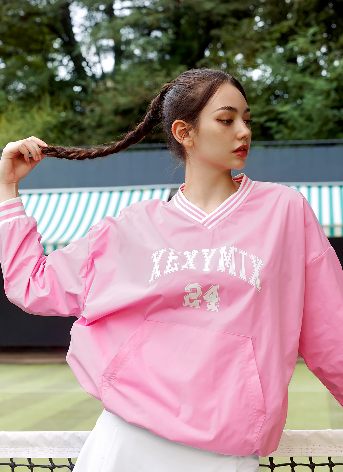 XTFMT03J3 Sportive Woven Man to Man Heaven Pink top