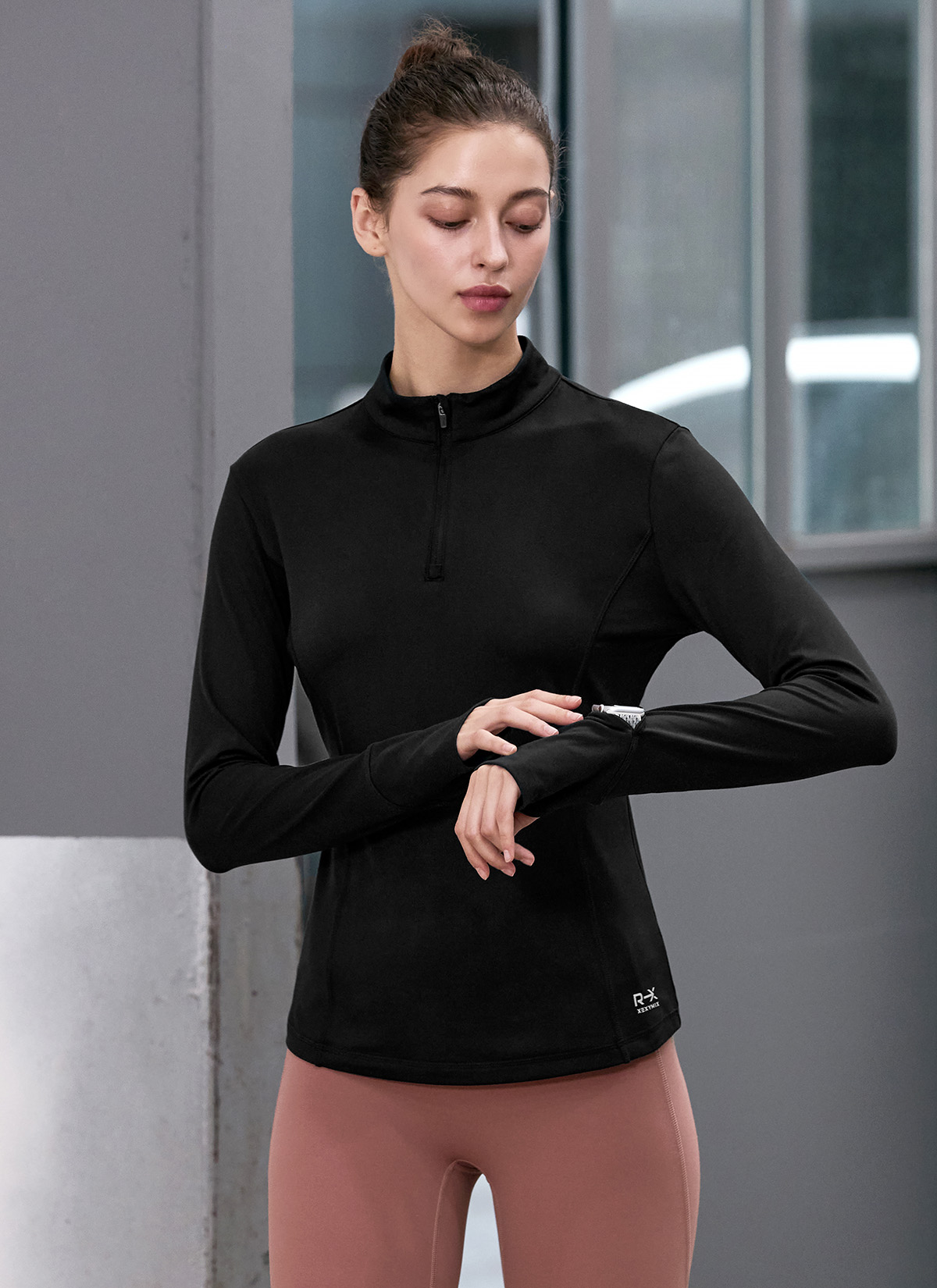XWFHZ02J3 Comfortable Fingerhole Half Zip UP TOP
