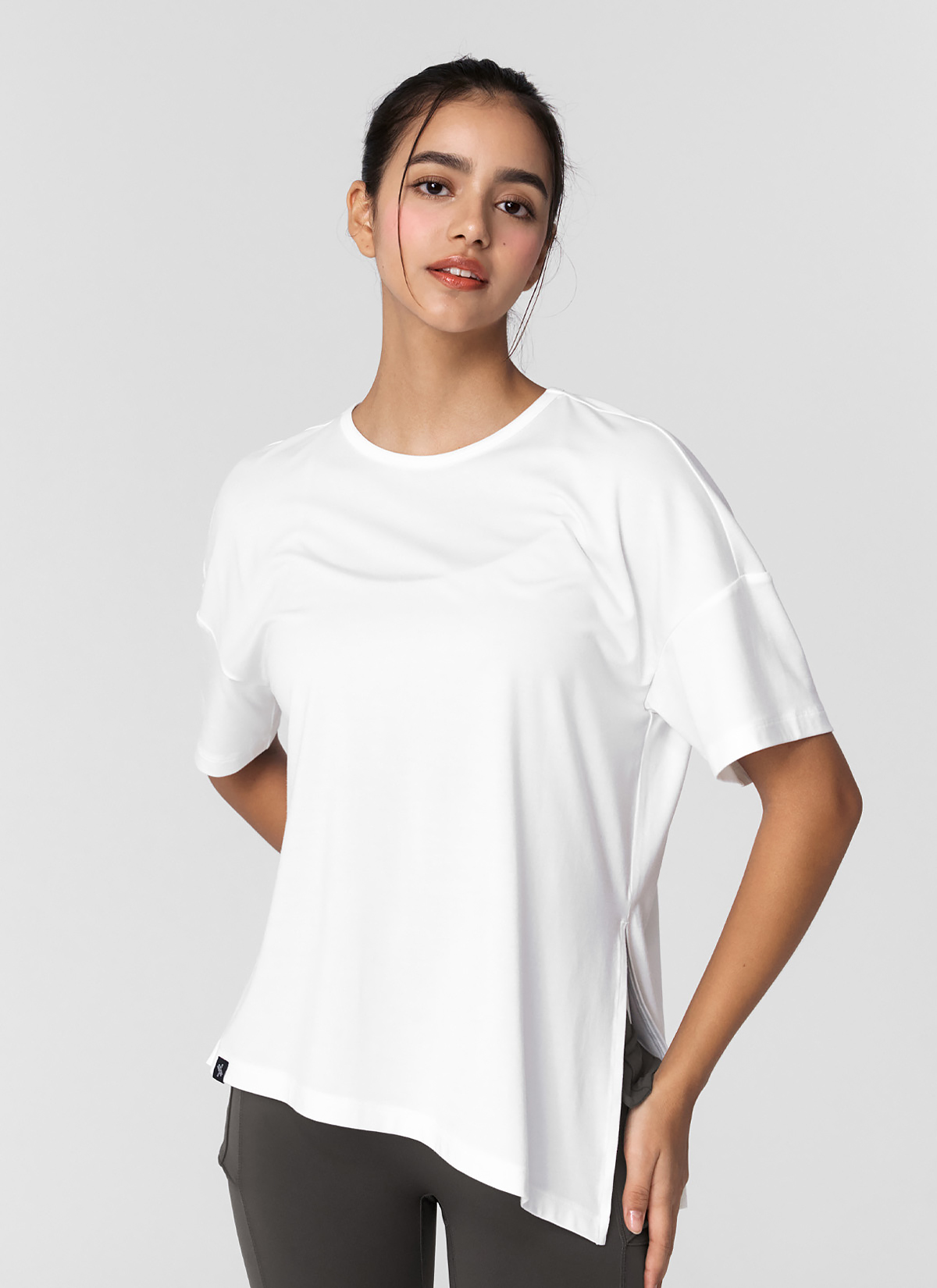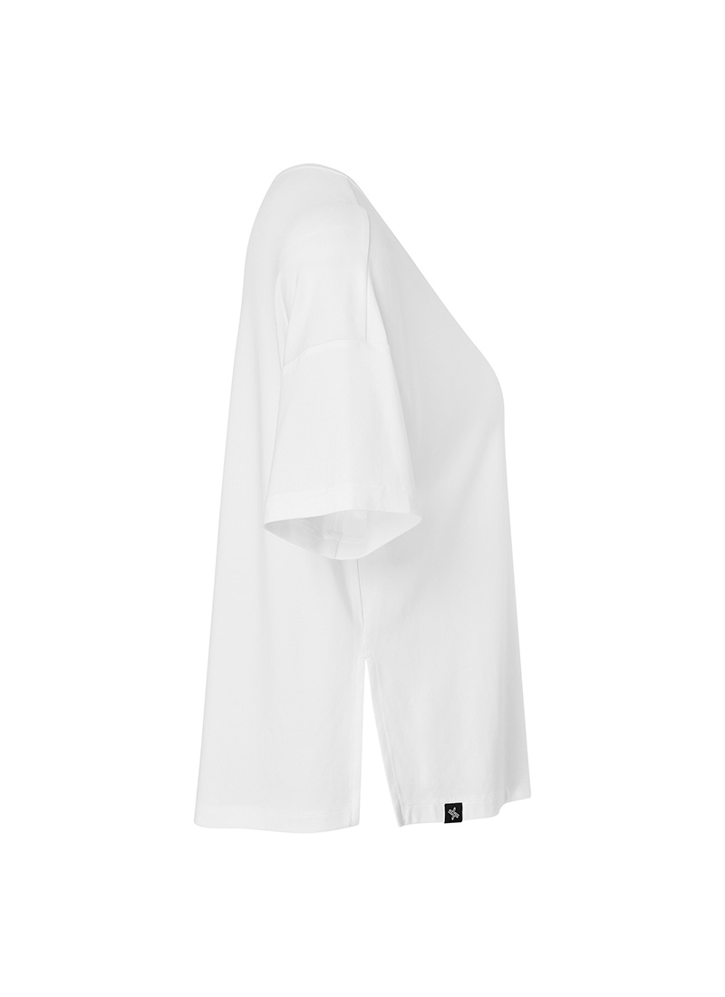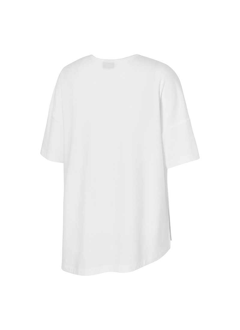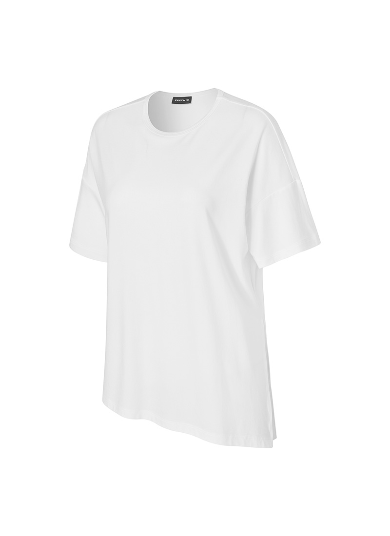 XWFST02J3 Smooth Unbalanced Slit Short Sleeve Ivory Top