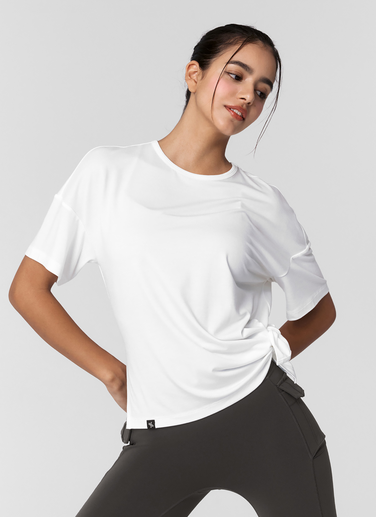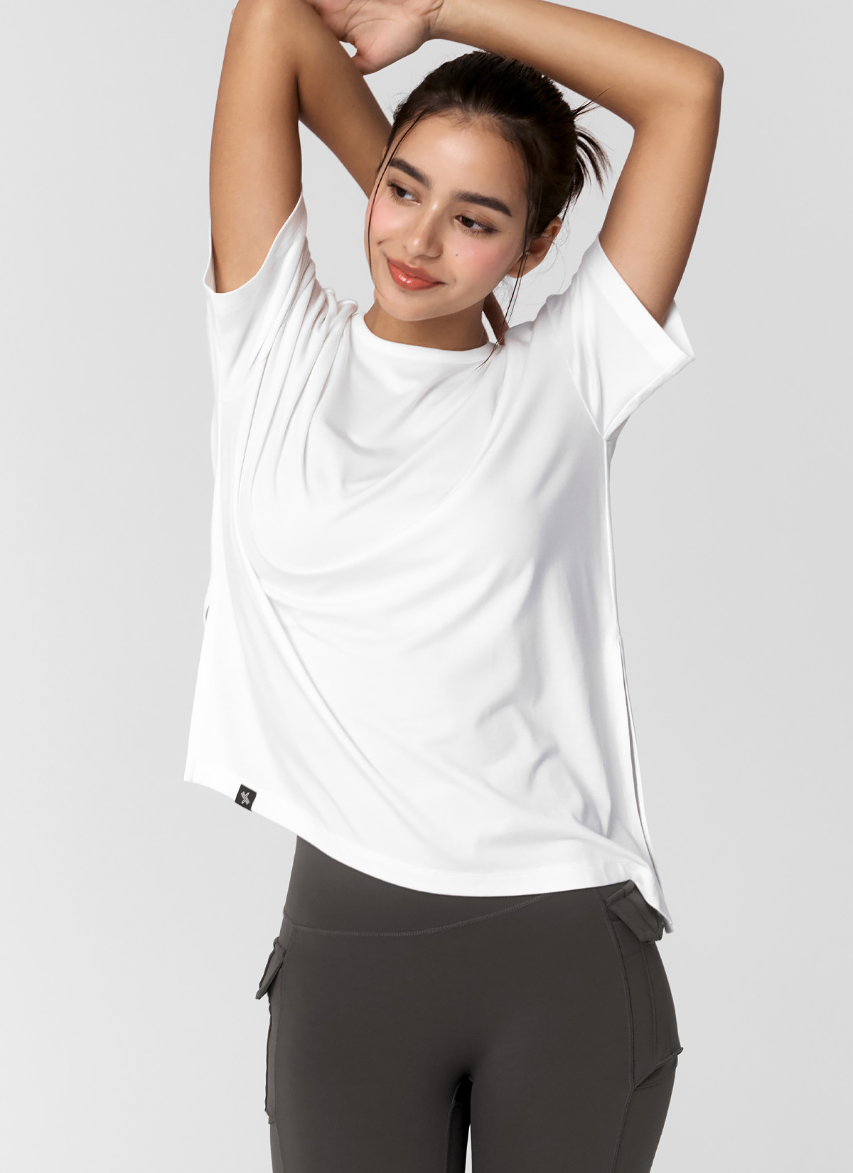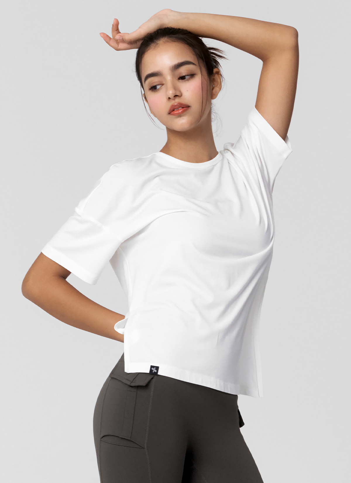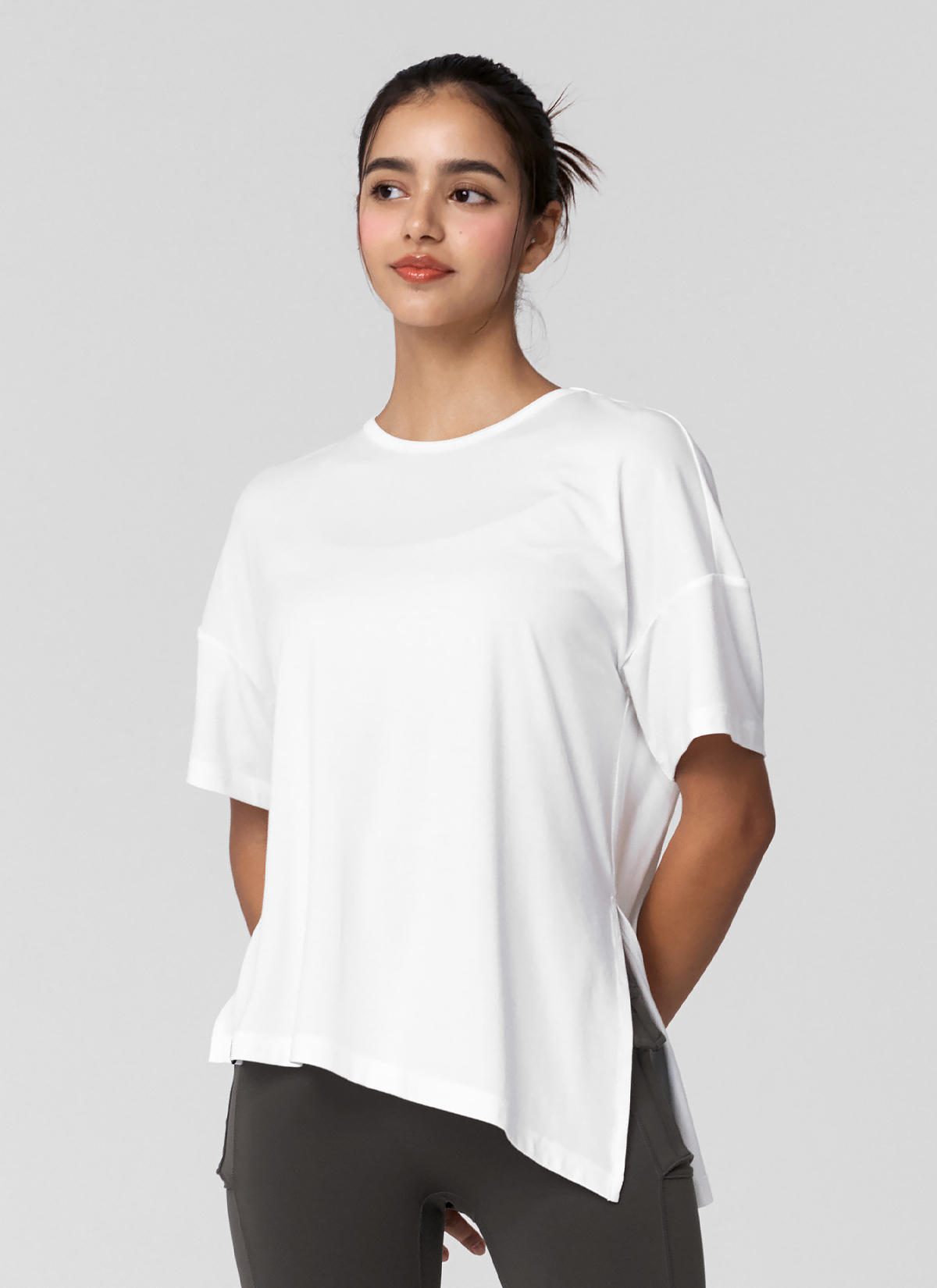 XWFST02J3 Smooth Unbalanced Slit Short Sleeve Ivory Top