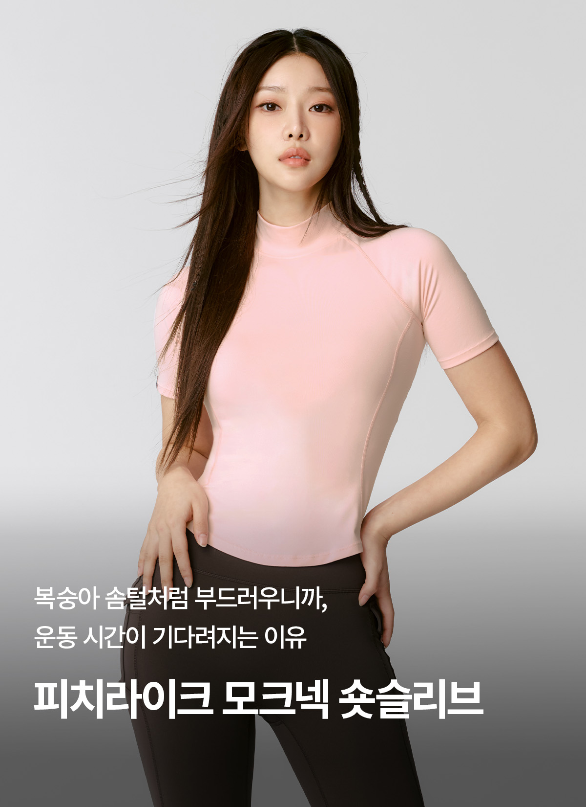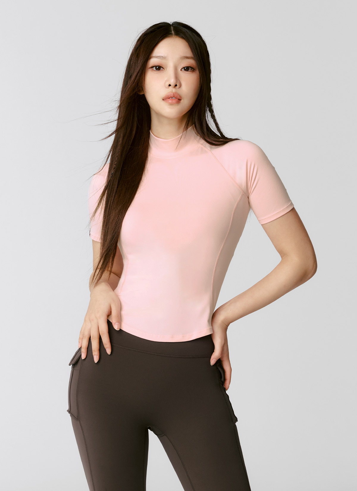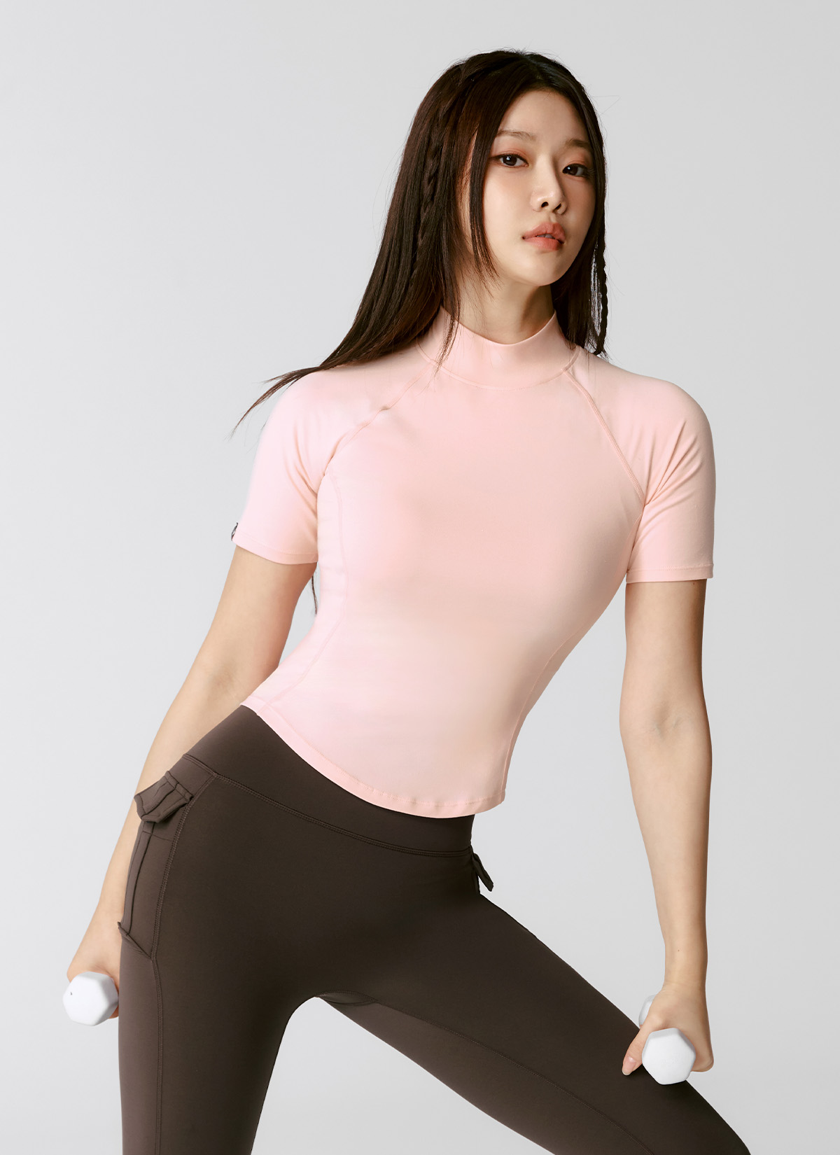 XWFST04J3 Peach-Like Mock Neck Short Sleeve Milky Pink Top