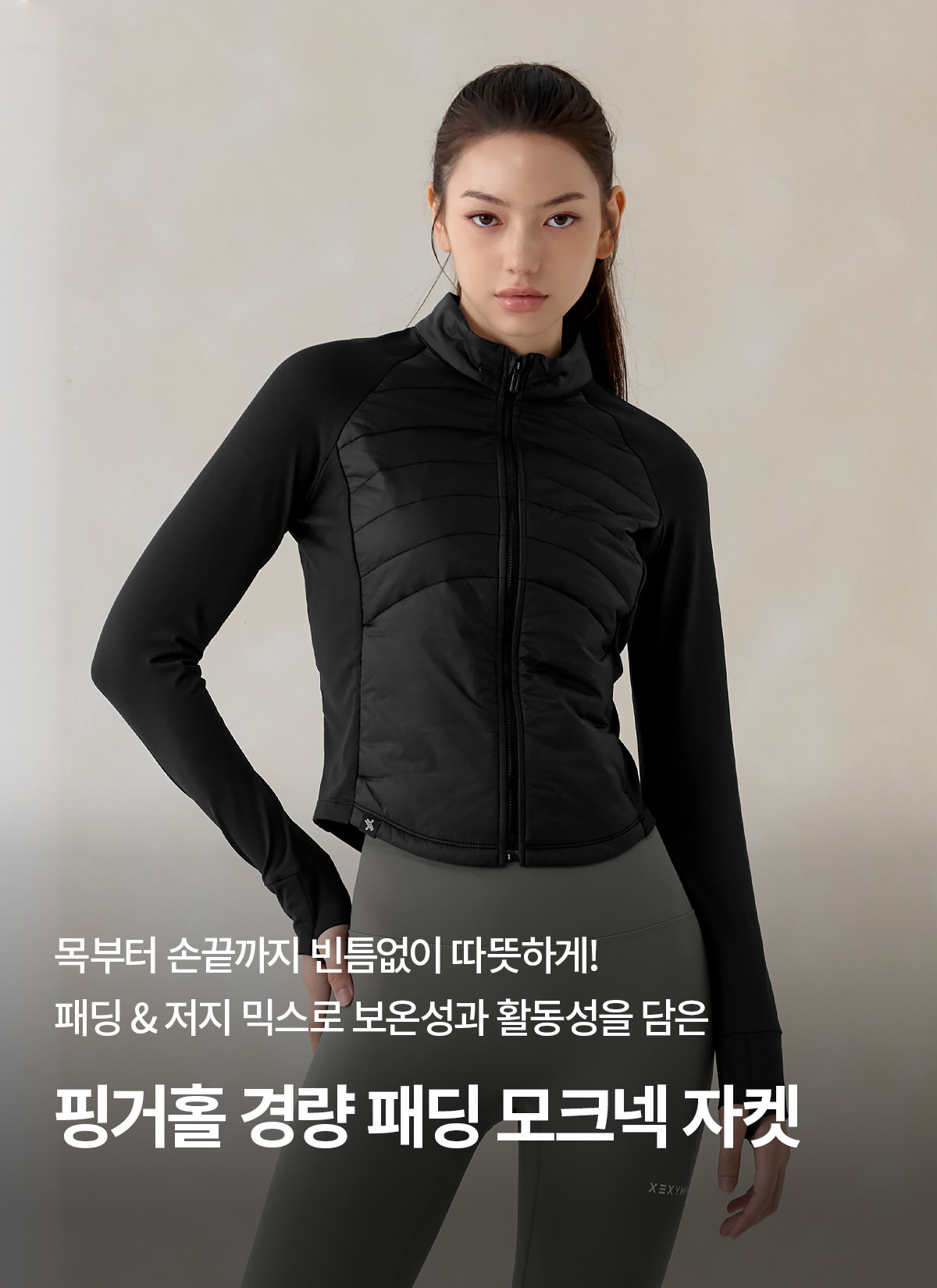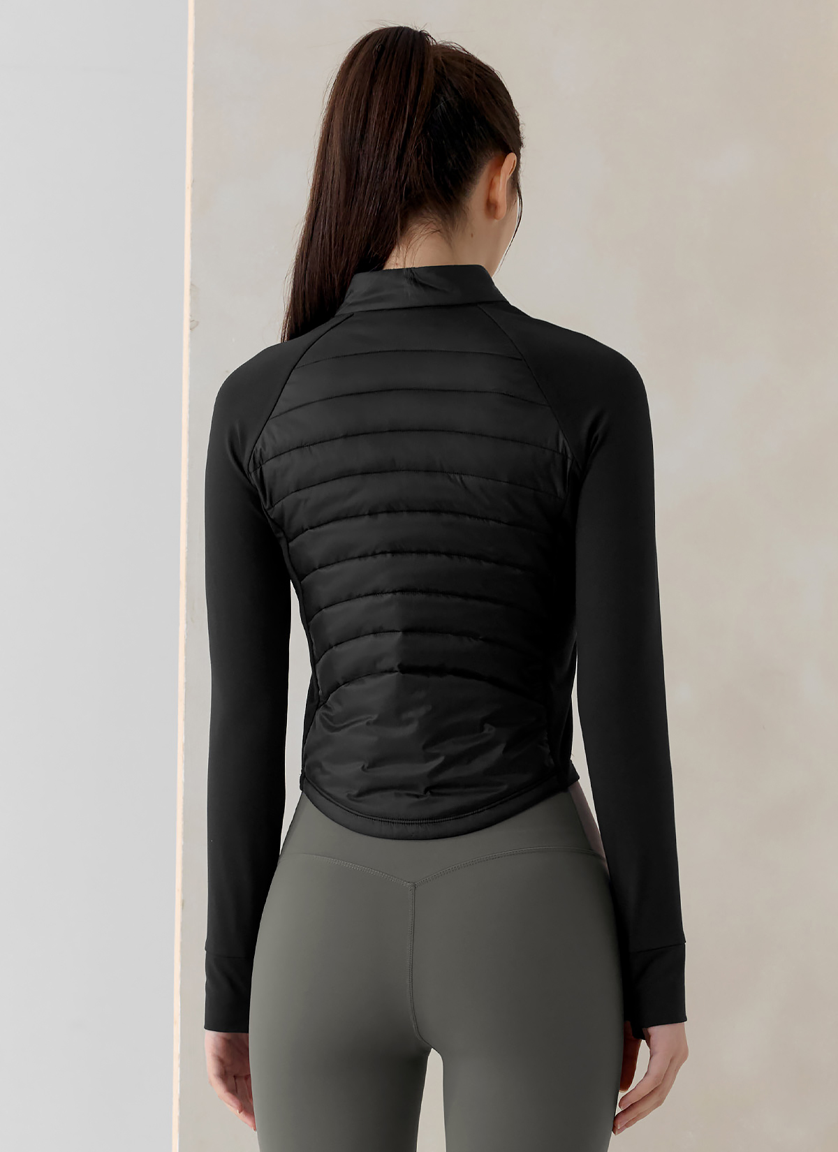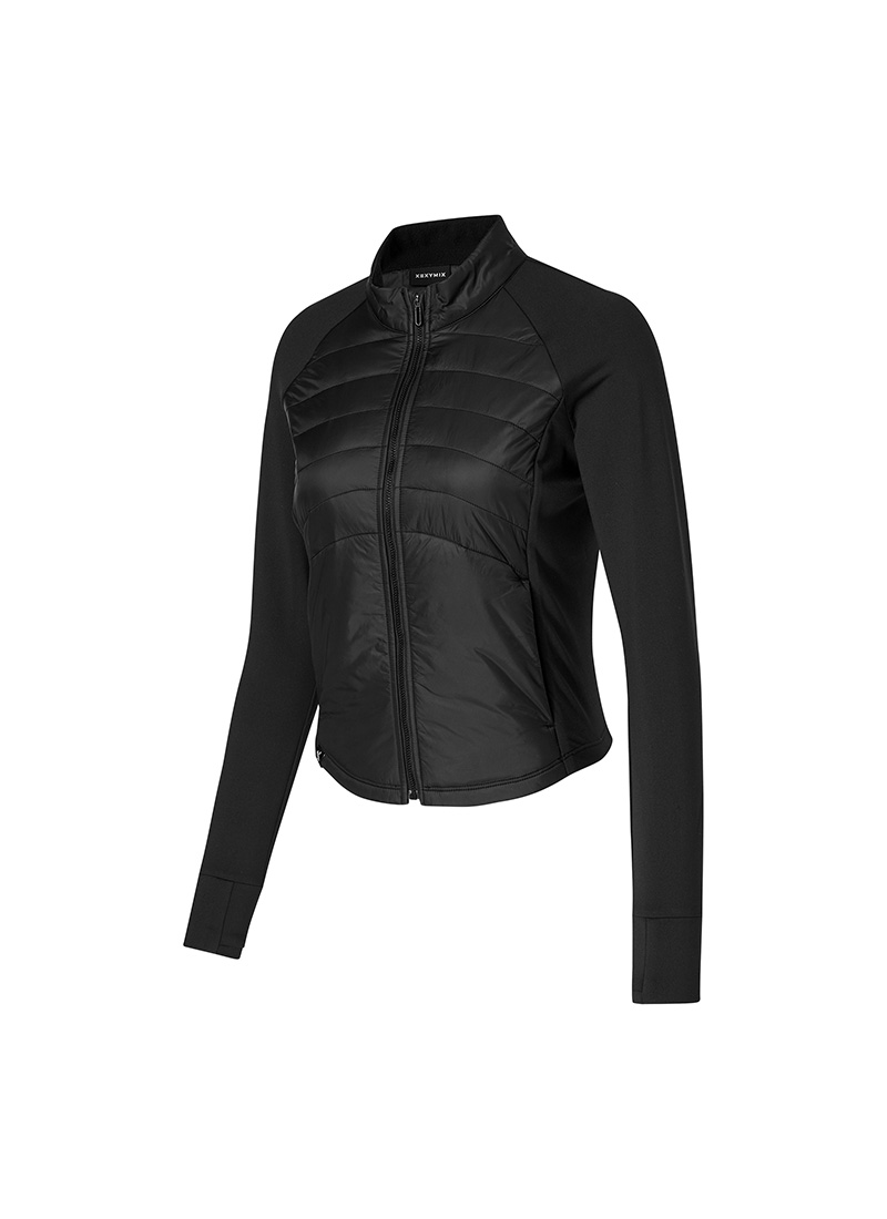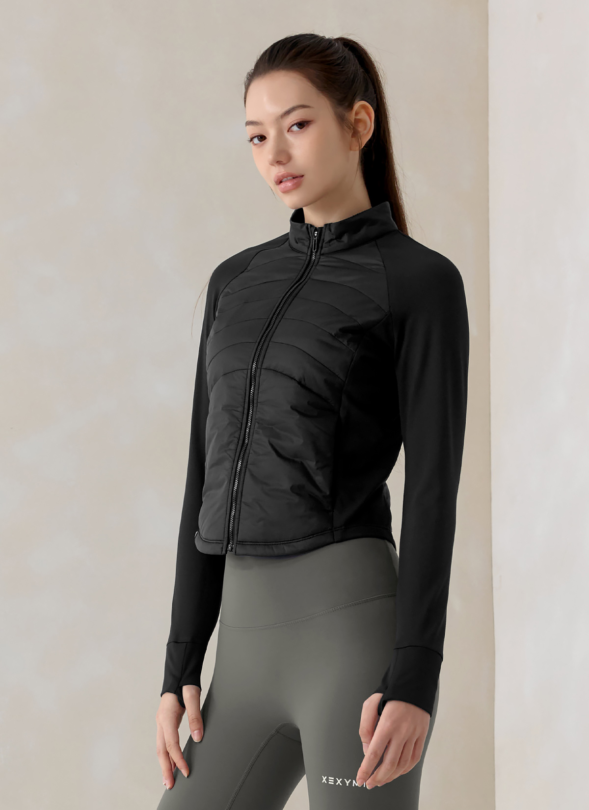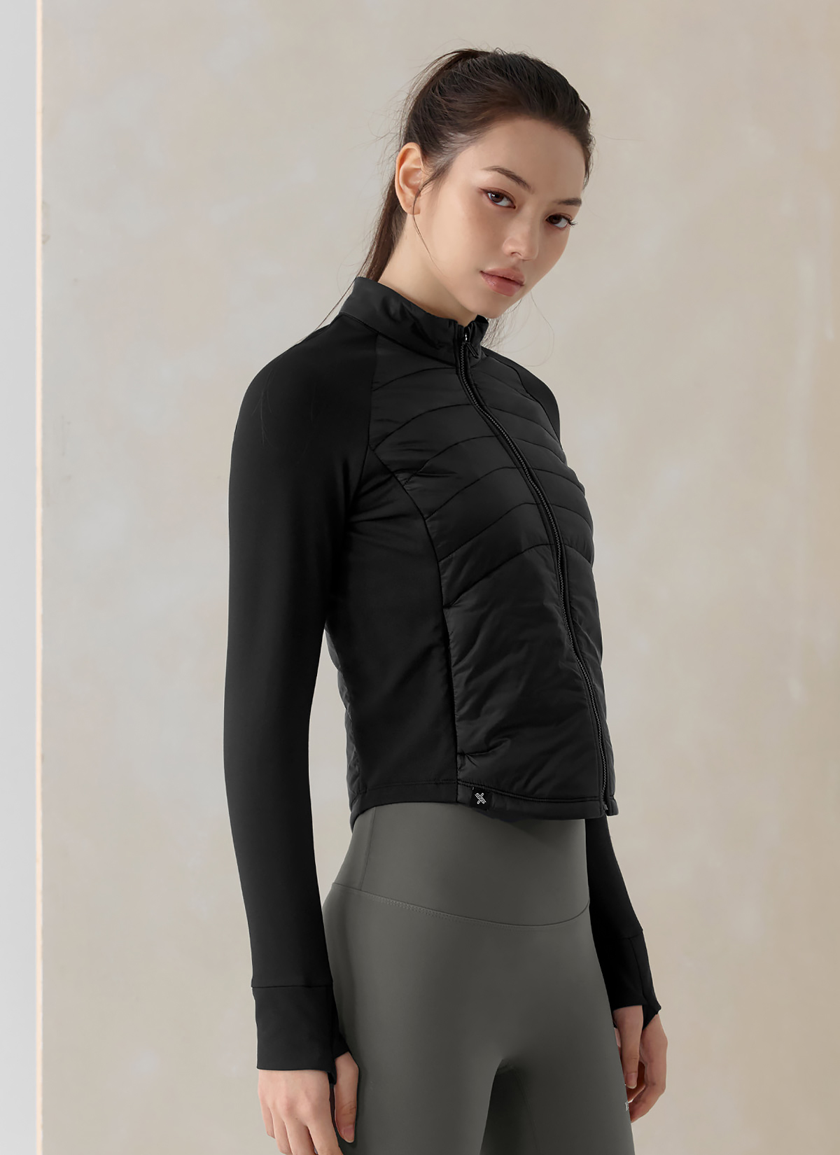 XWFPJ01J3 Finger hole lightweight padded mock neck jacket black Top