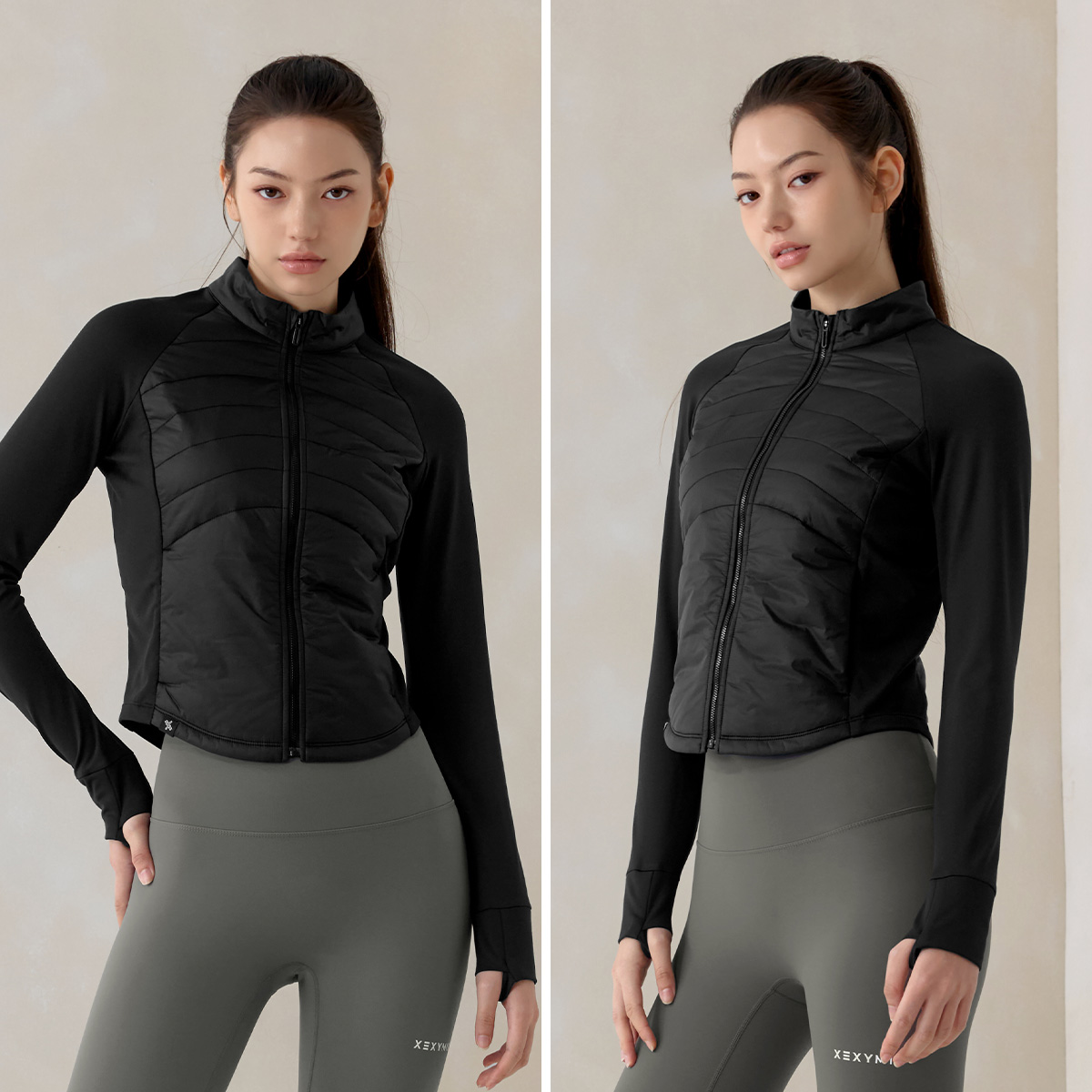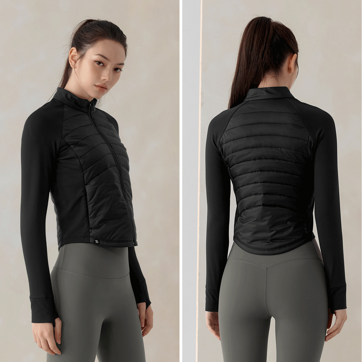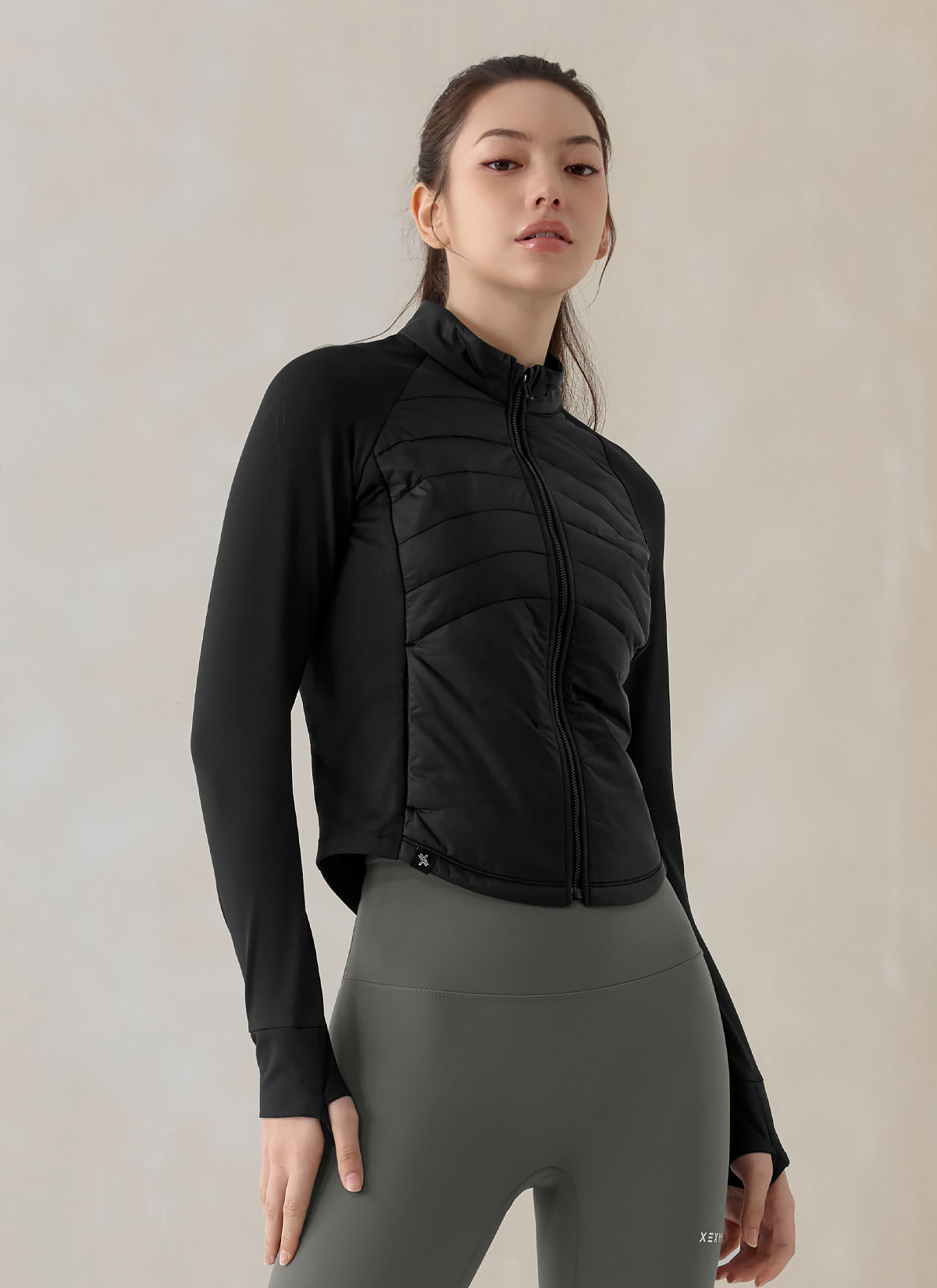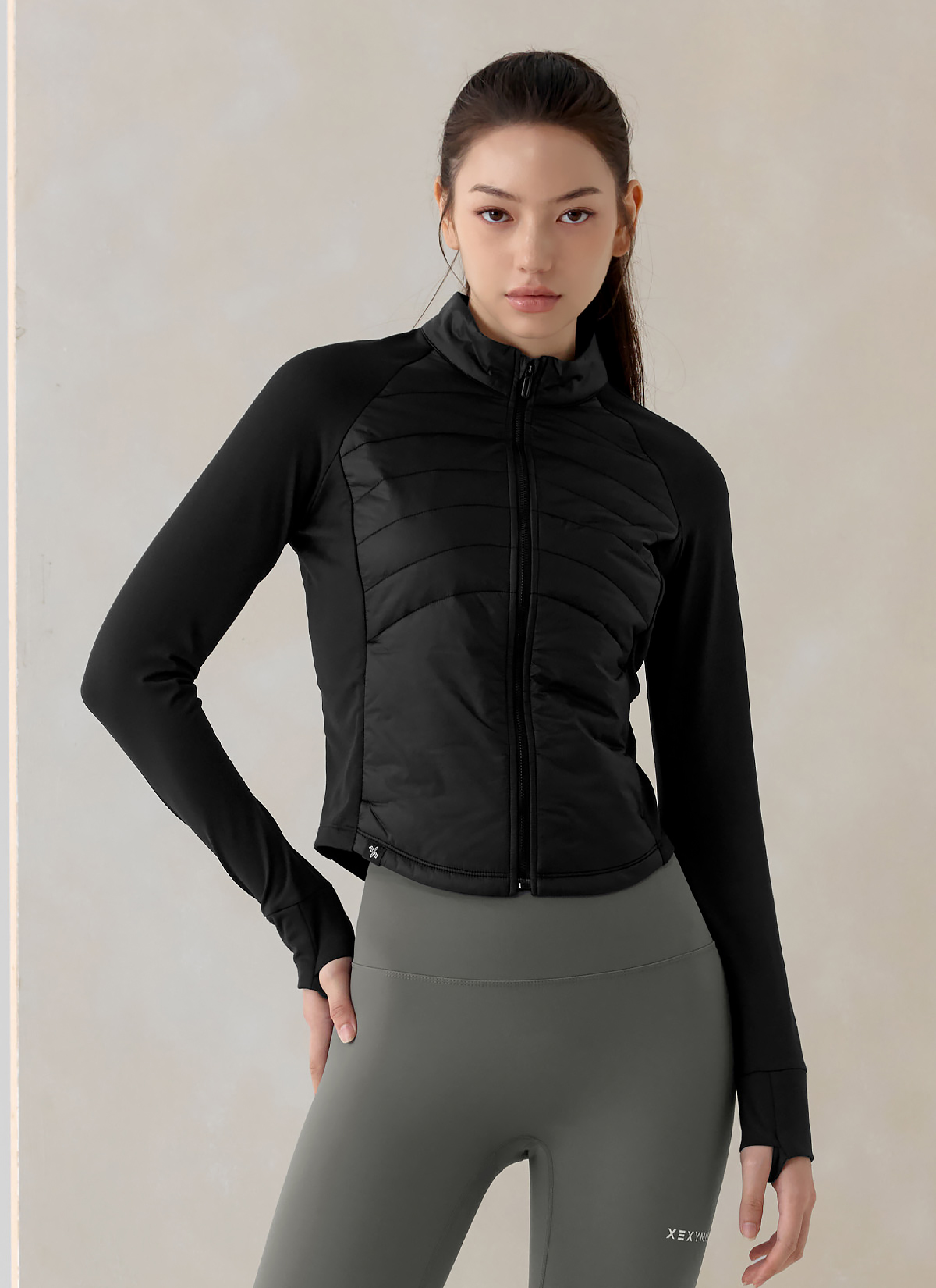 XWFPJ01J3 Finger hole lightweight padded mock neck jacket black Top