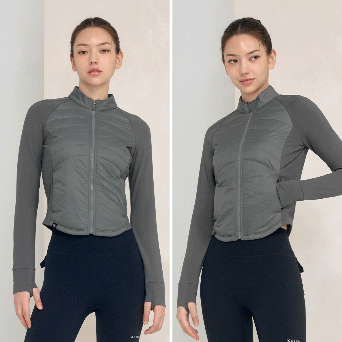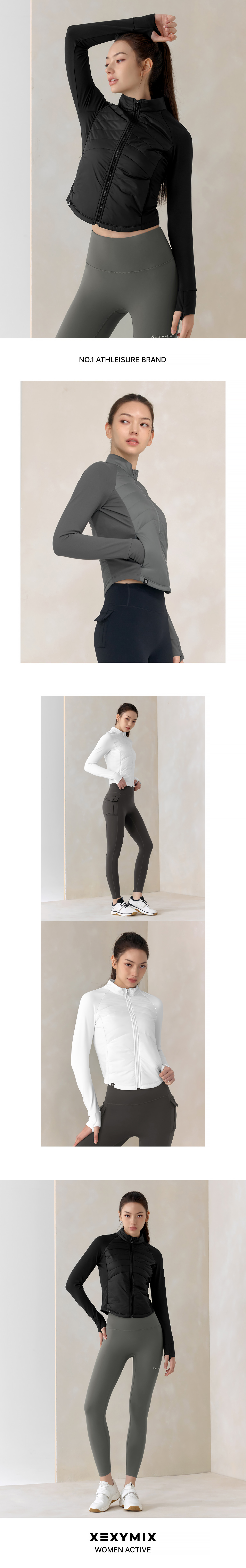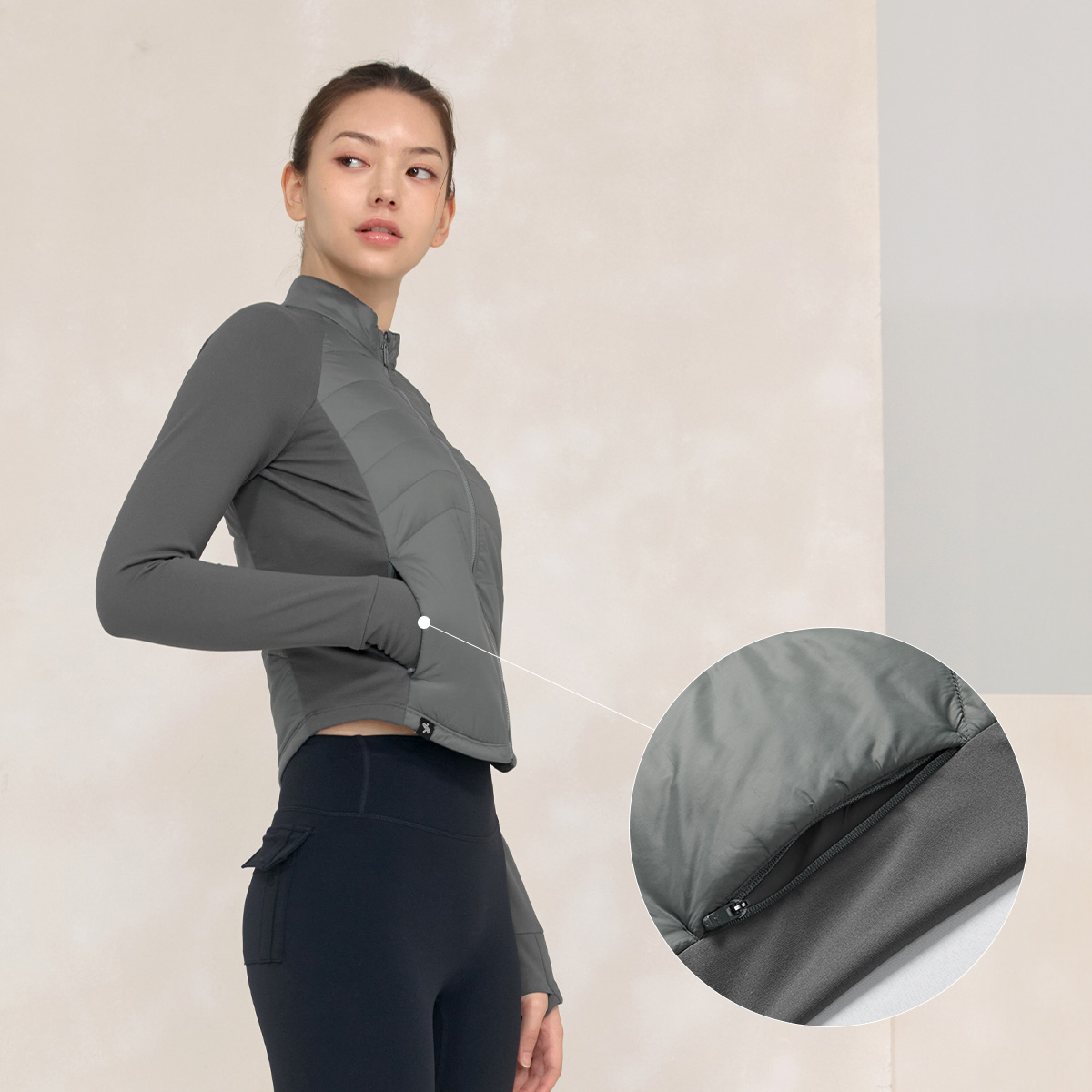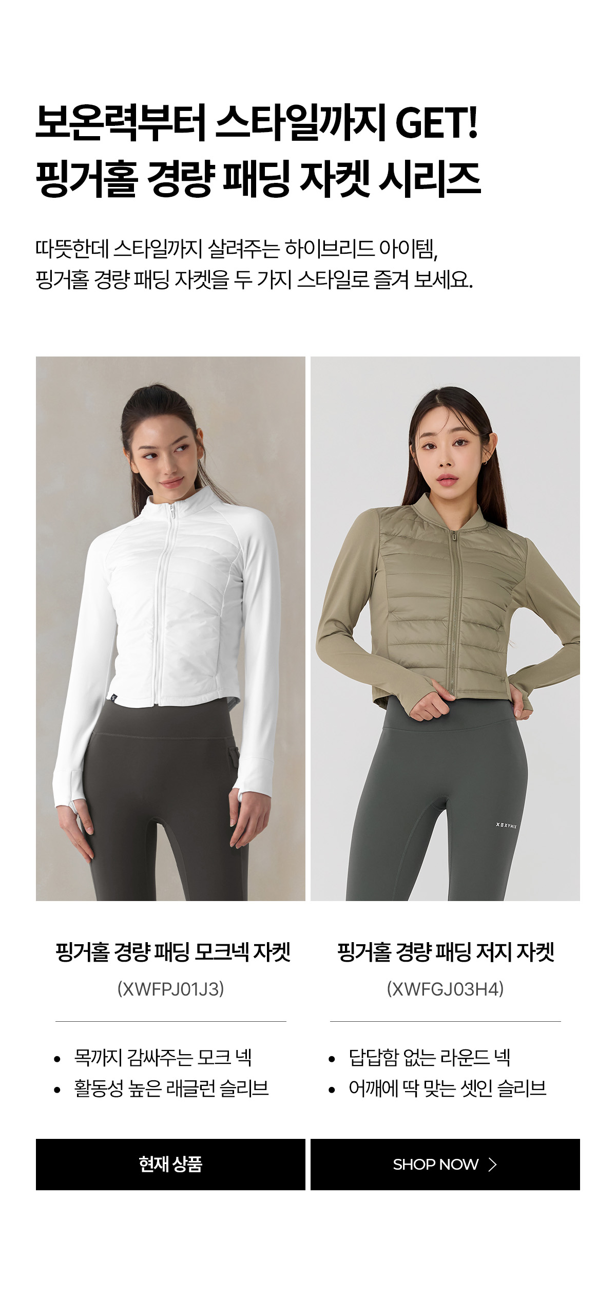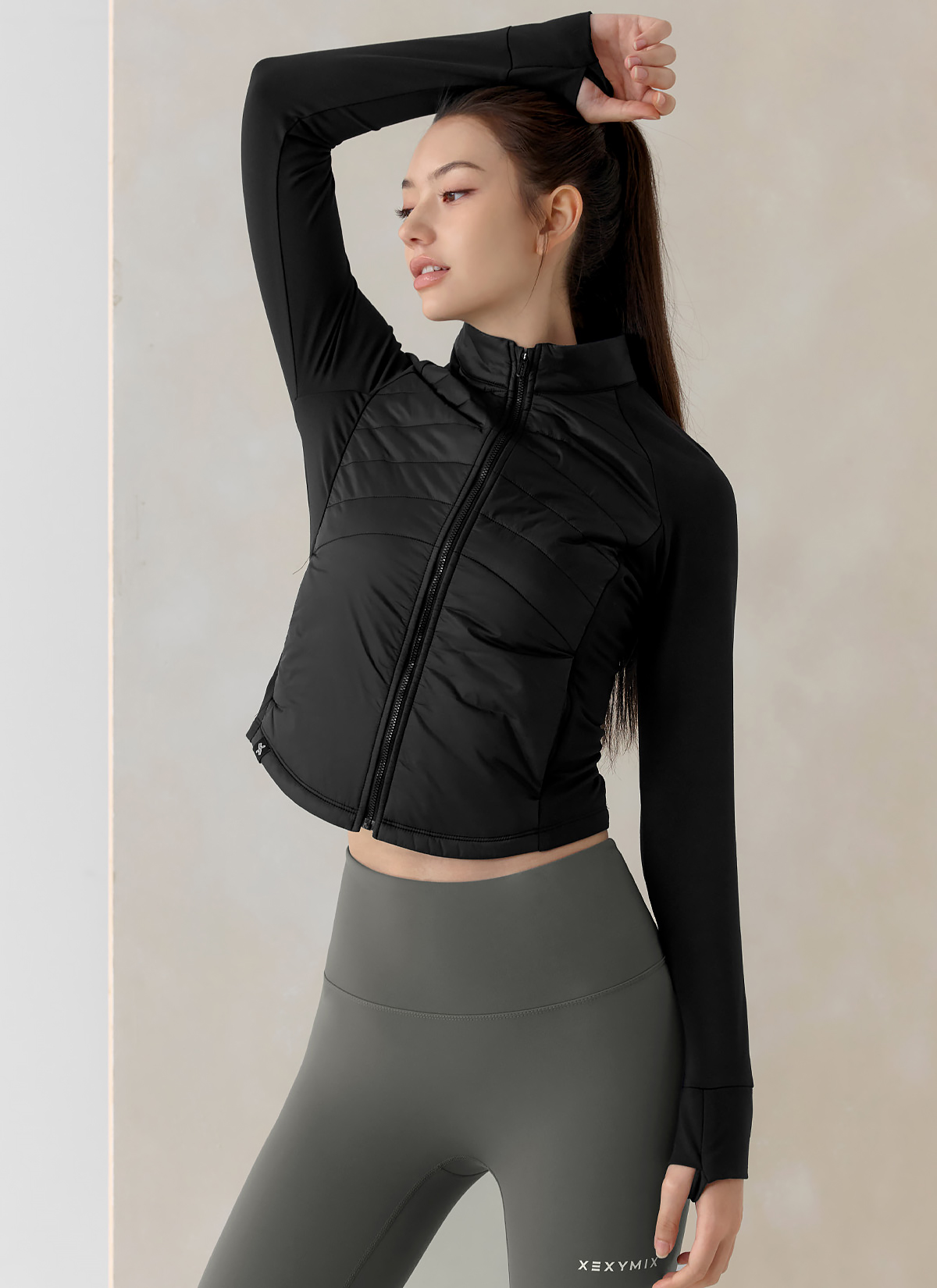 XWFPJ01J3 Finger hole lightweight padded mock neck jacket black Top