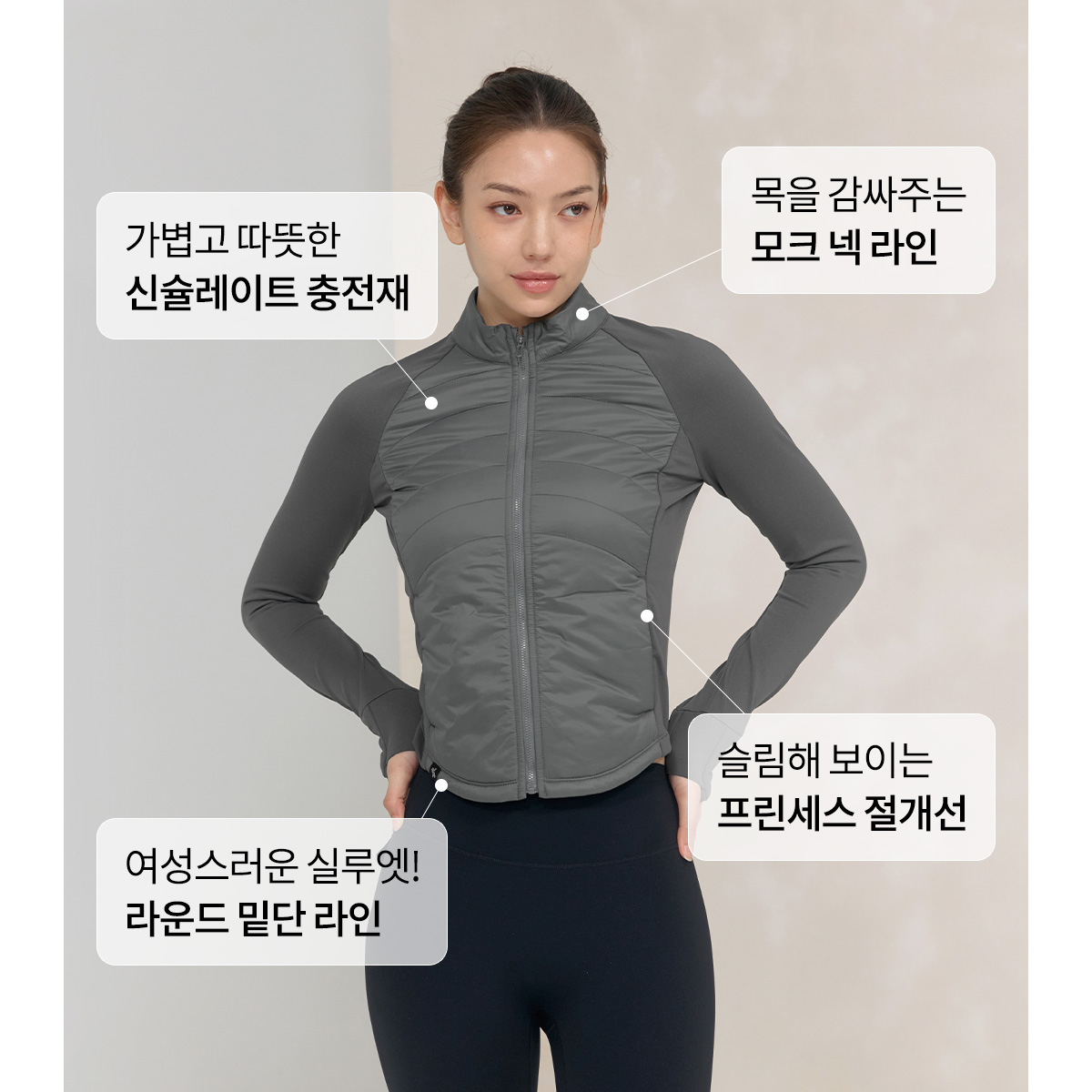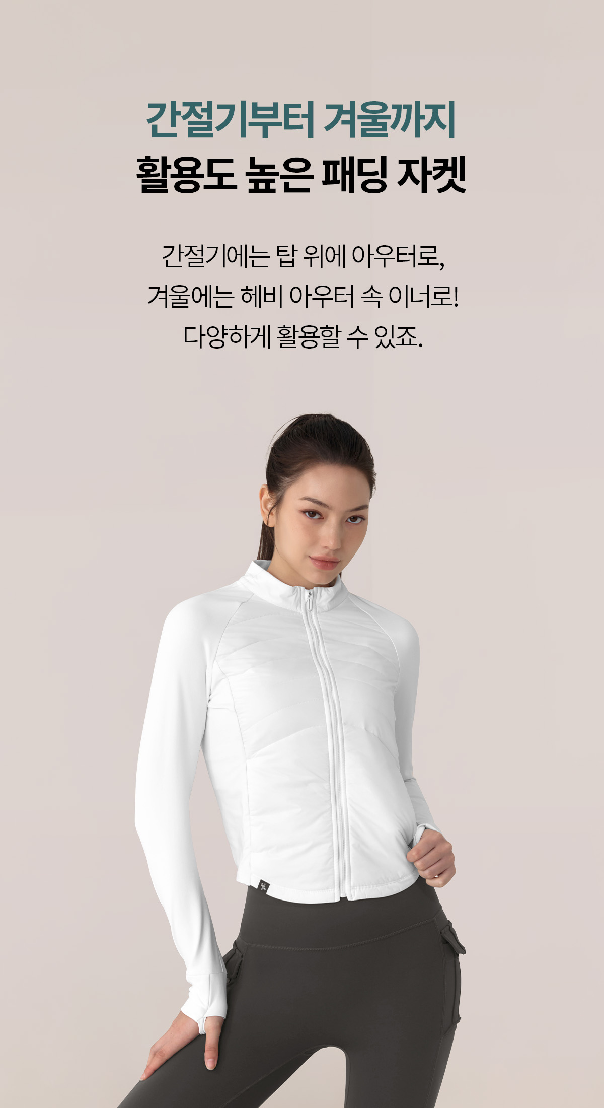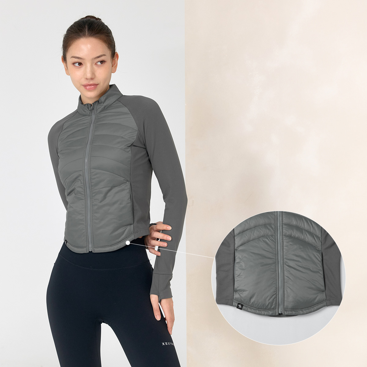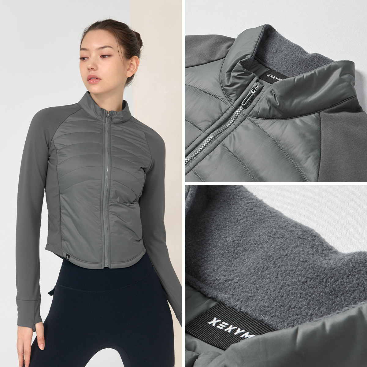 XWFPJ01J3 Finger hole lightweight padded mock neck jacket black Top