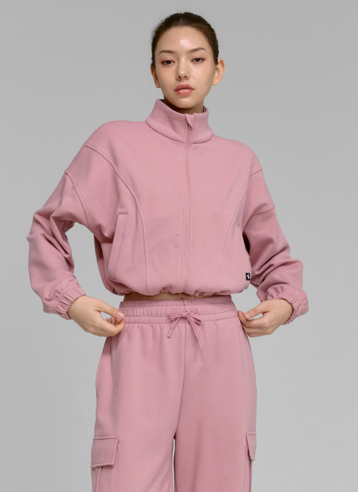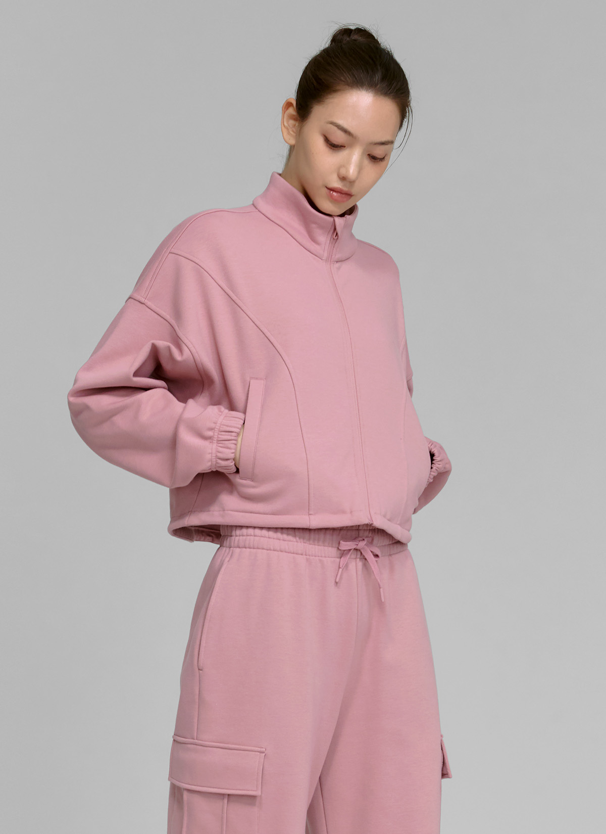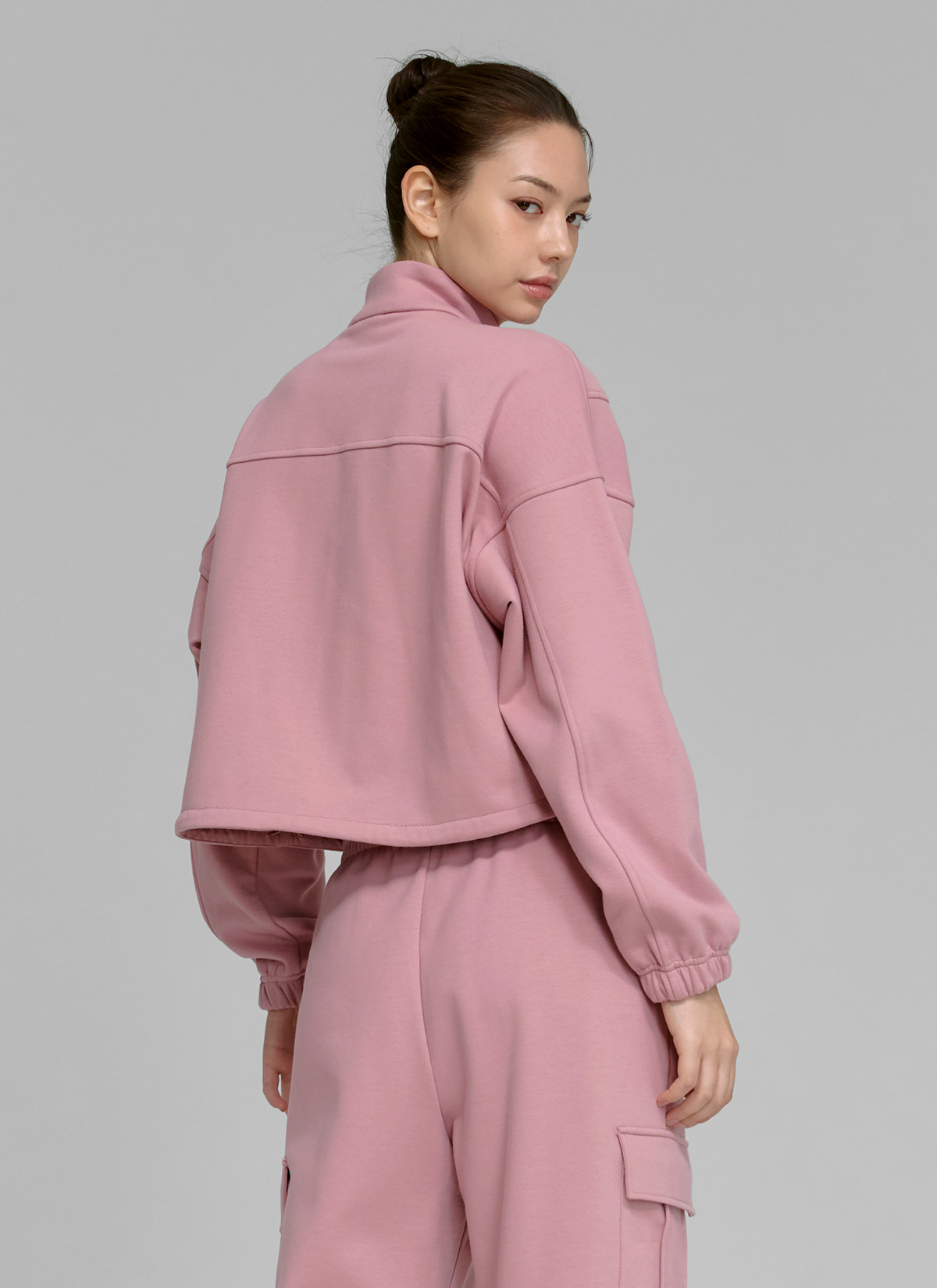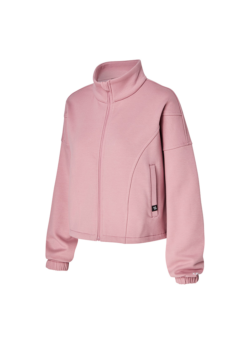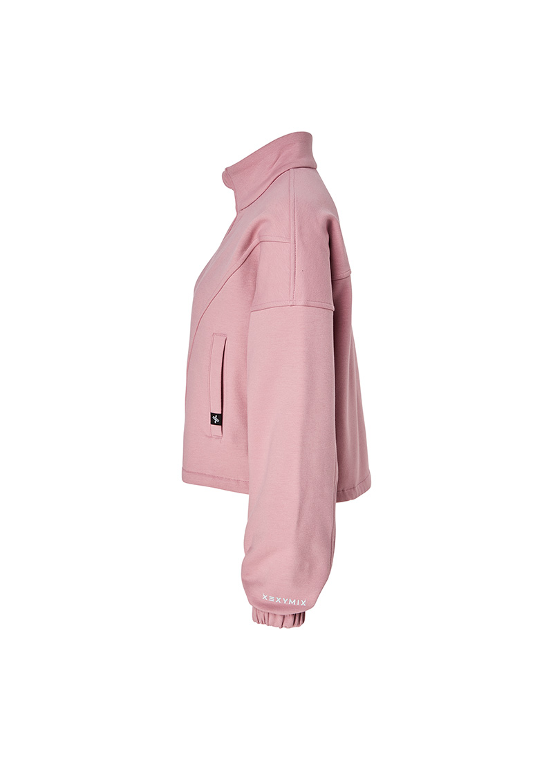 XTFGJ10J3 Cotton fluffy high neck zip-up fog rose top