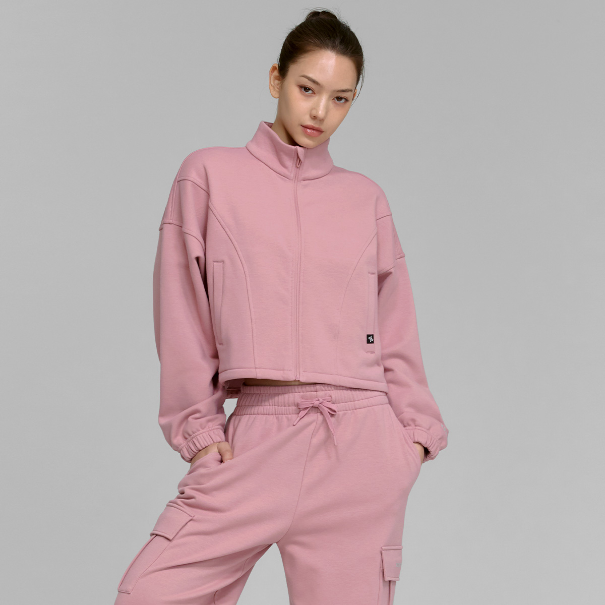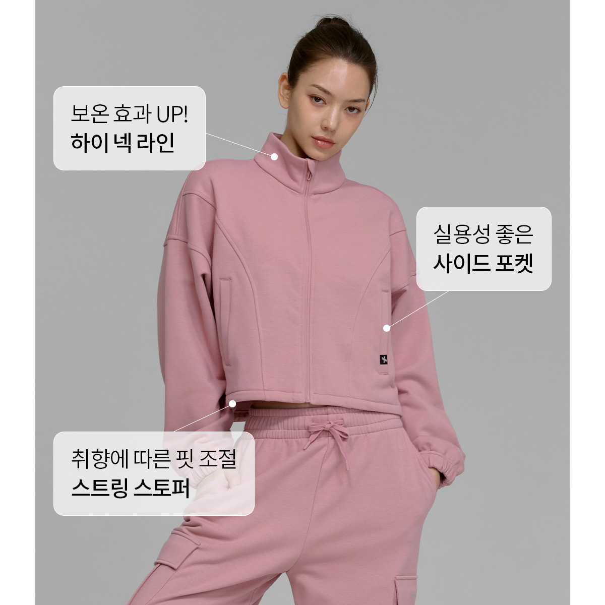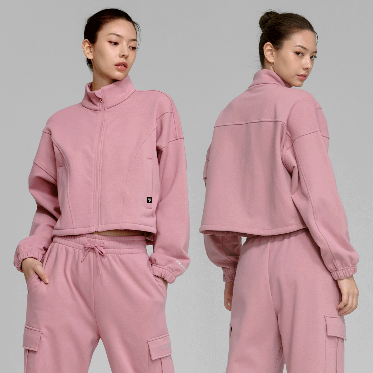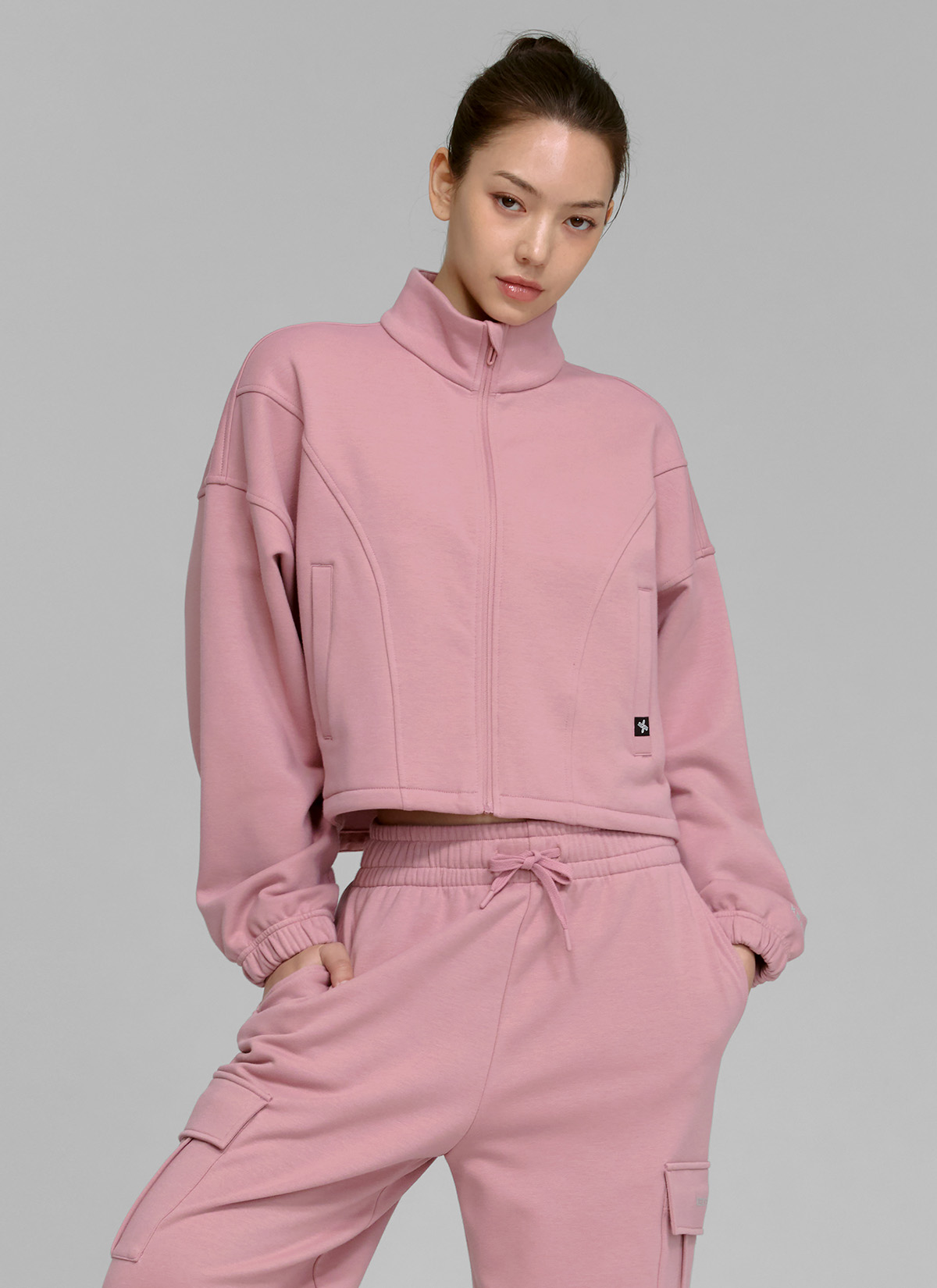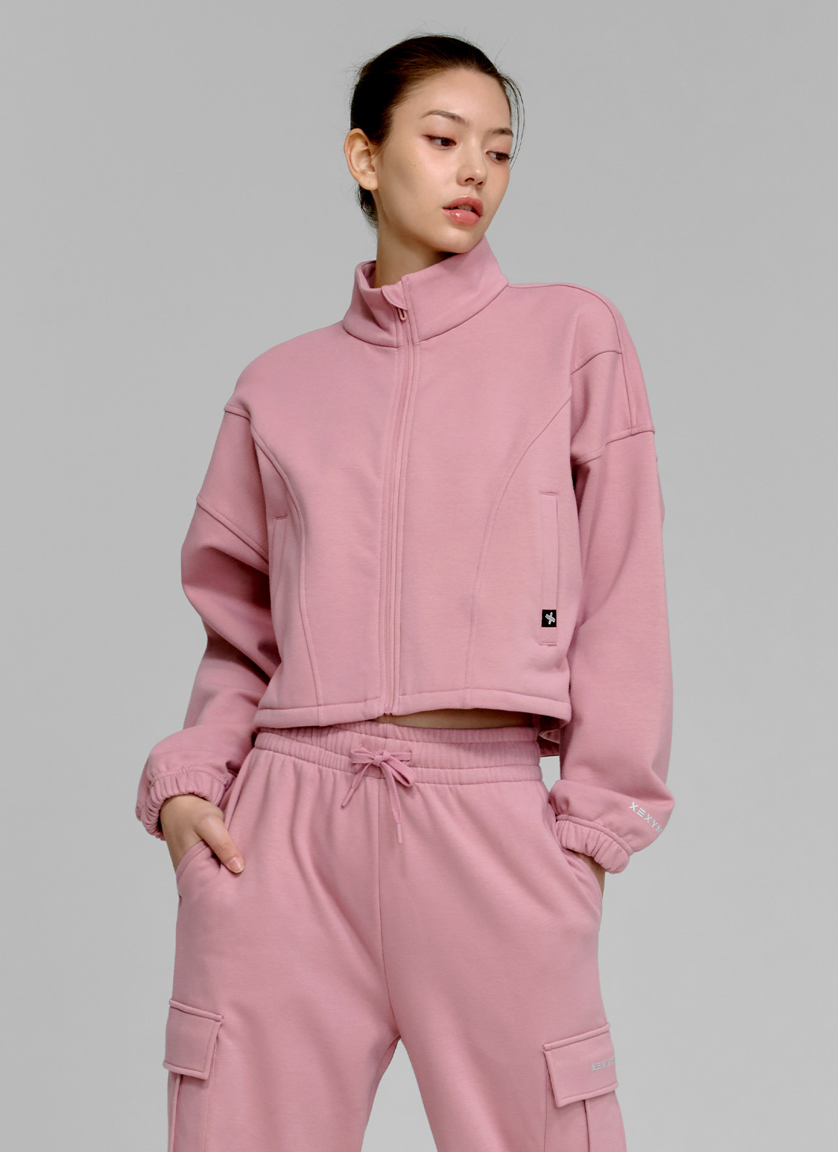 XTFGJ10J3 Cotton fluffy high neck zip-up fog rose top