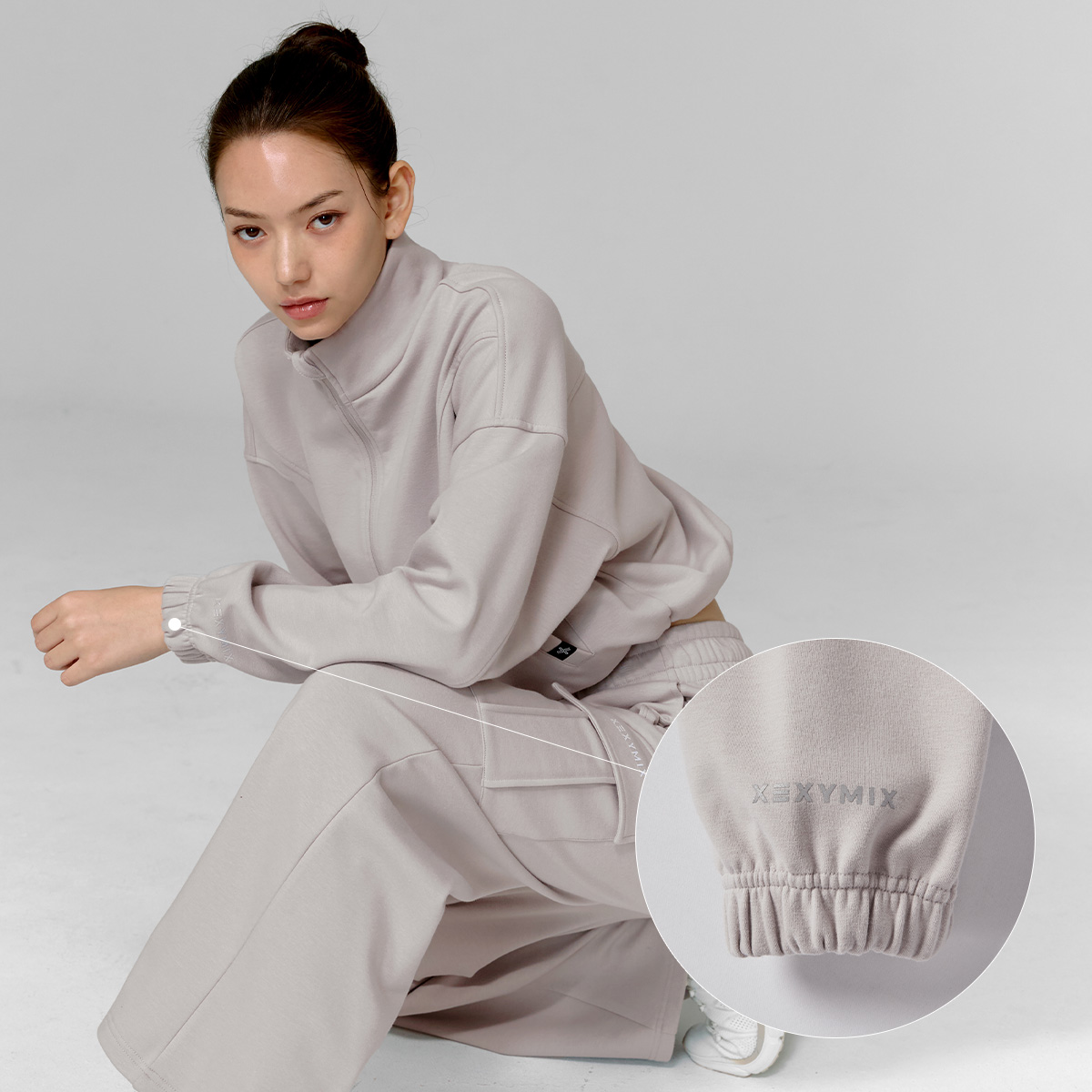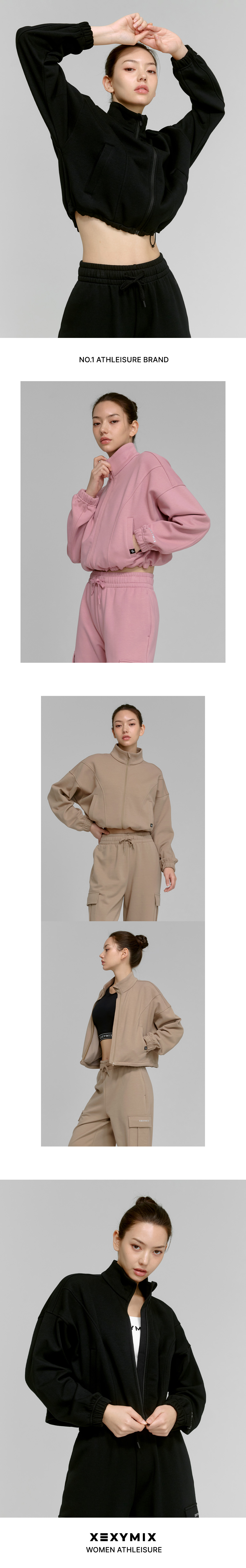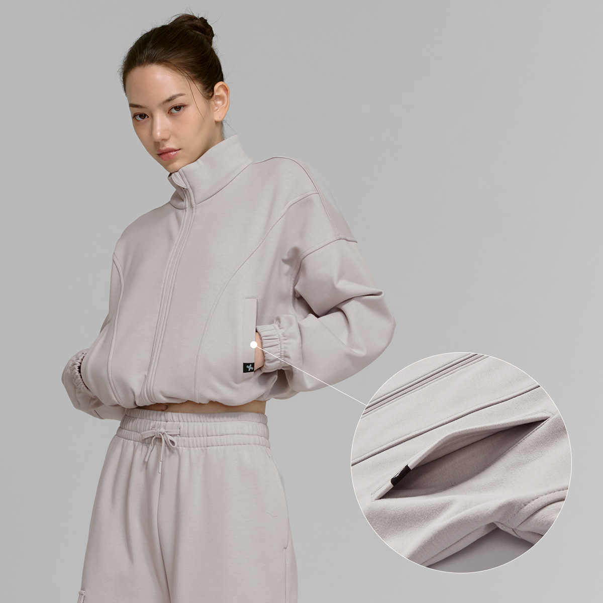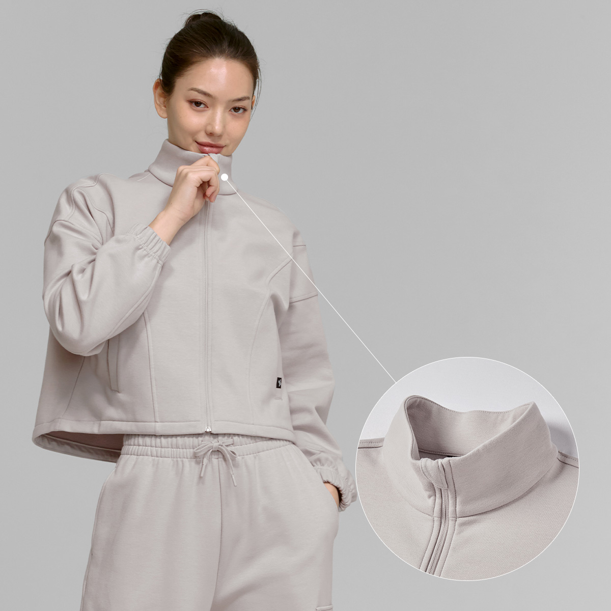 XTFGJ10J3 Cotton fluffy high neck zip-up fog rose top