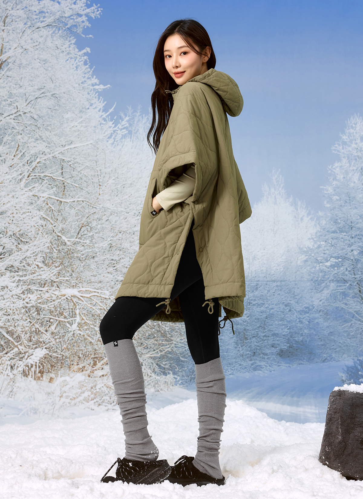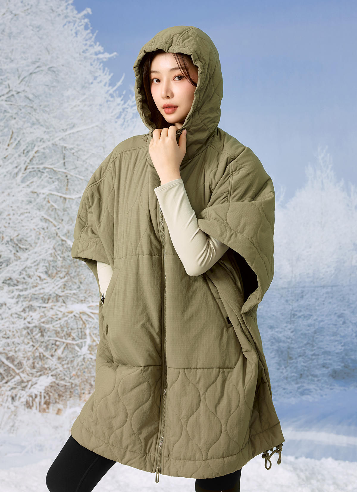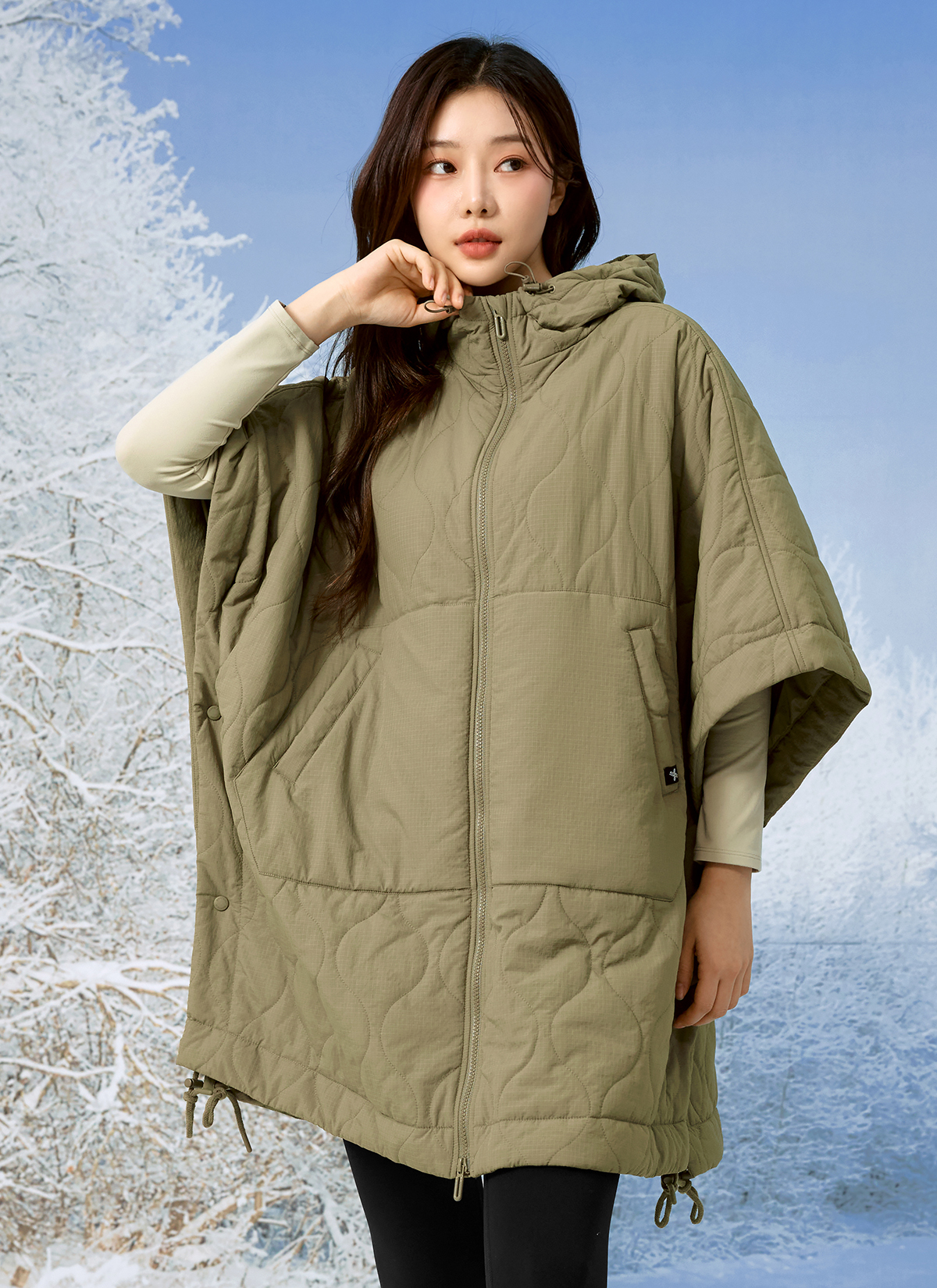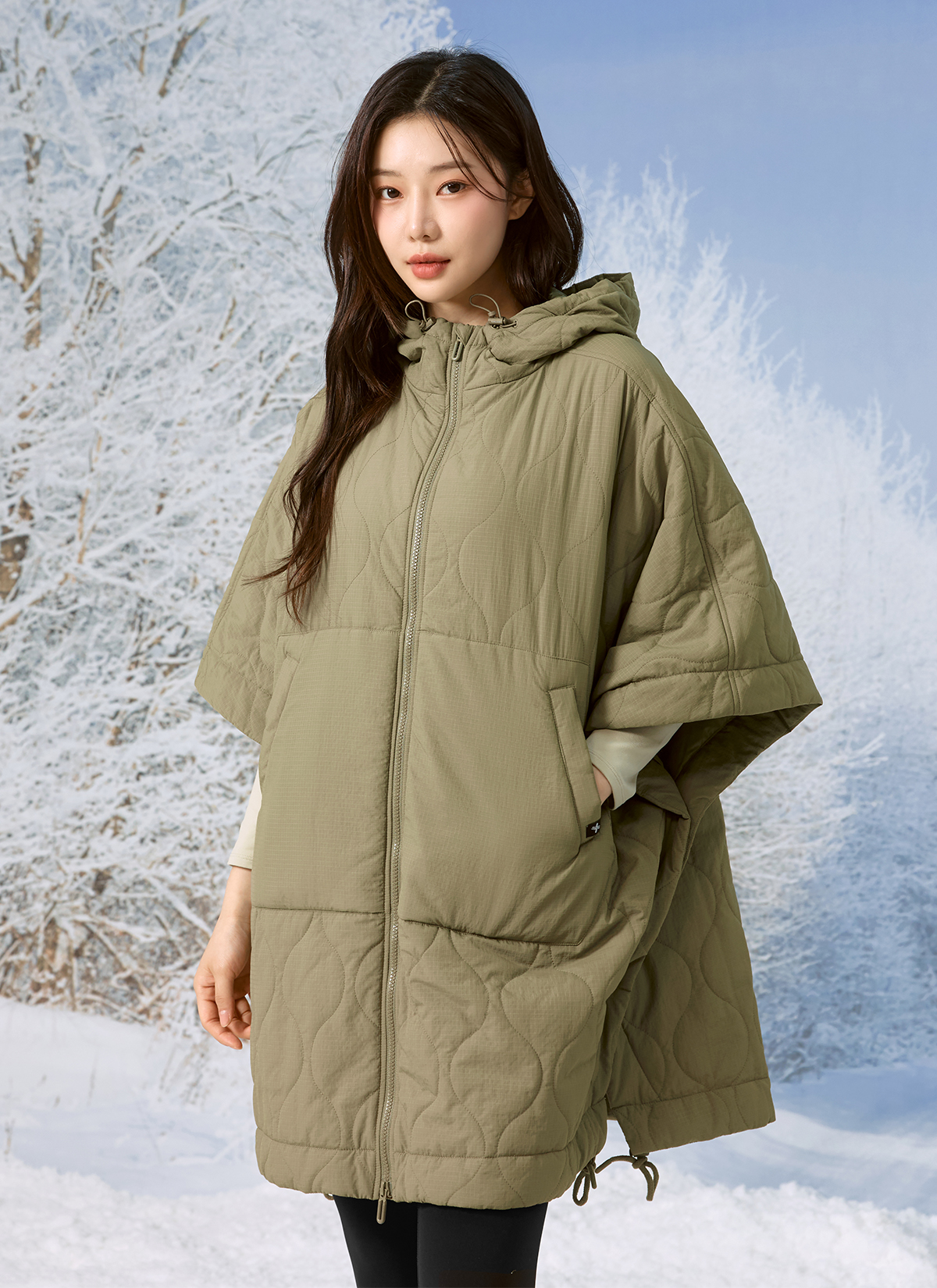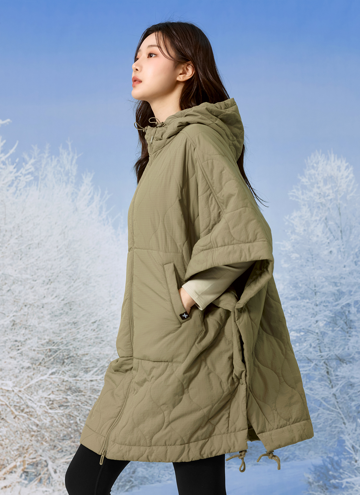 XTFPJ01J3 Nature Quilted Full-Zip Hoodie Poncho Woody Khaki Top