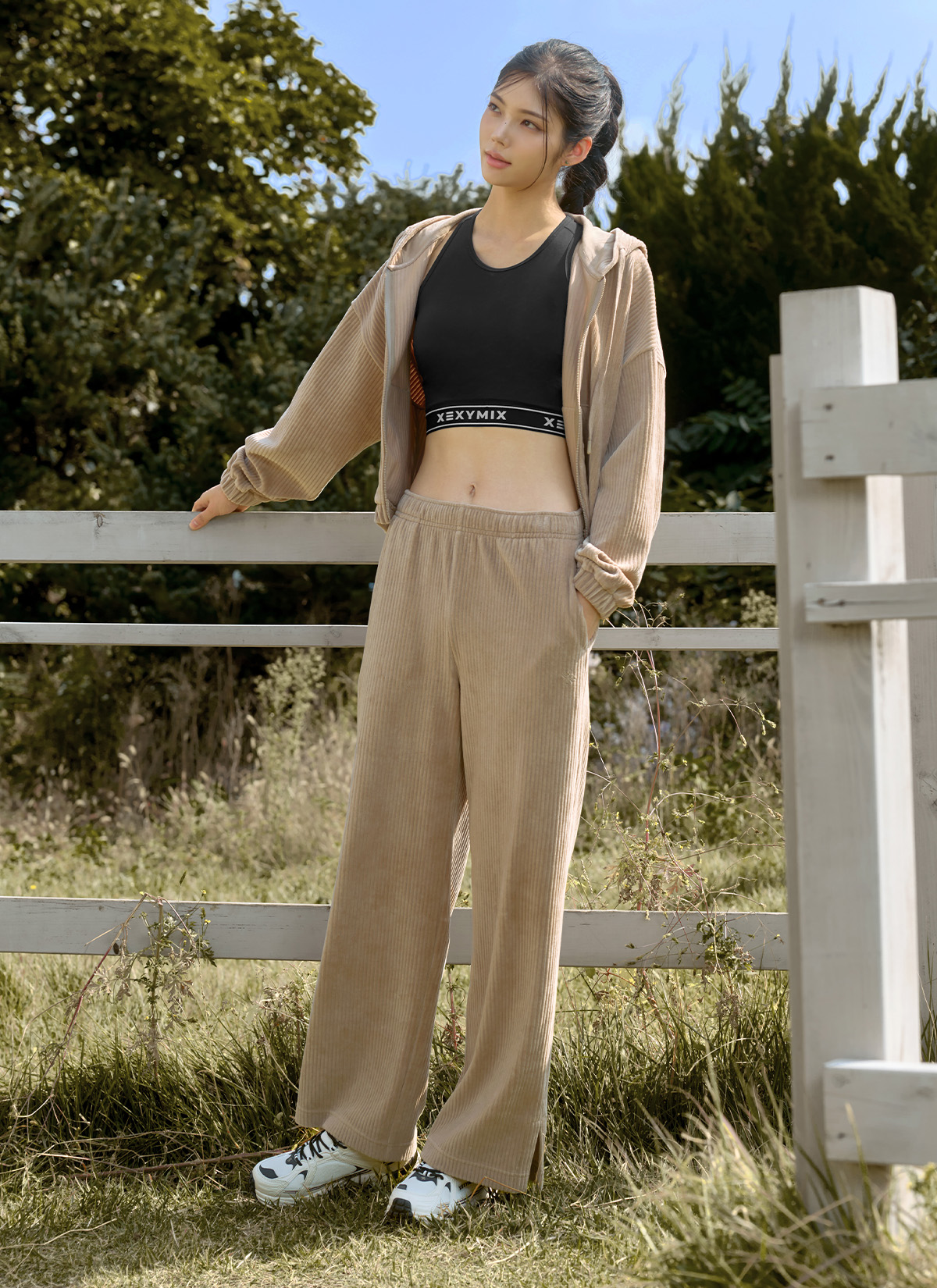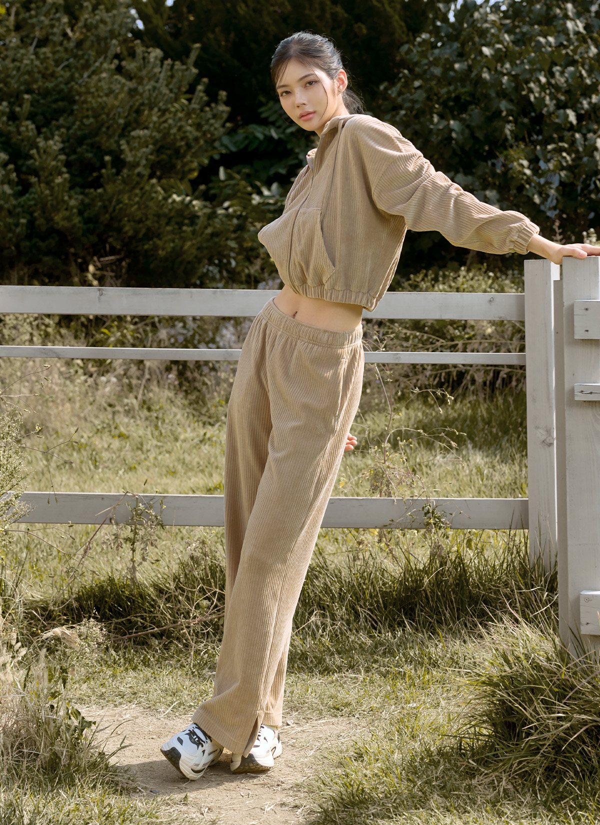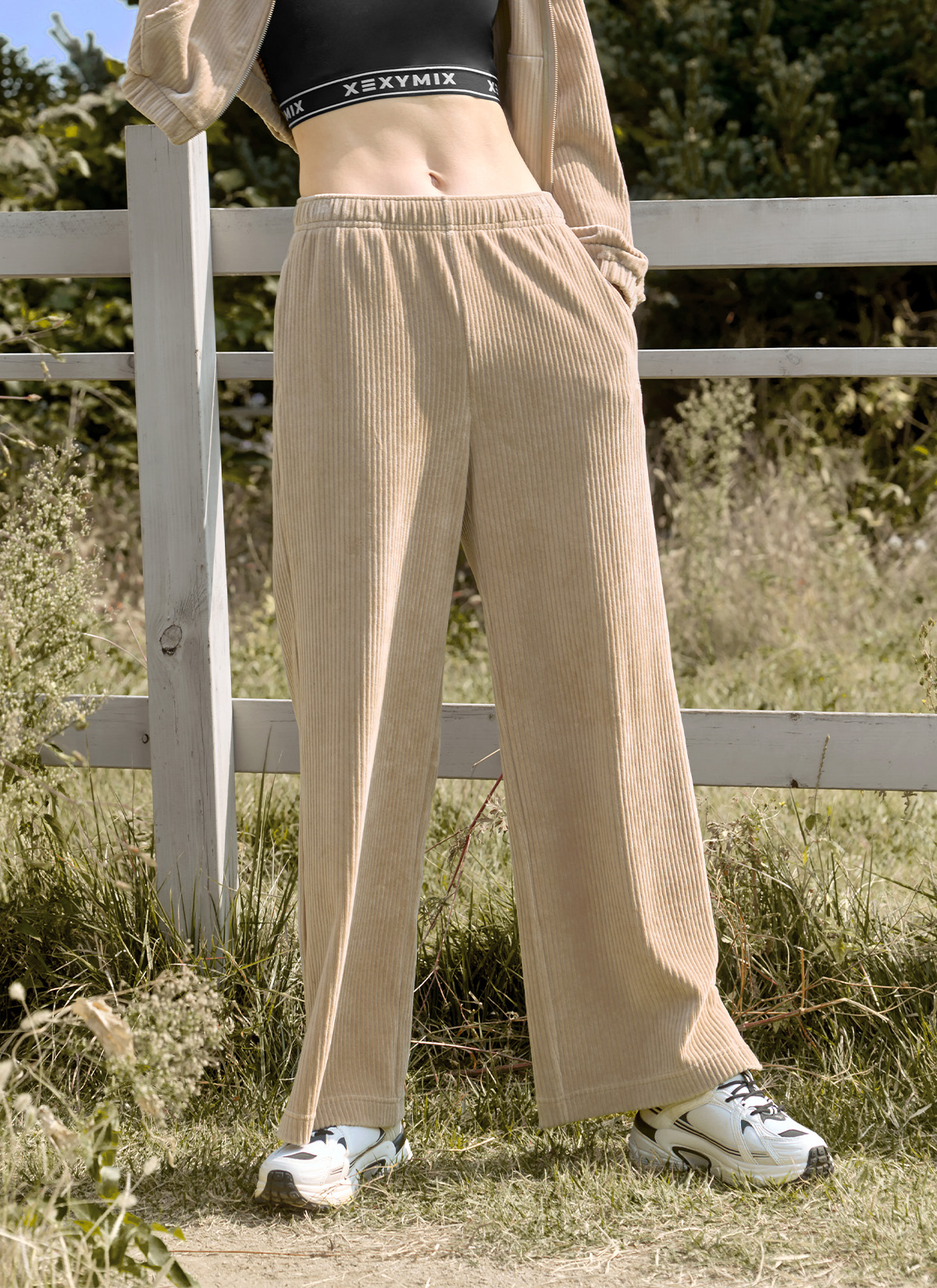 XTFTP14J3 Corduroy Wide Pants Mocha Latte Bottom