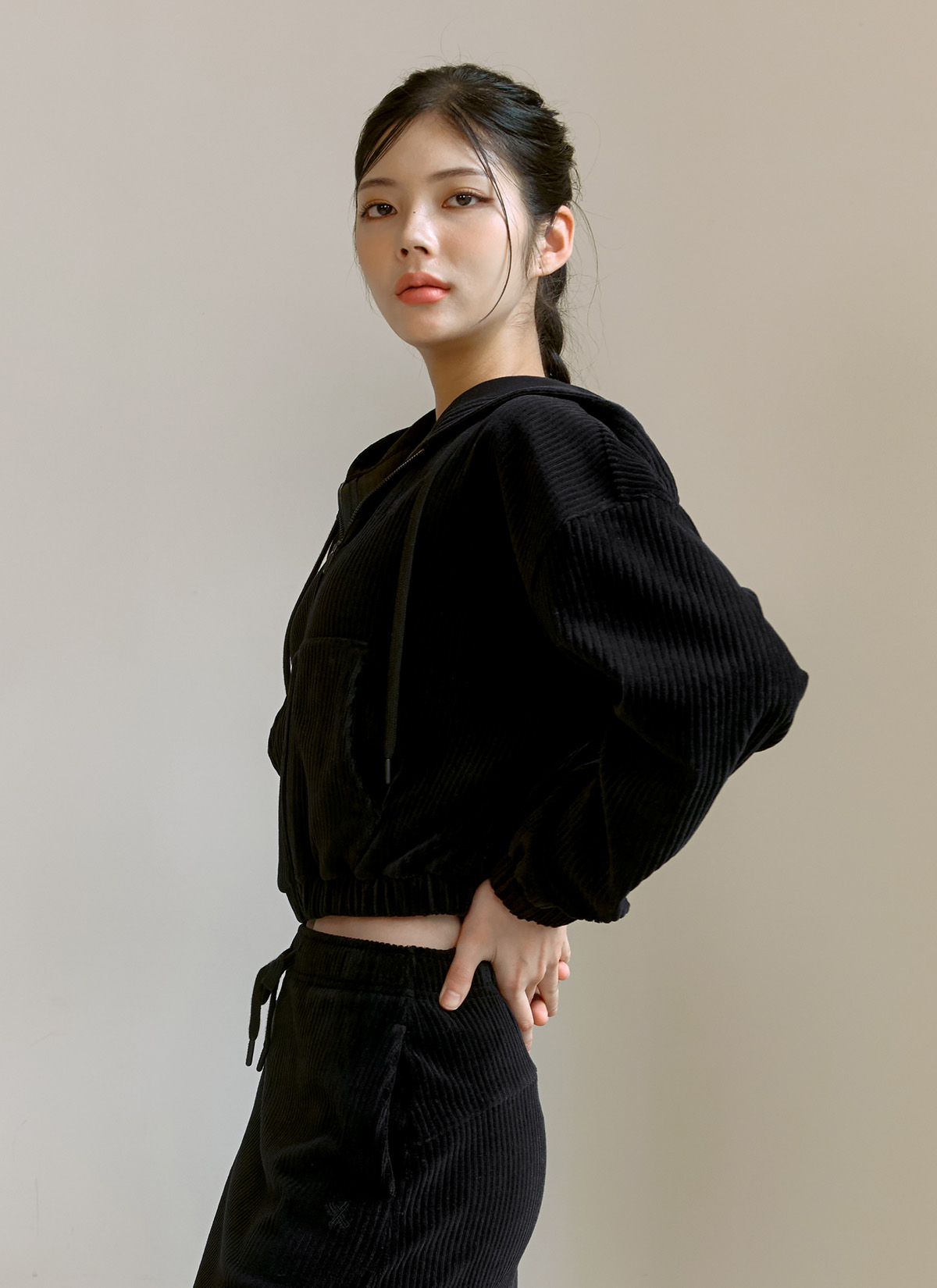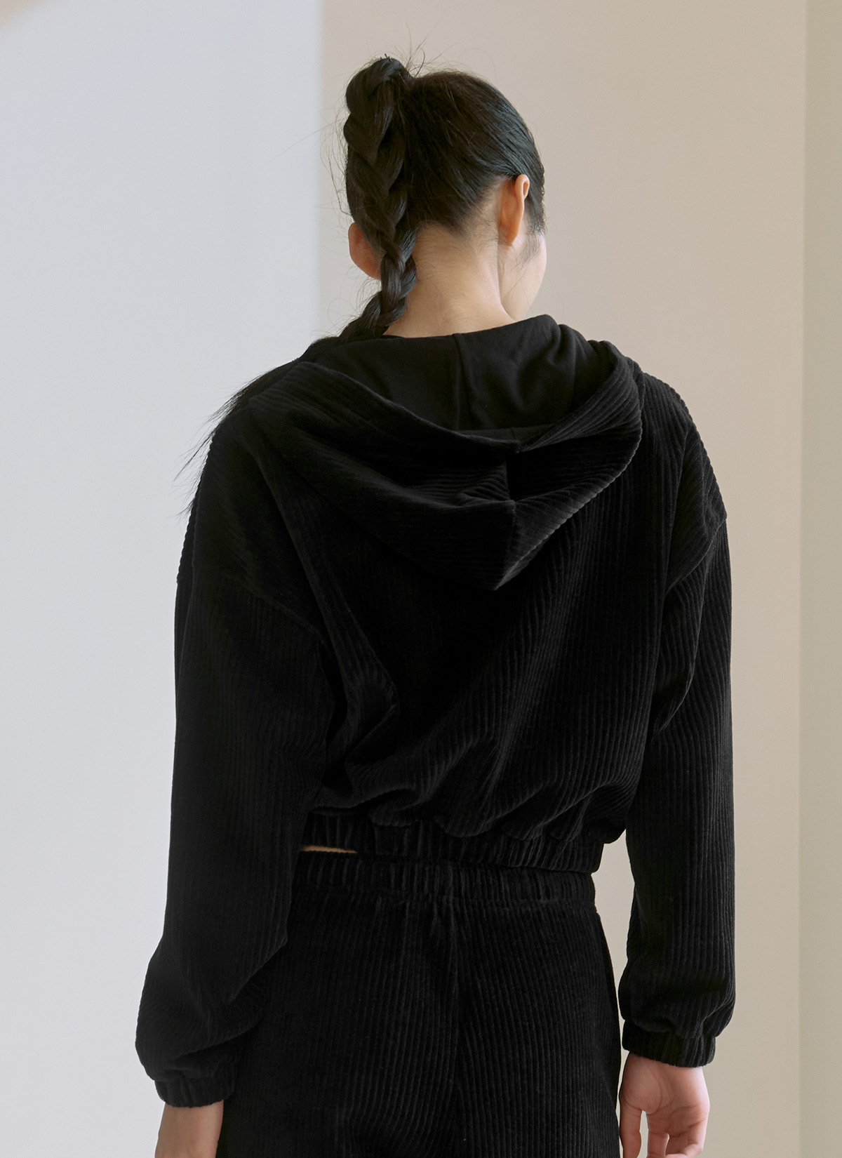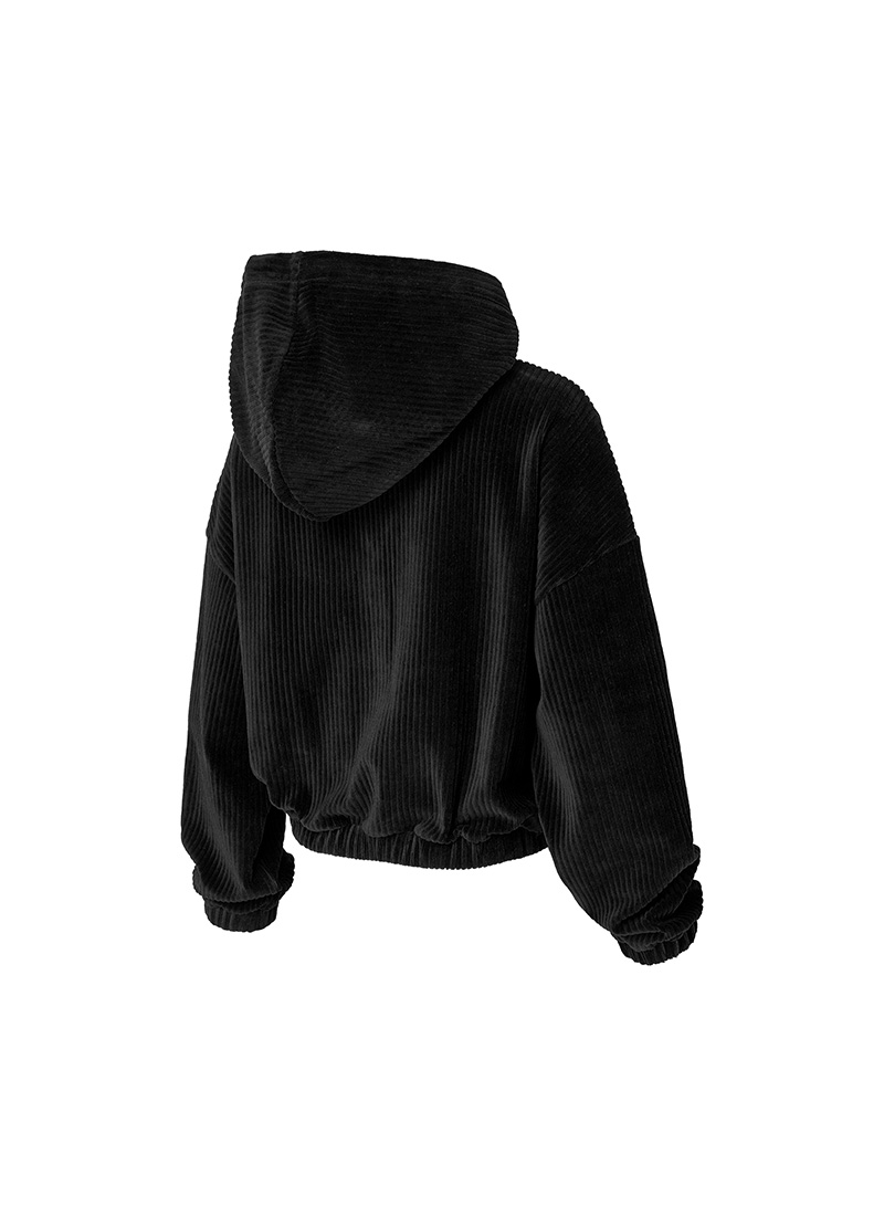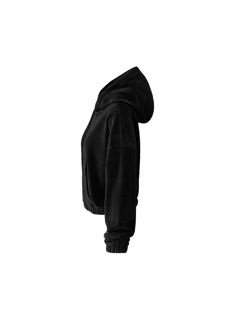 XTFGJ14J3 Corduroy Hood Zip up Black Top