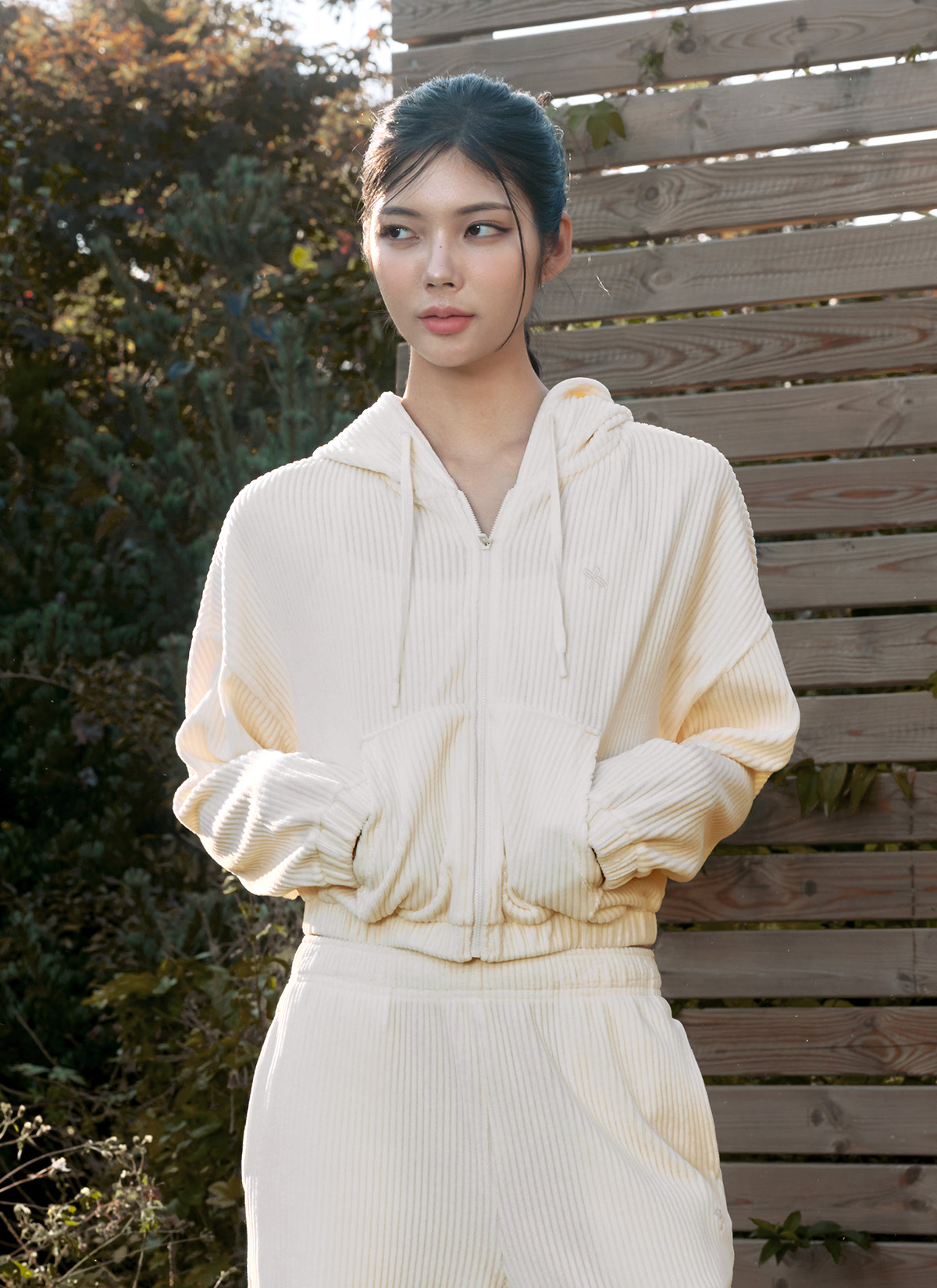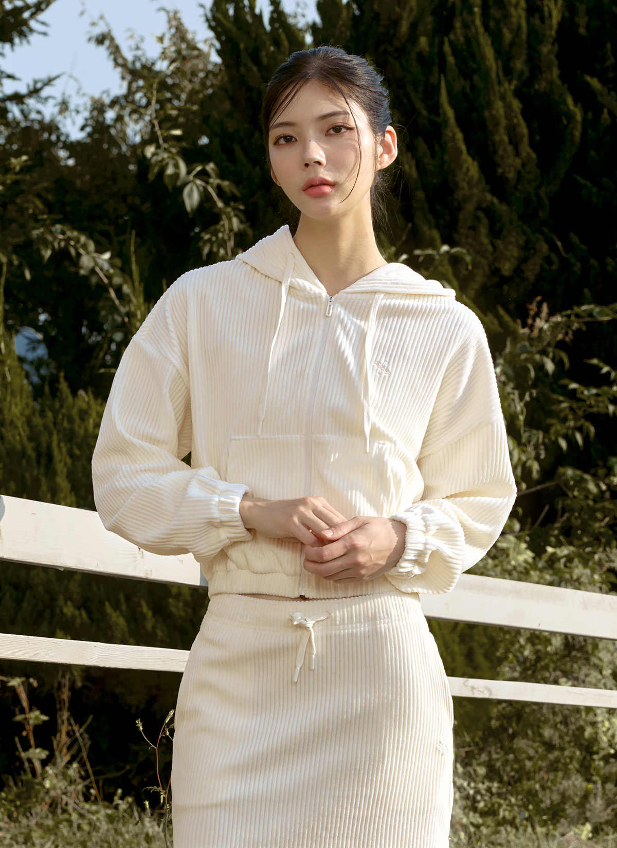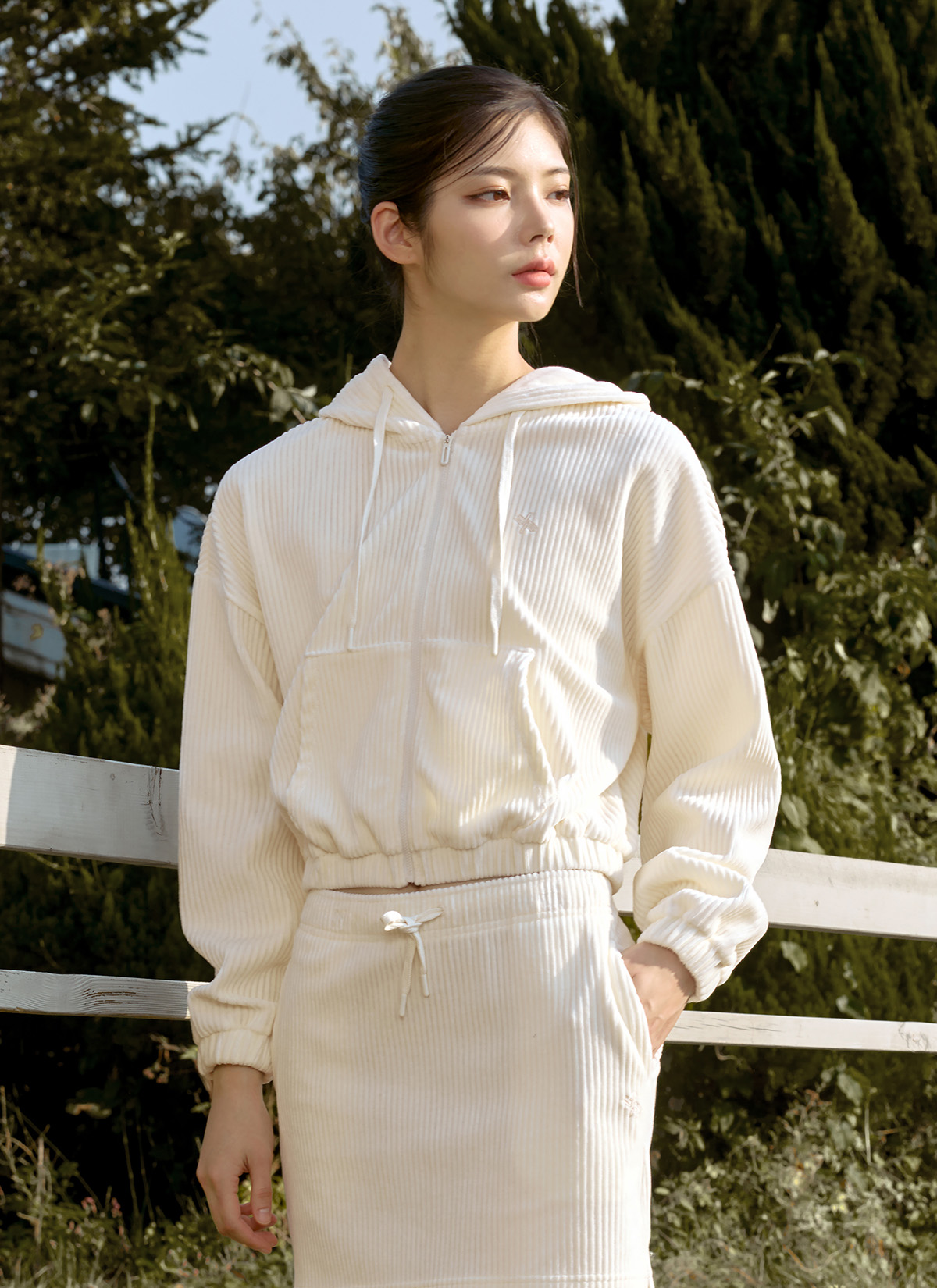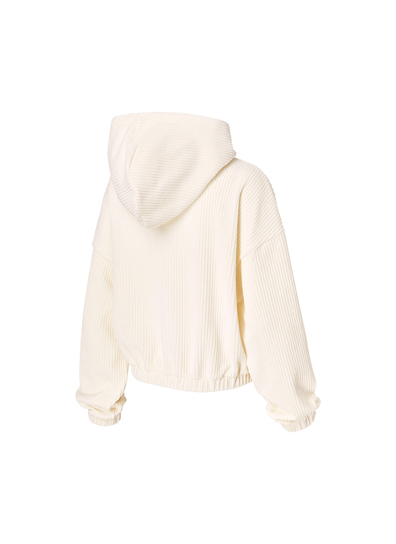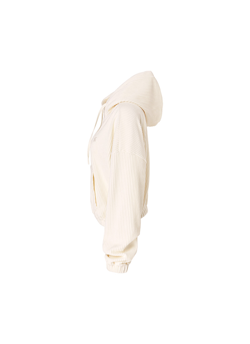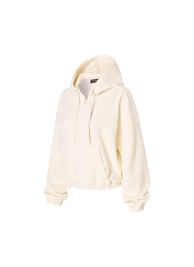 XTFGJ14J3 Corduroy Hood Zip up Ivory Top