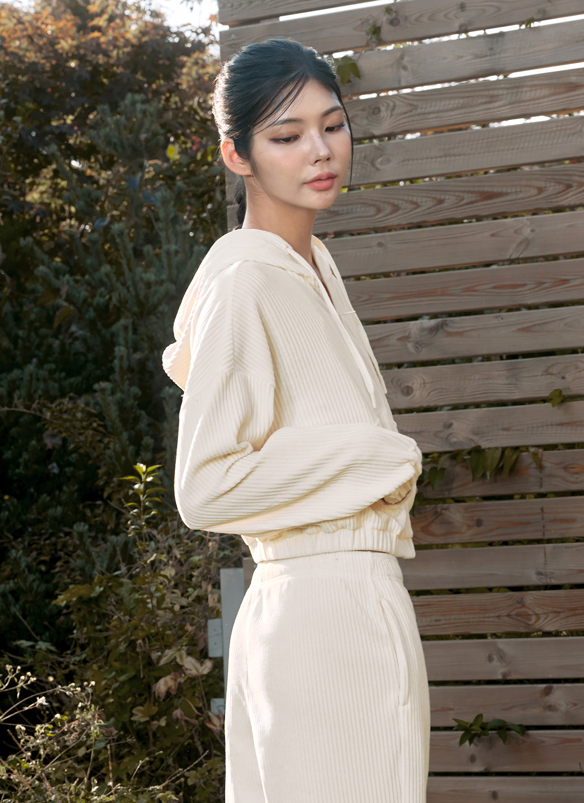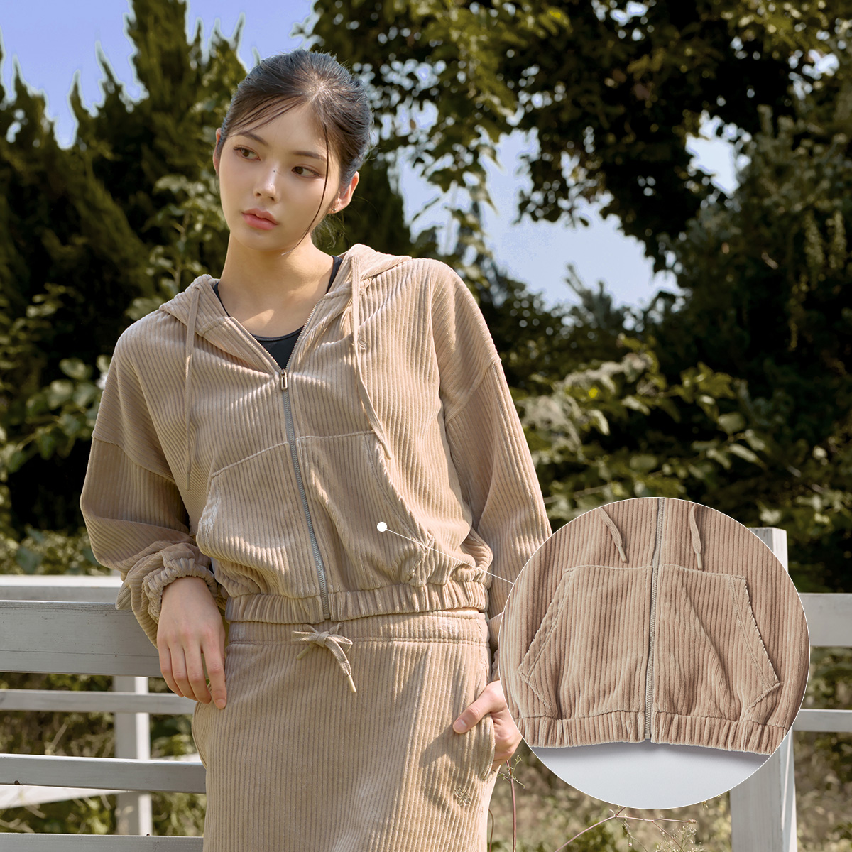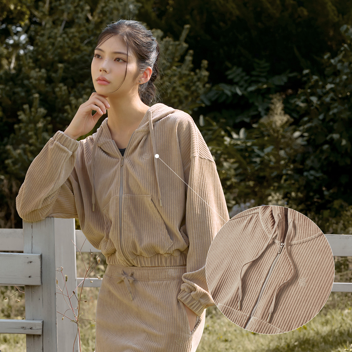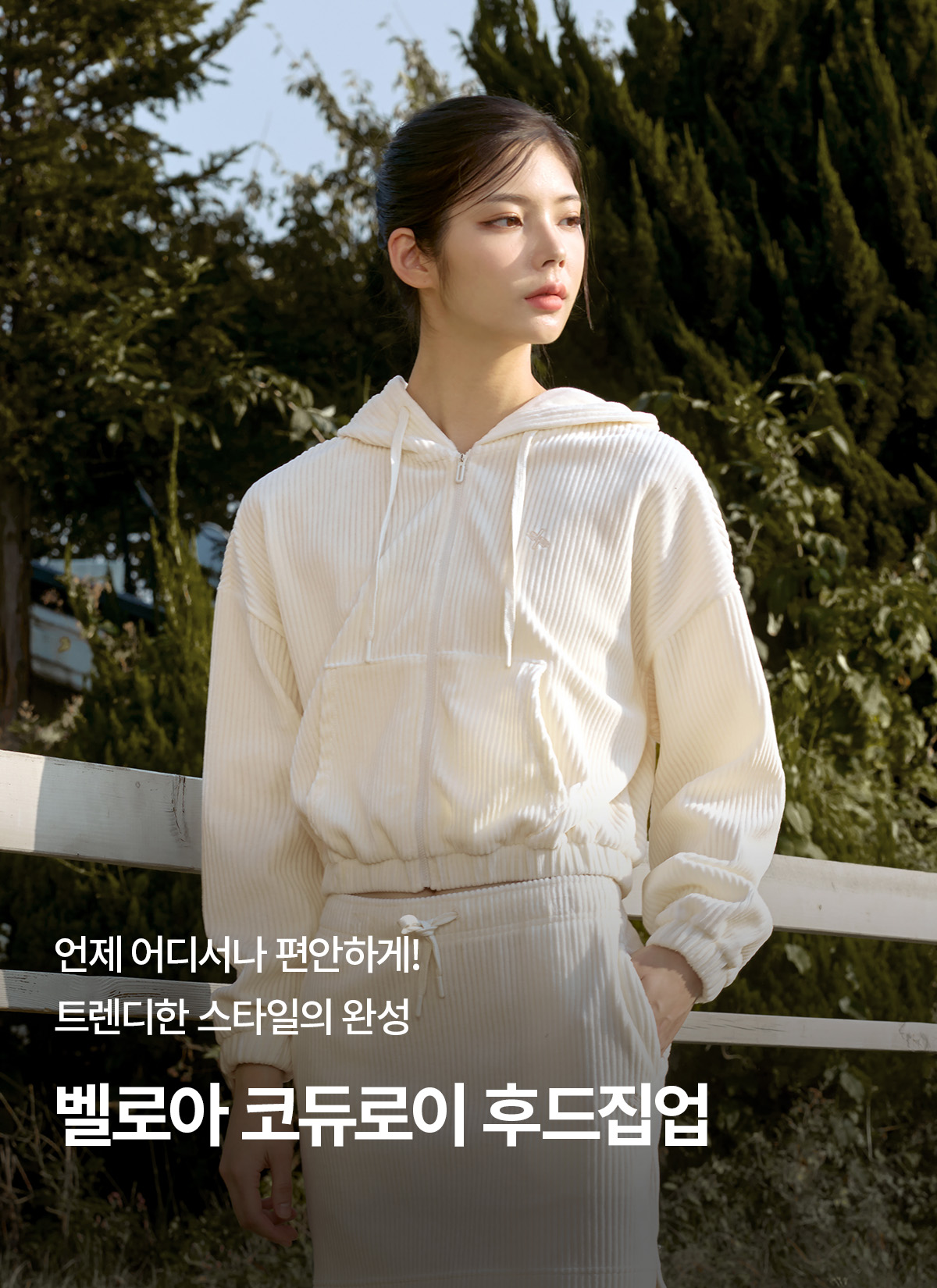 XTFGJ14J3 Corduroy Hood Zip up Ivory Top