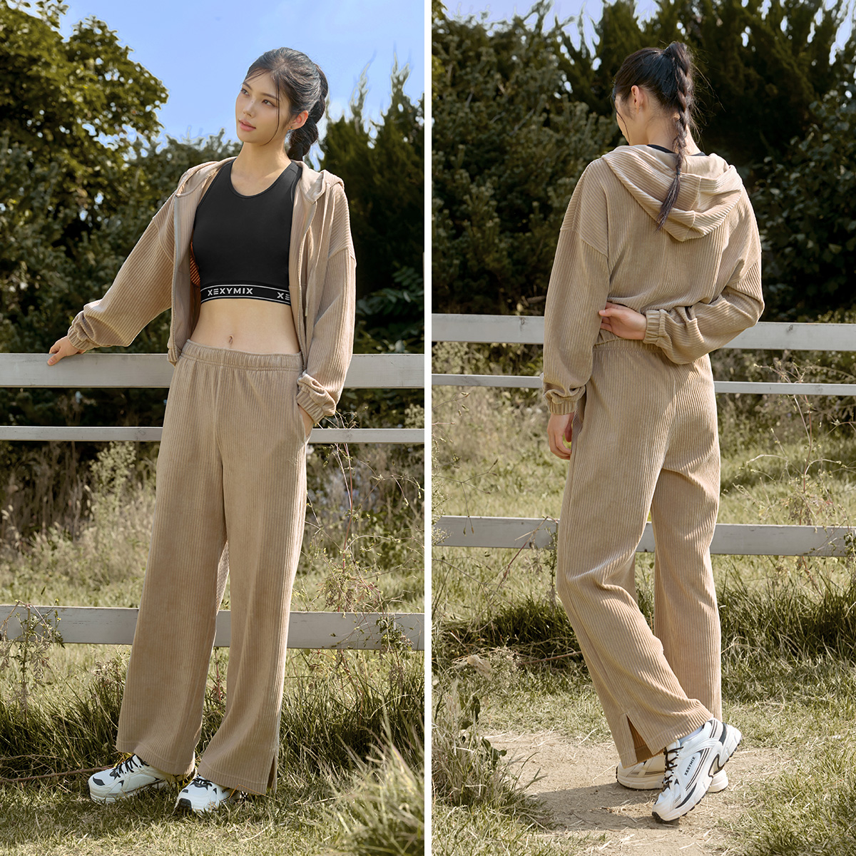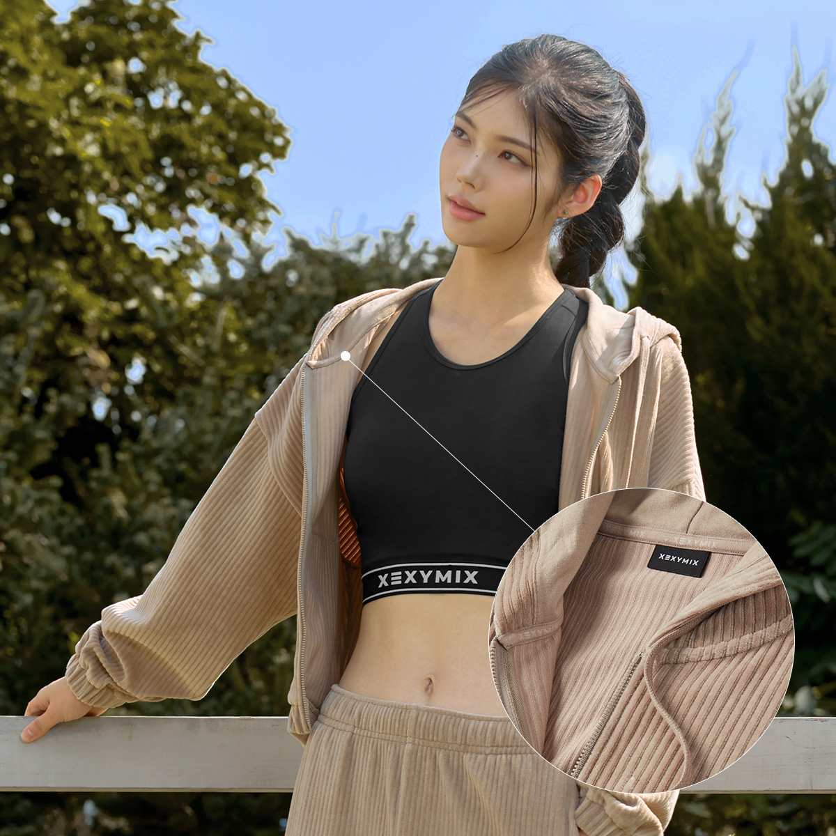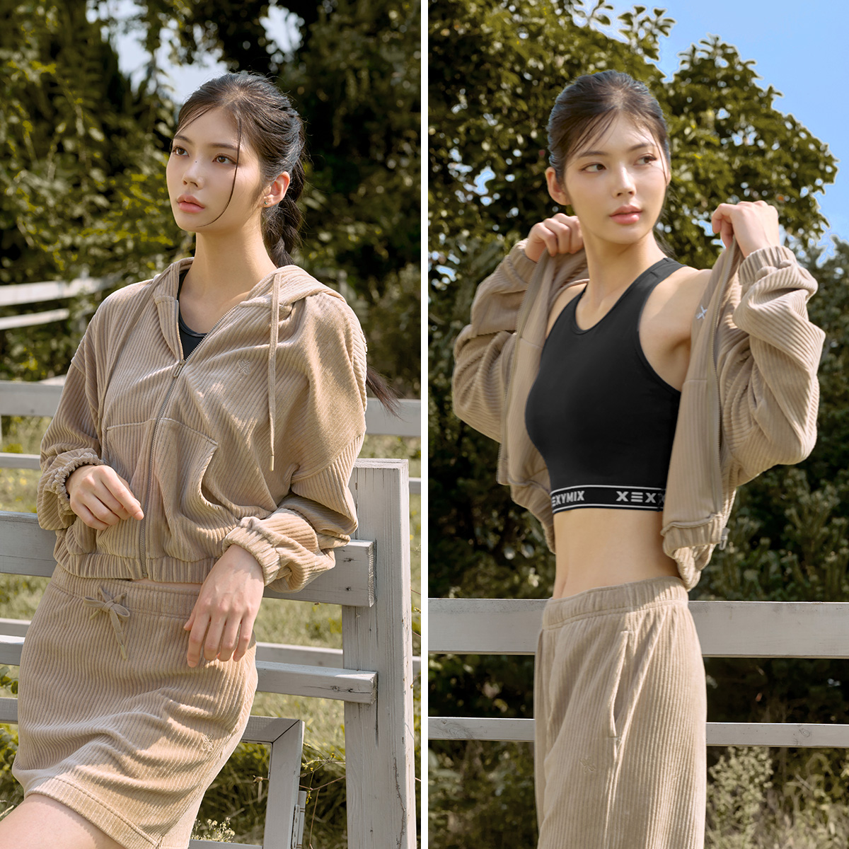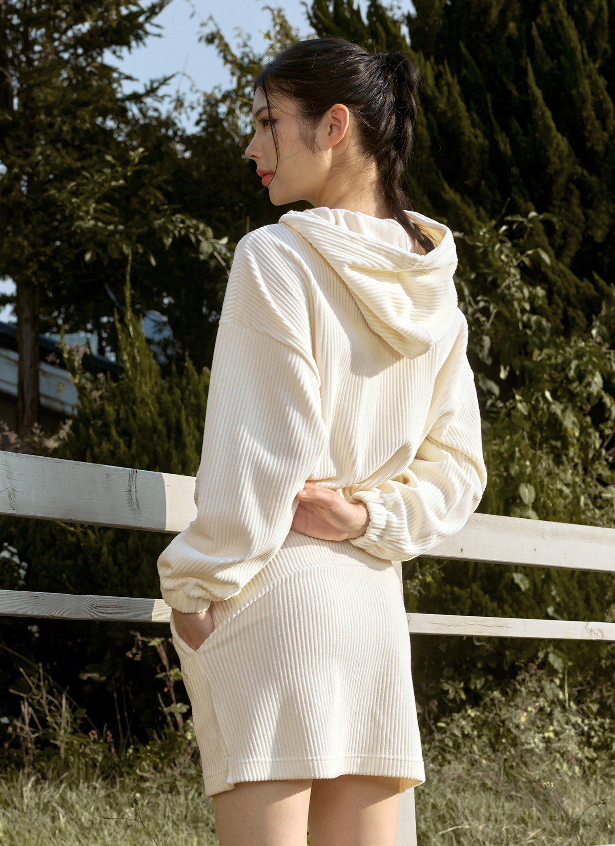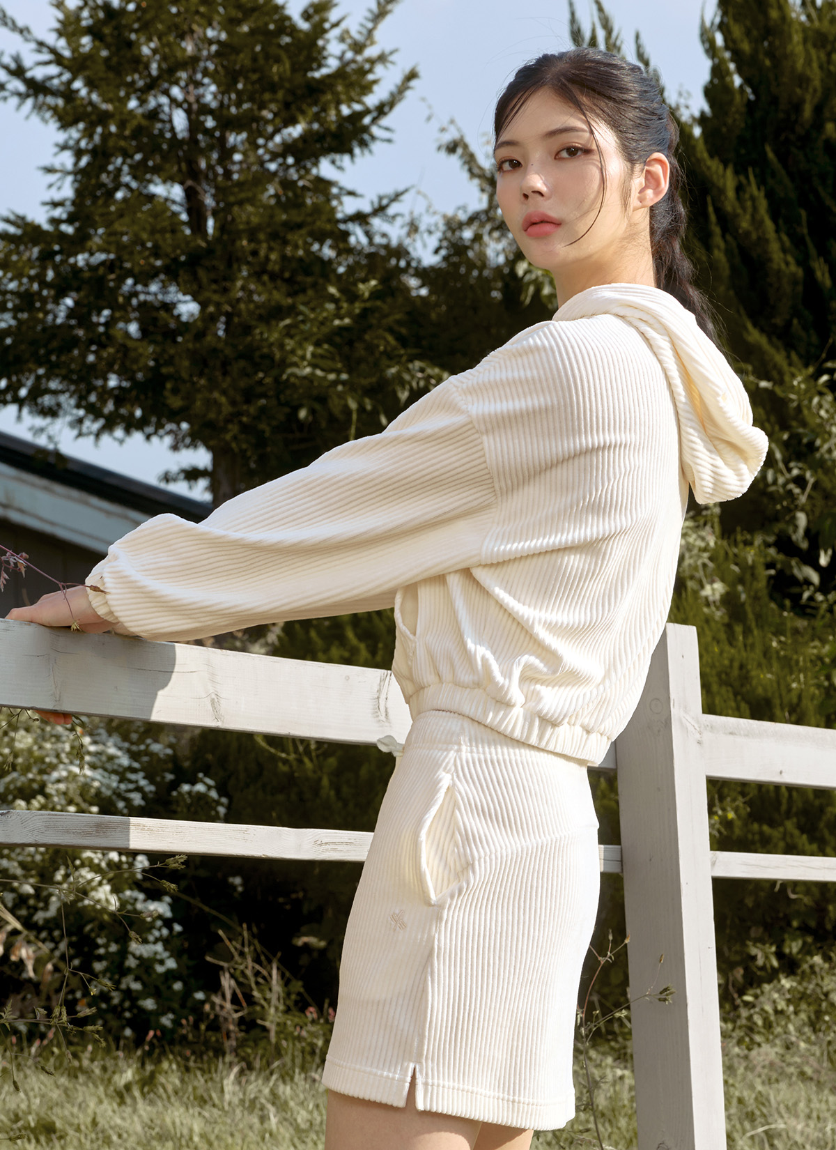 XTFGJ14J3 Corduroy Hood Zip up Ivory Top