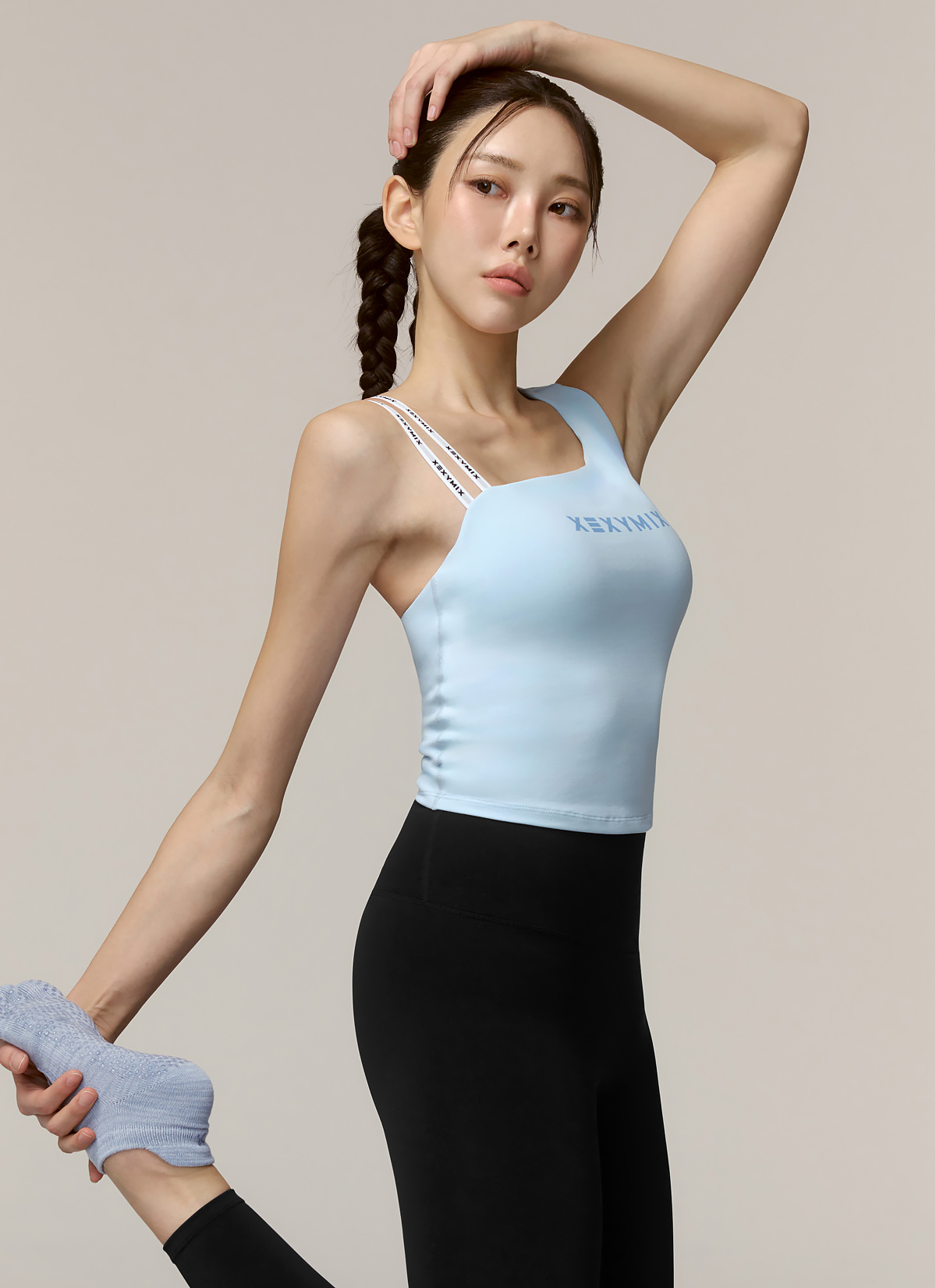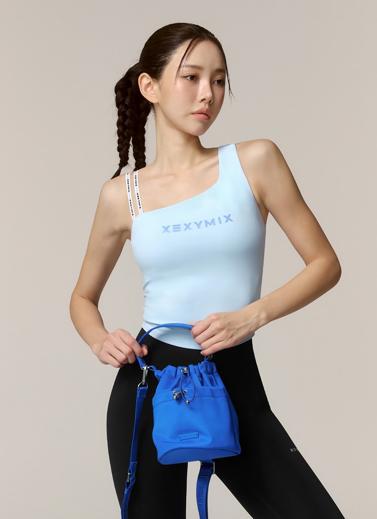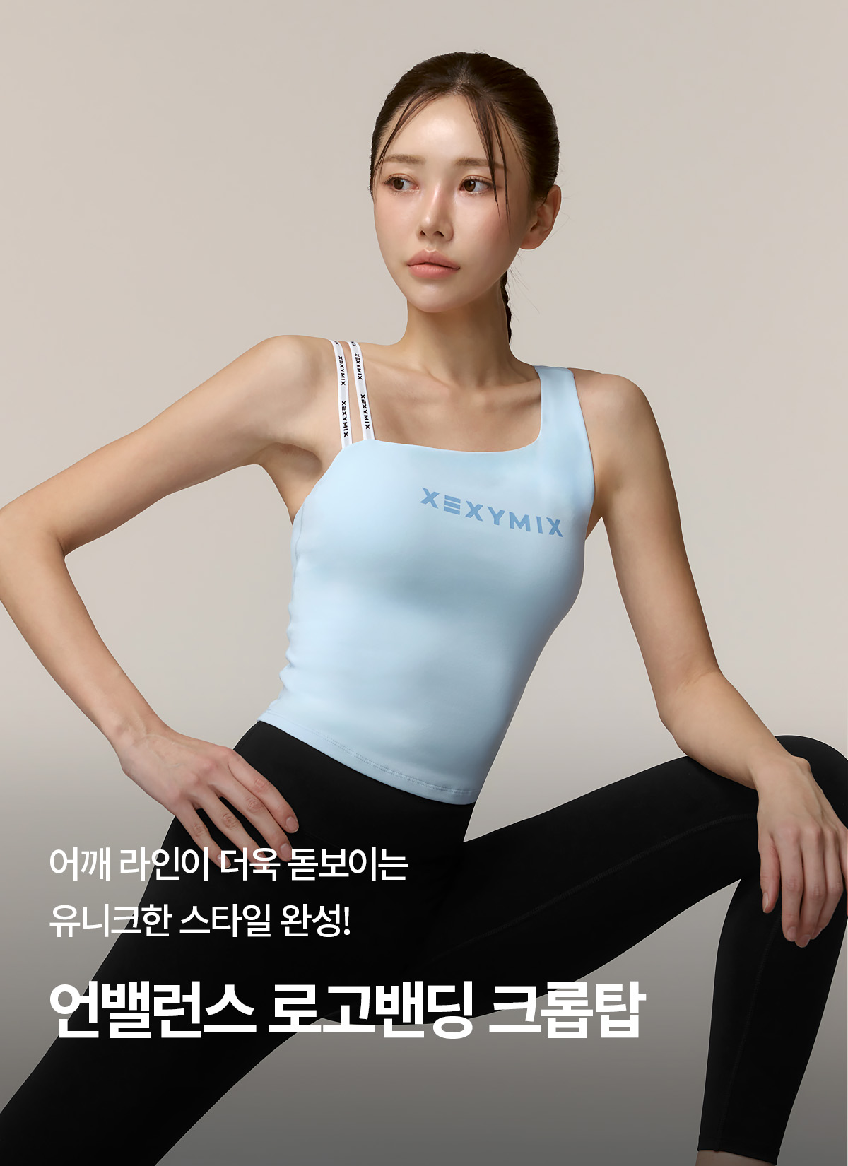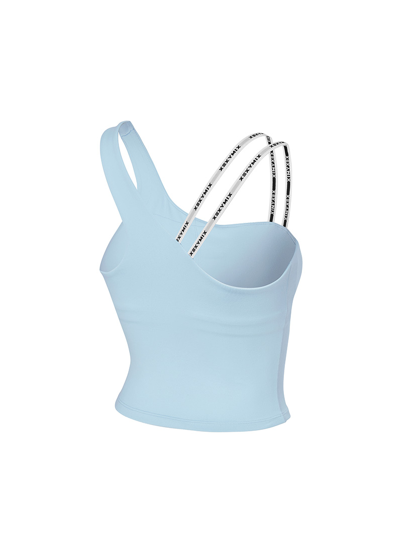 XFK1BL1502 Unbalanced Logo Banding Crop Pure Sky Top