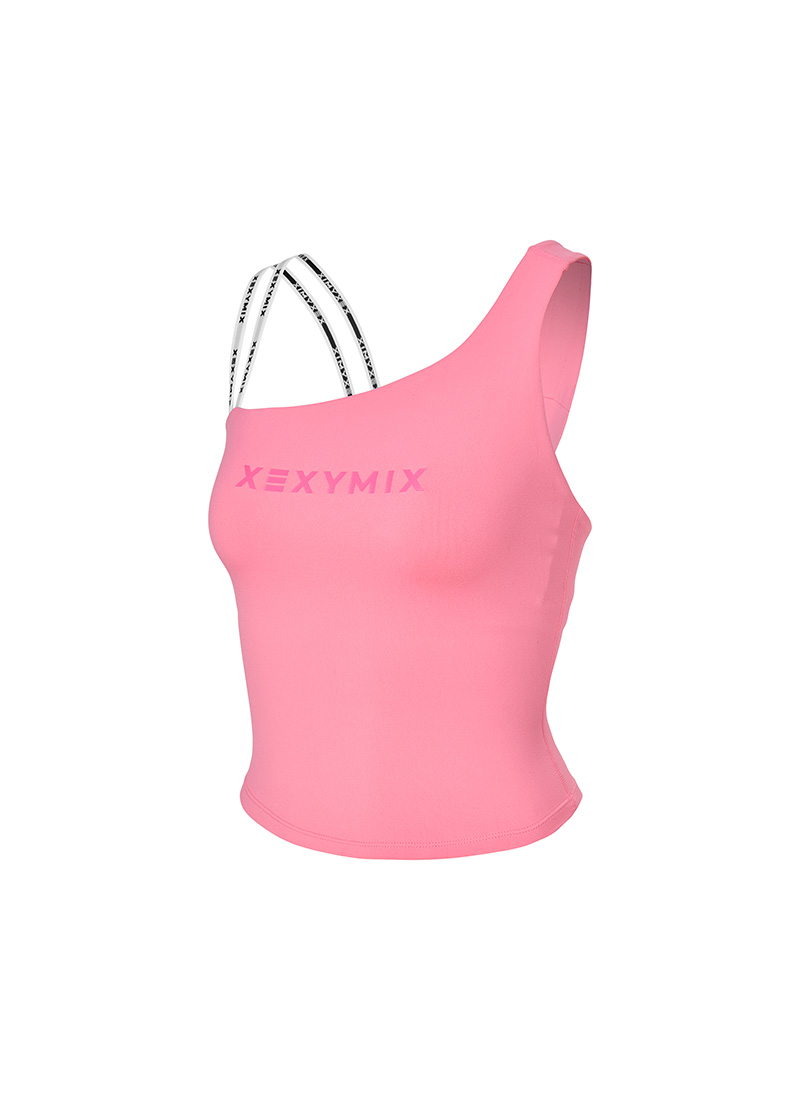 XFK1BL1502 Unbalanced Logo Banding Crop lavender pink Top