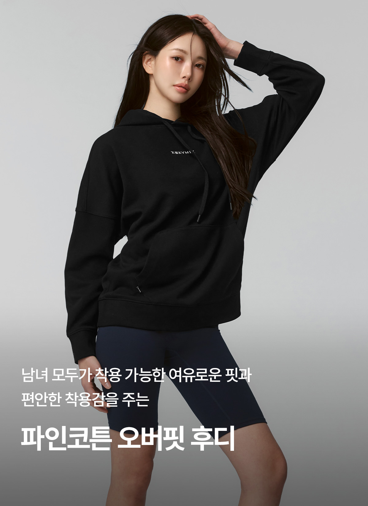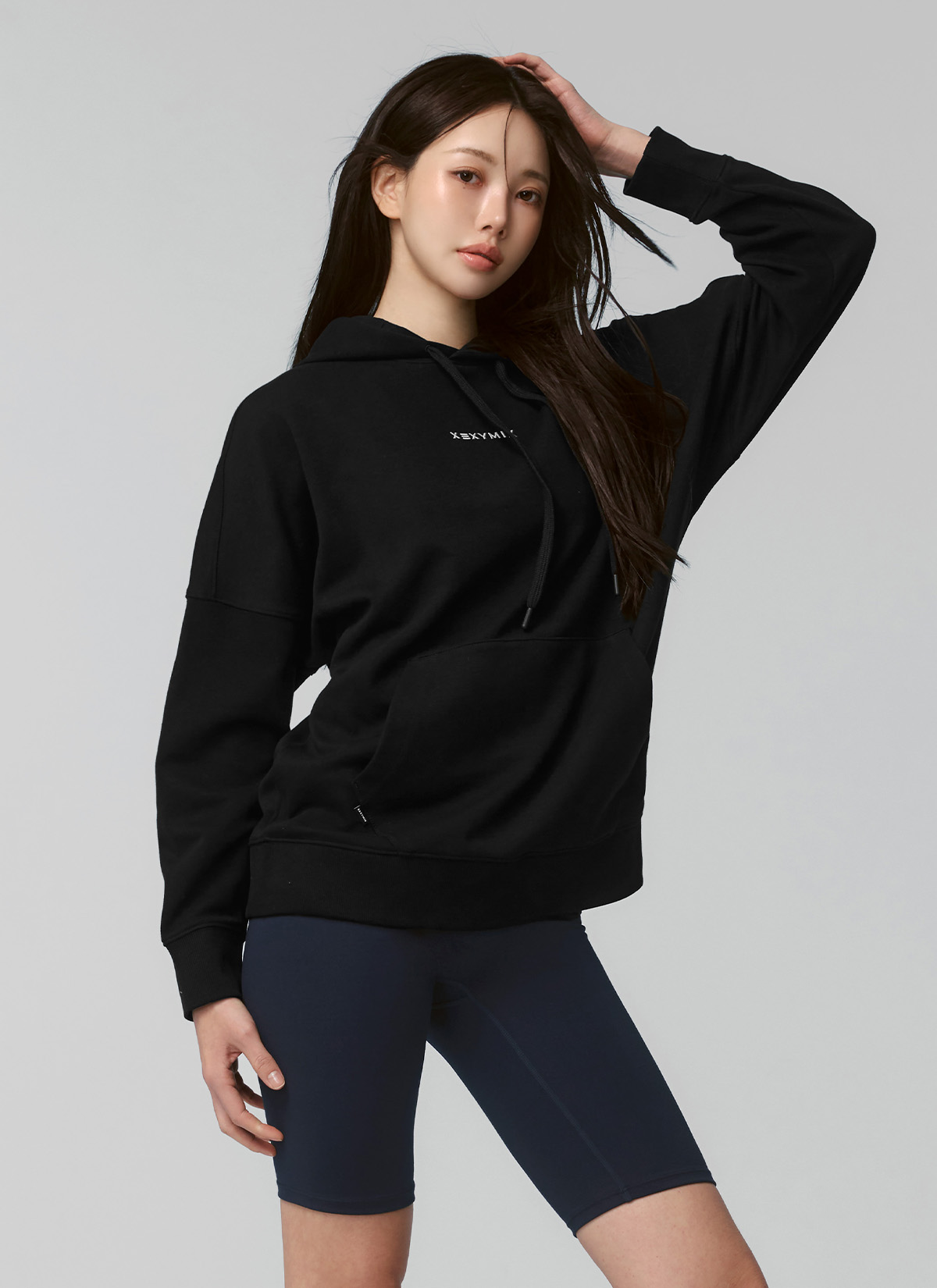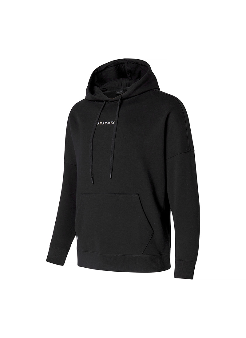 XUK1TL1101 Fine Cotton Oversized Hoodie Black Top